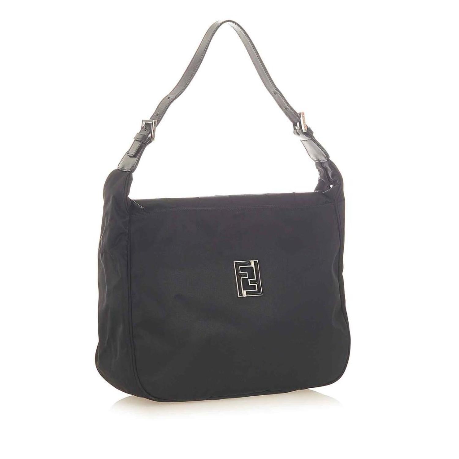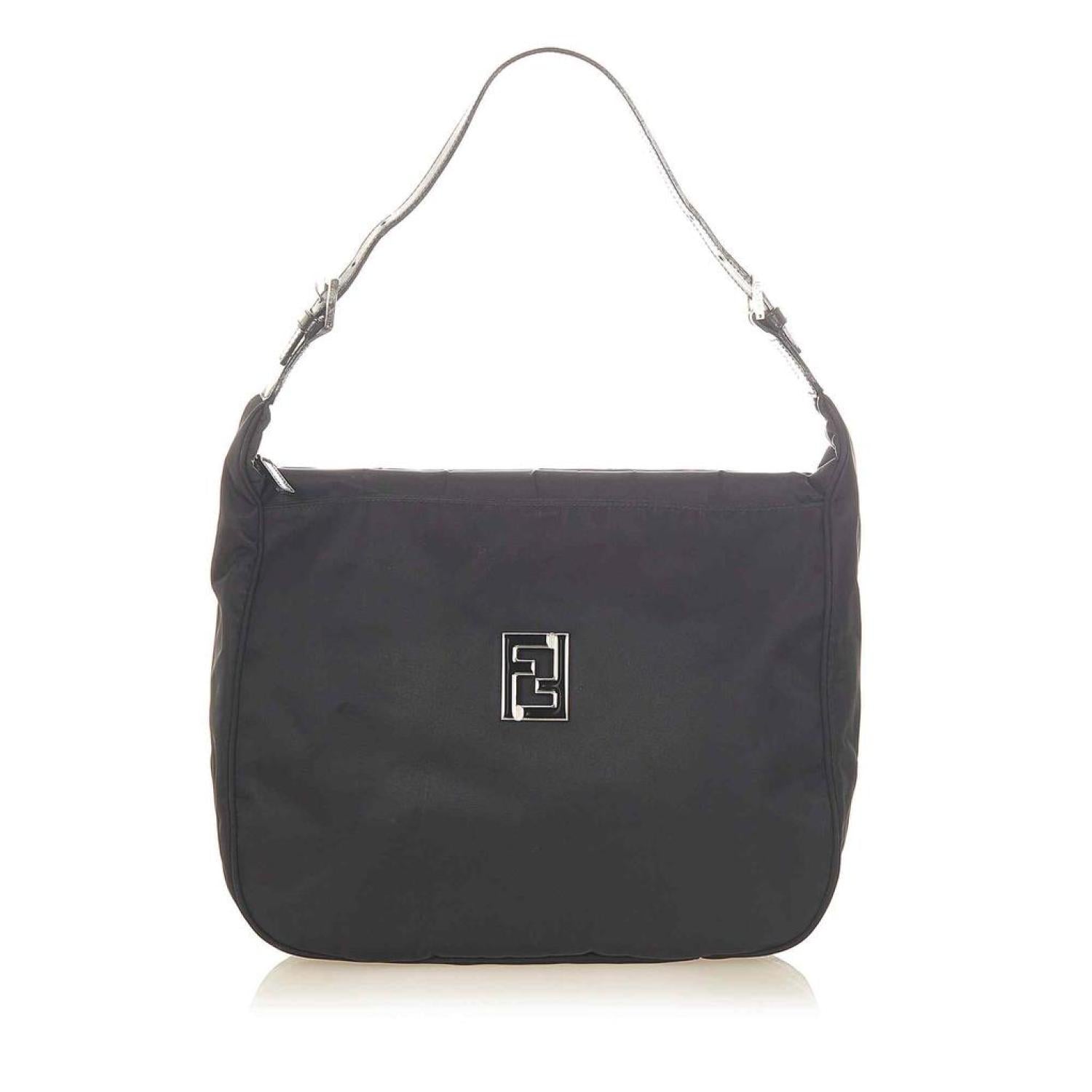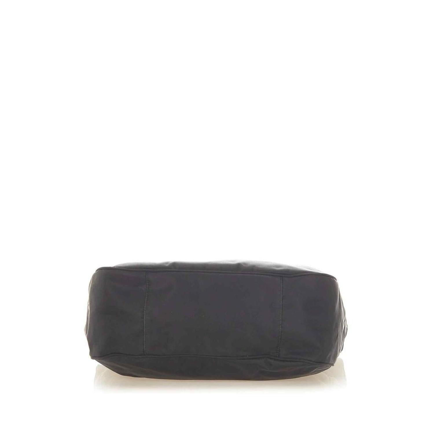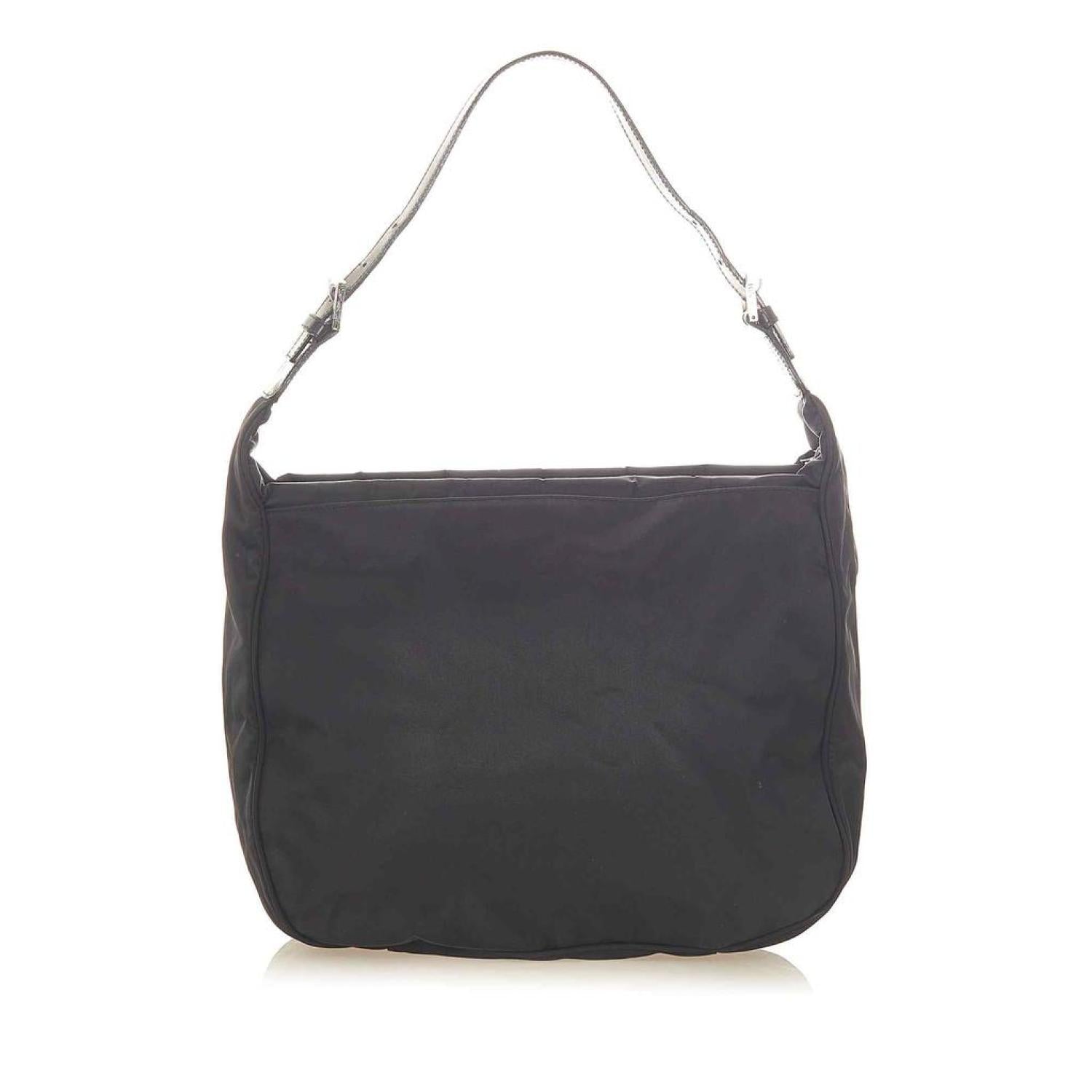 This shoulder bag features a nylon body exterior, front and back slip pockets, a flat leather strap, a top zip closure, and an interior zip pocket.Dimensions - Length 30 cm; Width 38 cm; Depth 13 cm; Shoulder Drop 25 cm.Color - Black; Material - Fabric x Nylon x Leather x Calf;Country of Origin - Italy; Serial - 06 11 153281981Inclusions - Dust Bag.Condition notes (see photos)Grade - B+