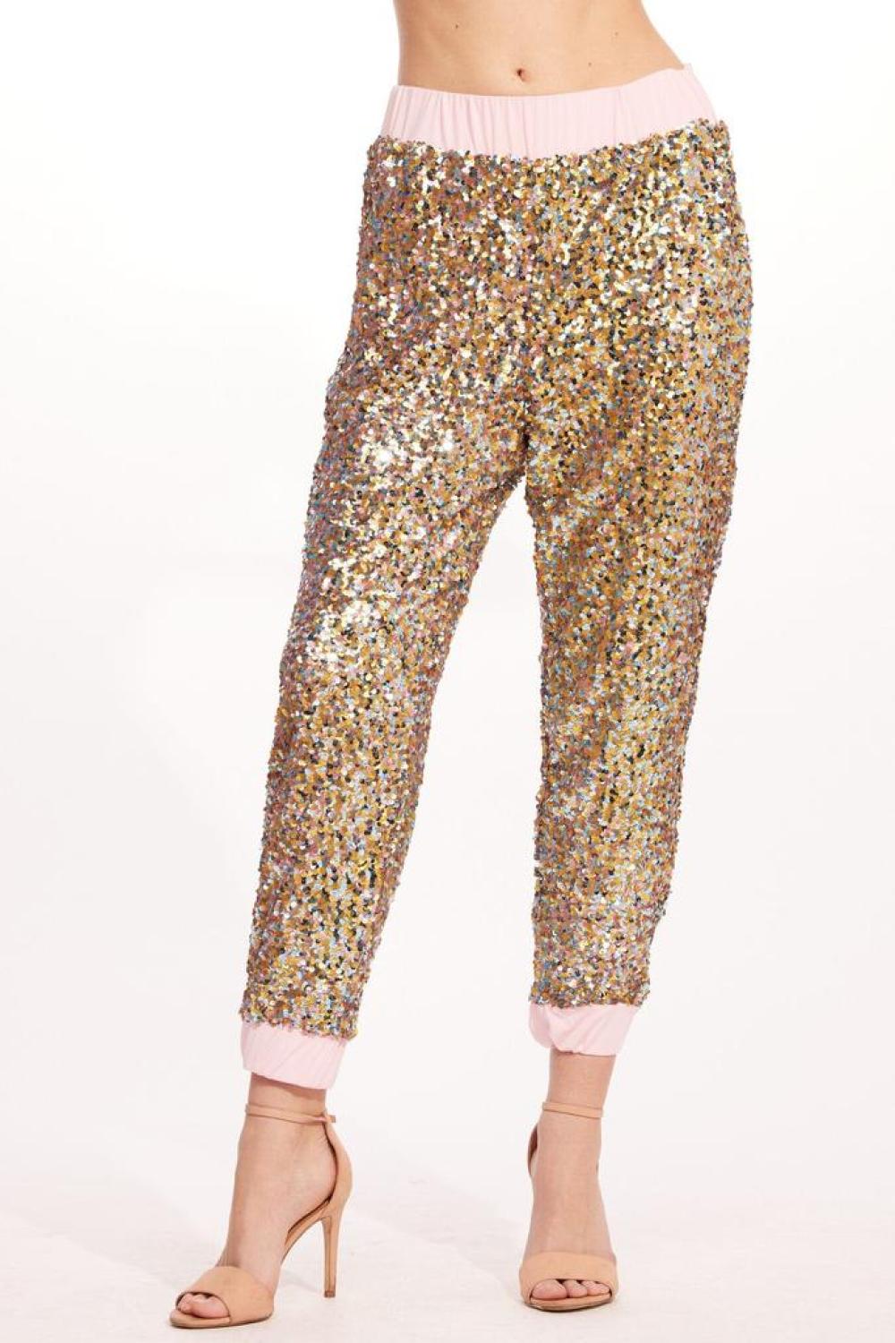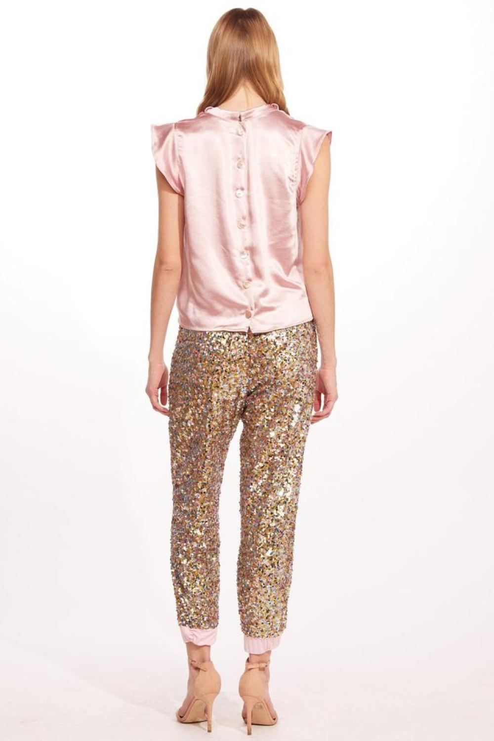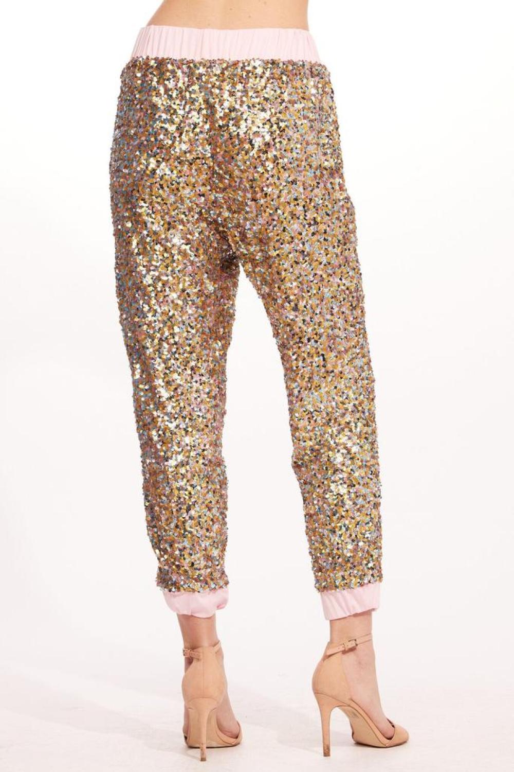 Our most loved Fernanda Jogger silhouette in sparkling sequins. Pull-on styling with an elastic waistband and cinched hem, dress these shimmery pants up for the party with heels or even wear with a pair of fashion sneakers for an elevated casual look around town. Pull-on styling Jogger Fully lined Elastic waistband and cuff Self - 100% Polyester Lining - 100% Polyester Dry clean only Made in Los Angeles, USA Complete the look with Cara Top.