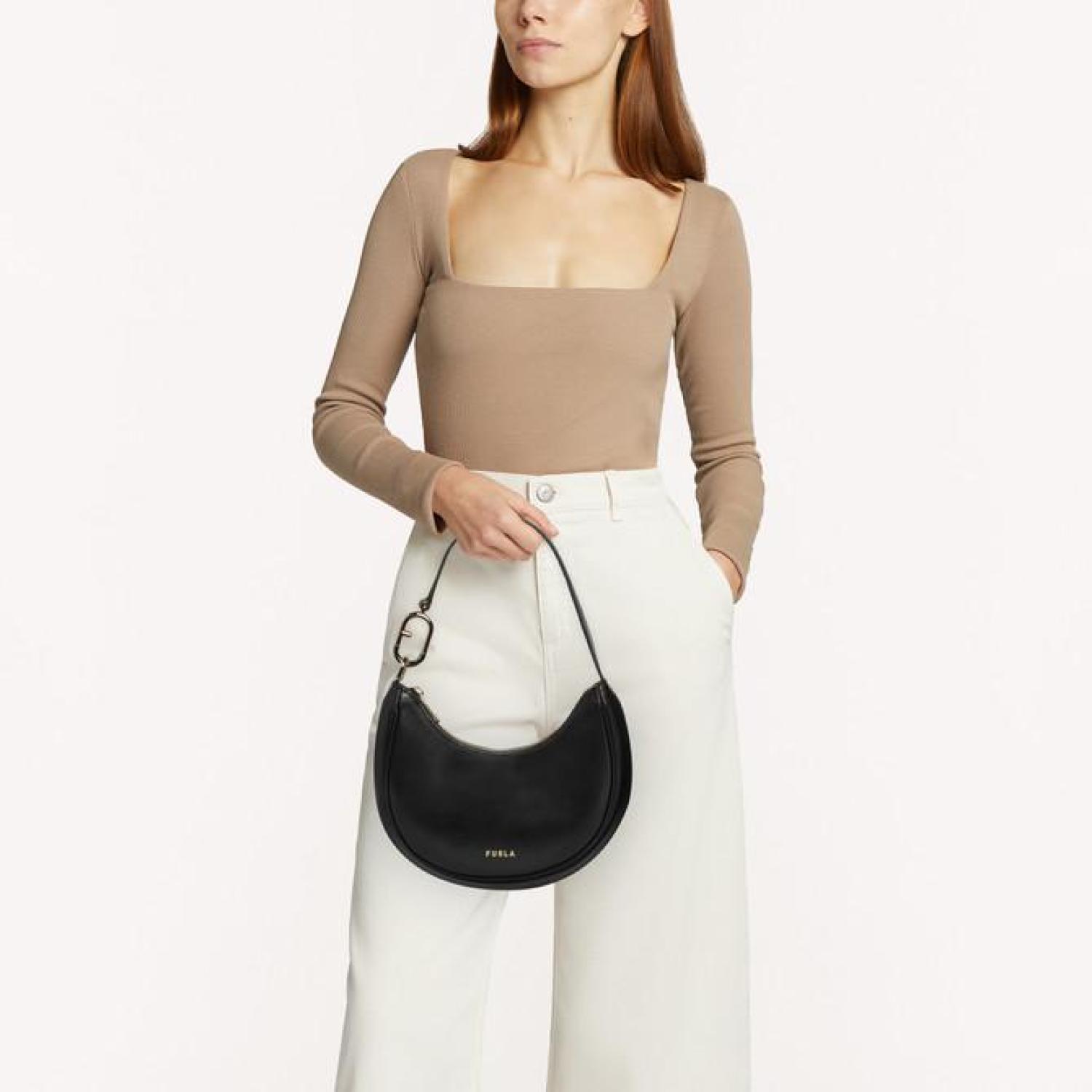 • For a slender and compact shoulder bag, look no further. Furla Primavera is crafted from smooth leather and boasts a curved half-moon shape with a soft structure, and a well-organised interior.