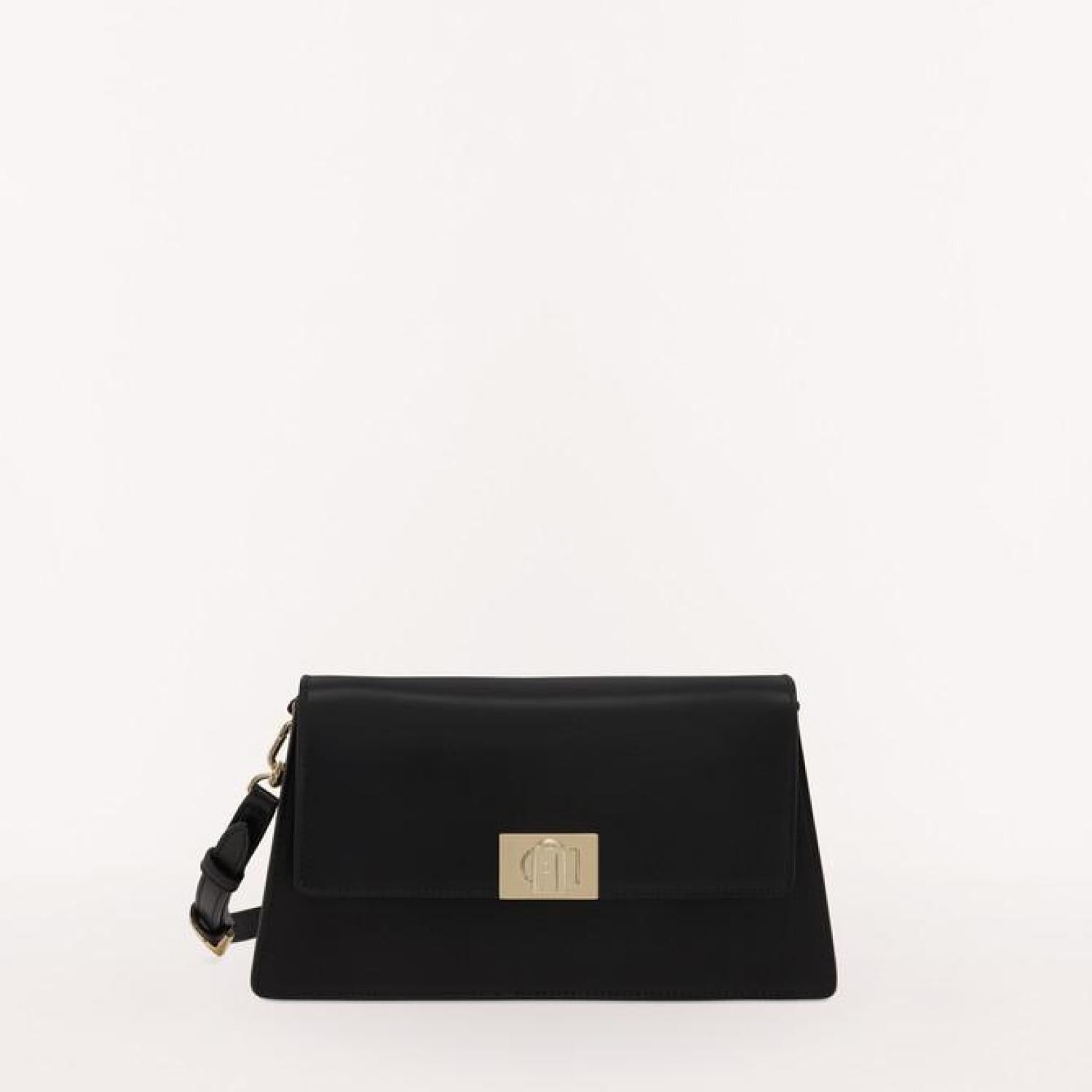 • This Furla Zoe small shoulder bag is a sleek and elegant gem, ideal for holding everything you might need, from day to night. The clean geometric lines of the trapezoid structure are styled in leather that is beautifully soft to the touch, and the additional strap affords greater flexibility, so it can be worn on the shoulder or crossbody.