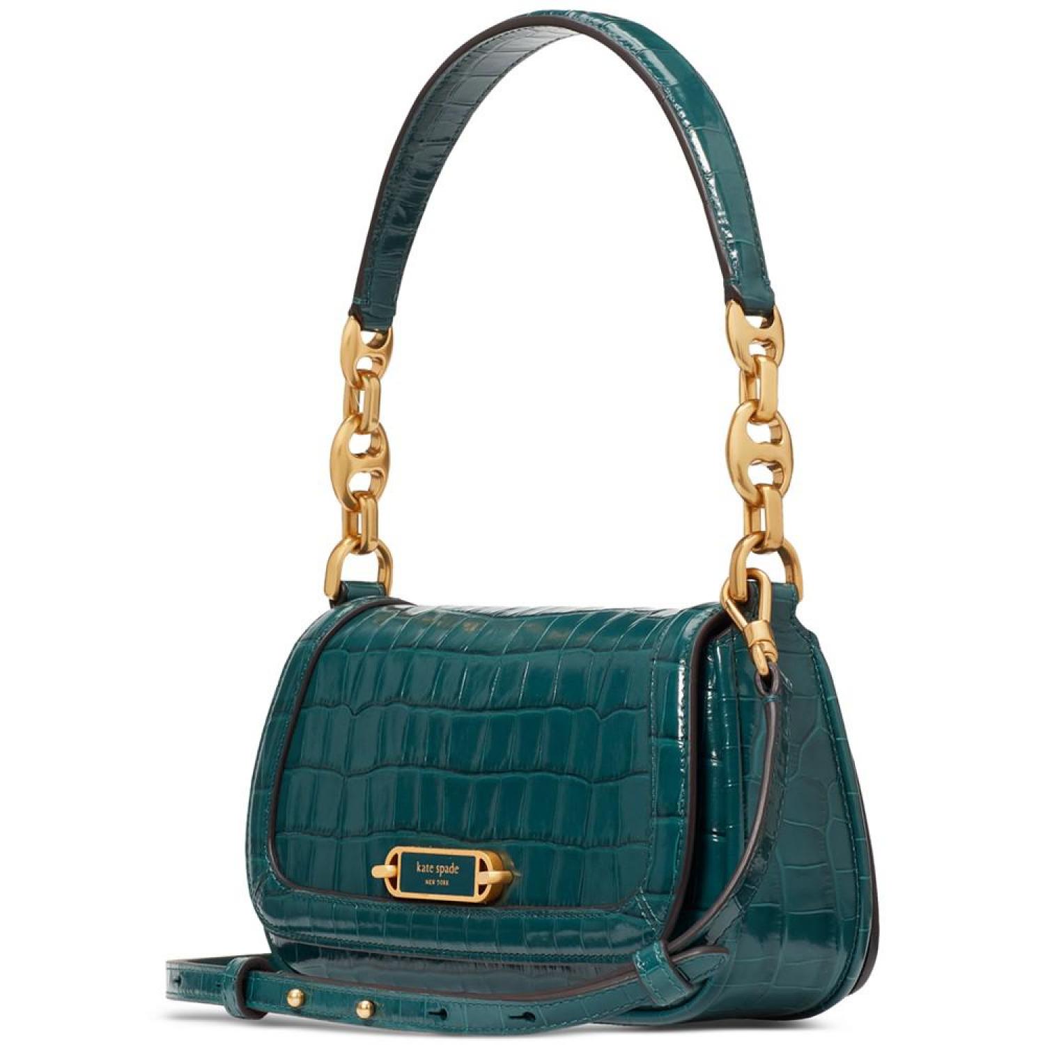 • Effortlessly stylish, this kate spade new york shoulder bag is crafted from croc-embossed leather and is finished with signature spade link accents for pops of shine.