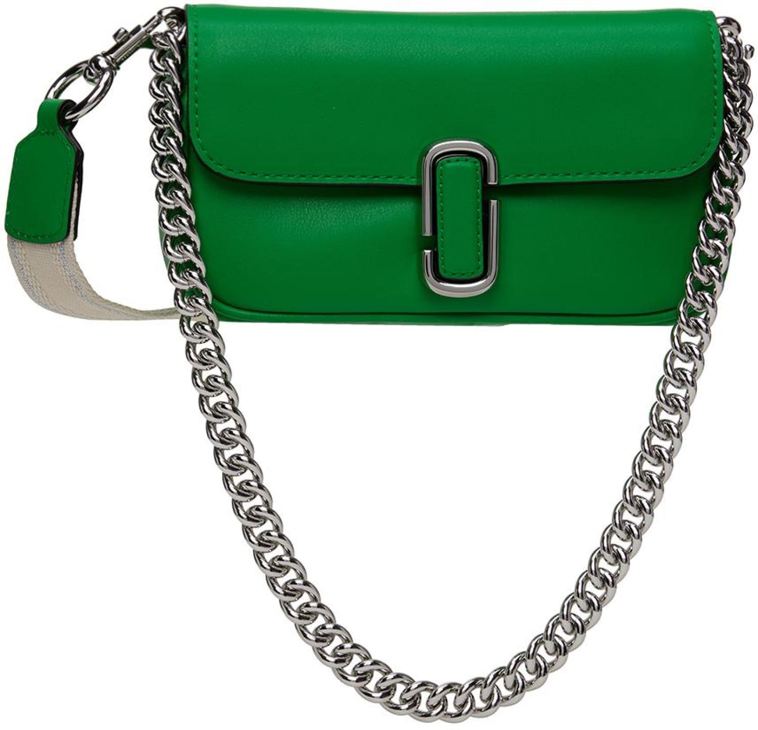 Buffed leather shoulder bag in green. Logo hardware at face.