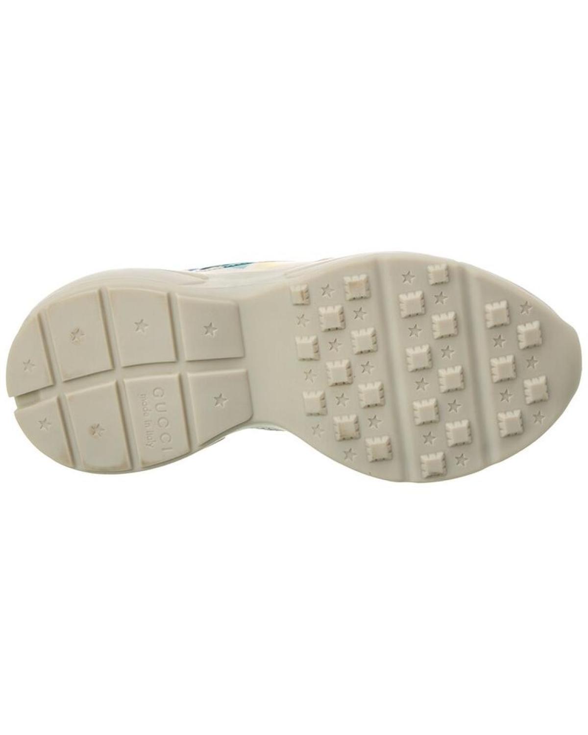 • Introducing the Gucci Rhyton Leather Sneaker, a must-have addition to any stylish girl's shoe collection. Made in Italy, these sneakers feature a unique rainbow logo print on white leather, showcasing the eclectic and coveted style of the Gucci brand. The lace-up closure and lightly padded leather insole provide comfort and support, while the rubber sole offers traction for all-day wear. Please note that size selections are in European sizes, so be sure to reference the size chart for US conversions. Rest assured, all of our products are 100% genuine, ensuring the authenticity of every item sold on our site. Elevate your little one's casual look with these fashionable Gucci sneakers today!