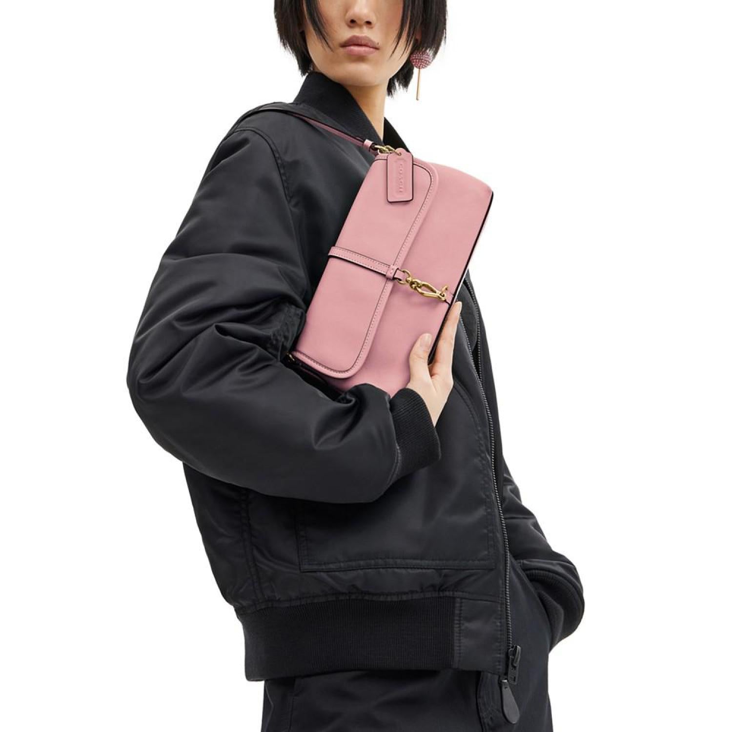 • Crafted with leather in a sleek silhouette, this shoulder bag by COACH fits perfectly under your arm and has a dog leash clip closure for a polished, chic finish.