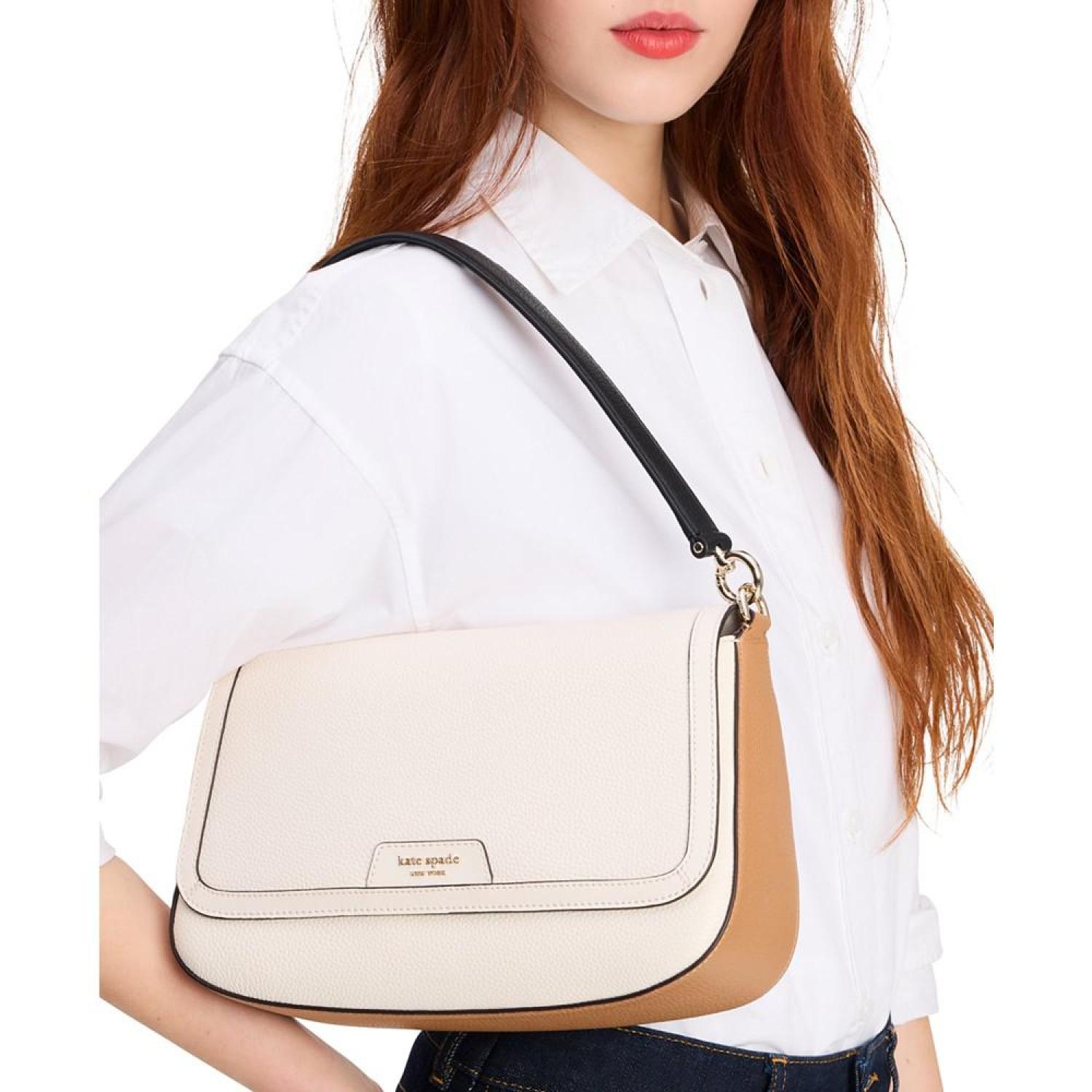 Timeless in shape and style, this shoulder bag by Kate Spade New York compliments all colorways. Functional with an exterior slip pocket and multiple interior pockets, it also comes with a removable crossbody strap for added versatility.