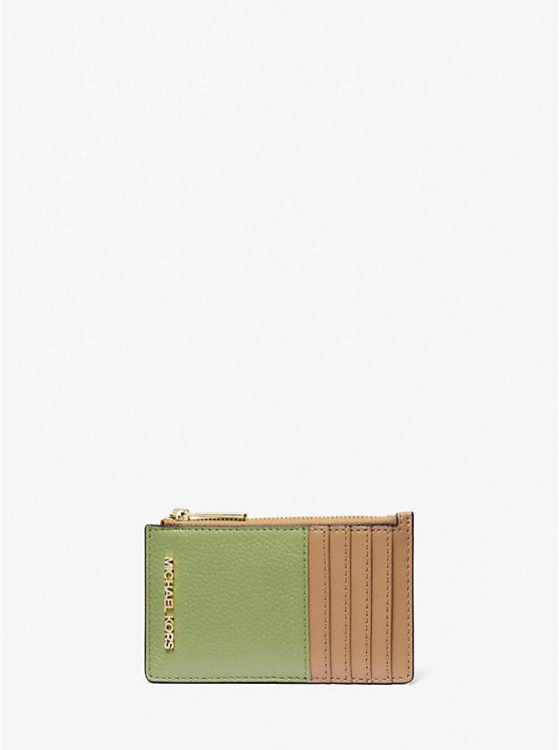 Slender enough to slip into your clutch, this leather card case makes traveling light a stylish breeze. It features a handful of convenient slots along the front and a top-zip fastening that opens to a compartment for coins or receipts. The two-tone finish makes it easy to find in your tote bag. • Card case • Leather • 100% leather • Gold-tone hardware • 3.25" W X 5.25" H X 0.5" D • Interior details: 6 card slots, zip pocket • Lining: 100% polyester • Imported • Card case • Leather • 100% leather • Gold-tone hardware • 3.25" W X 5.25" H X 0.5" D • Interior details: 6 card slots, zip pocket • Lining: 100% polyester • Imported