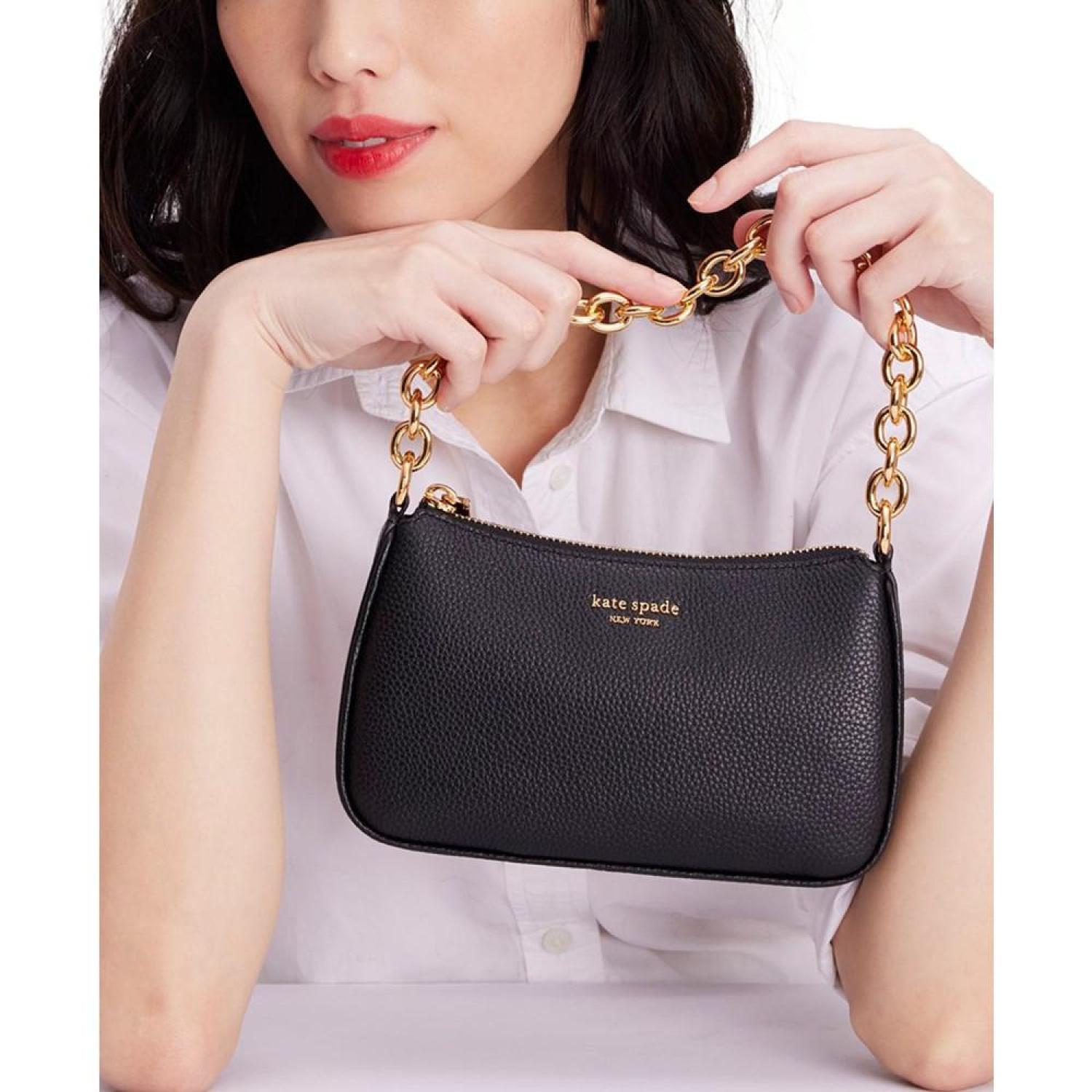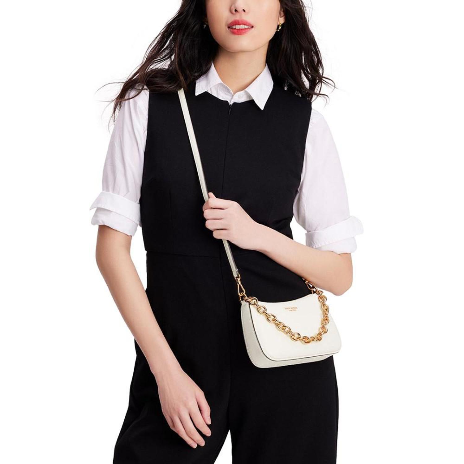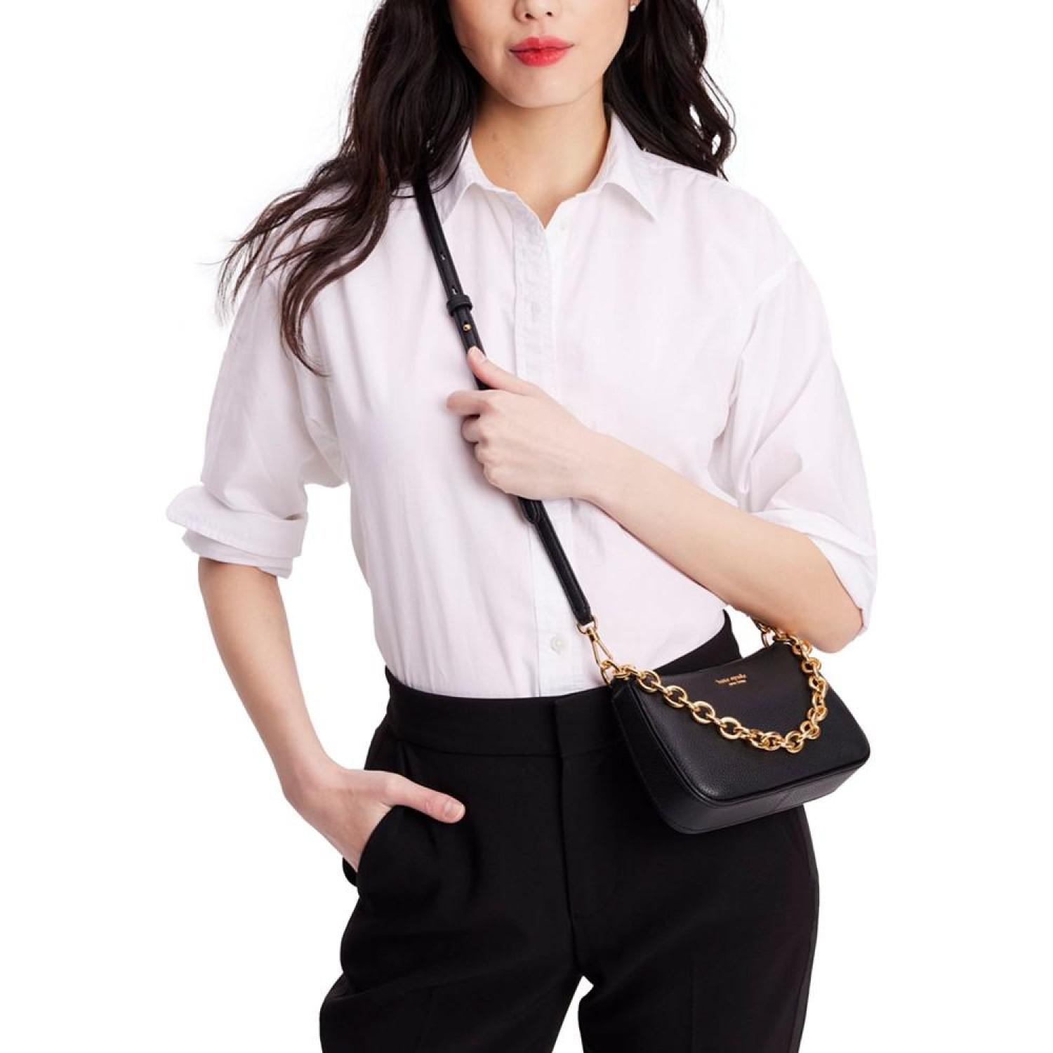 • Carry your daily essentials in chic style. Sleek and compact, kate spade new york's leather crossbody can be worn via the long strap or carried in hand with a gleaming chain-link strap.