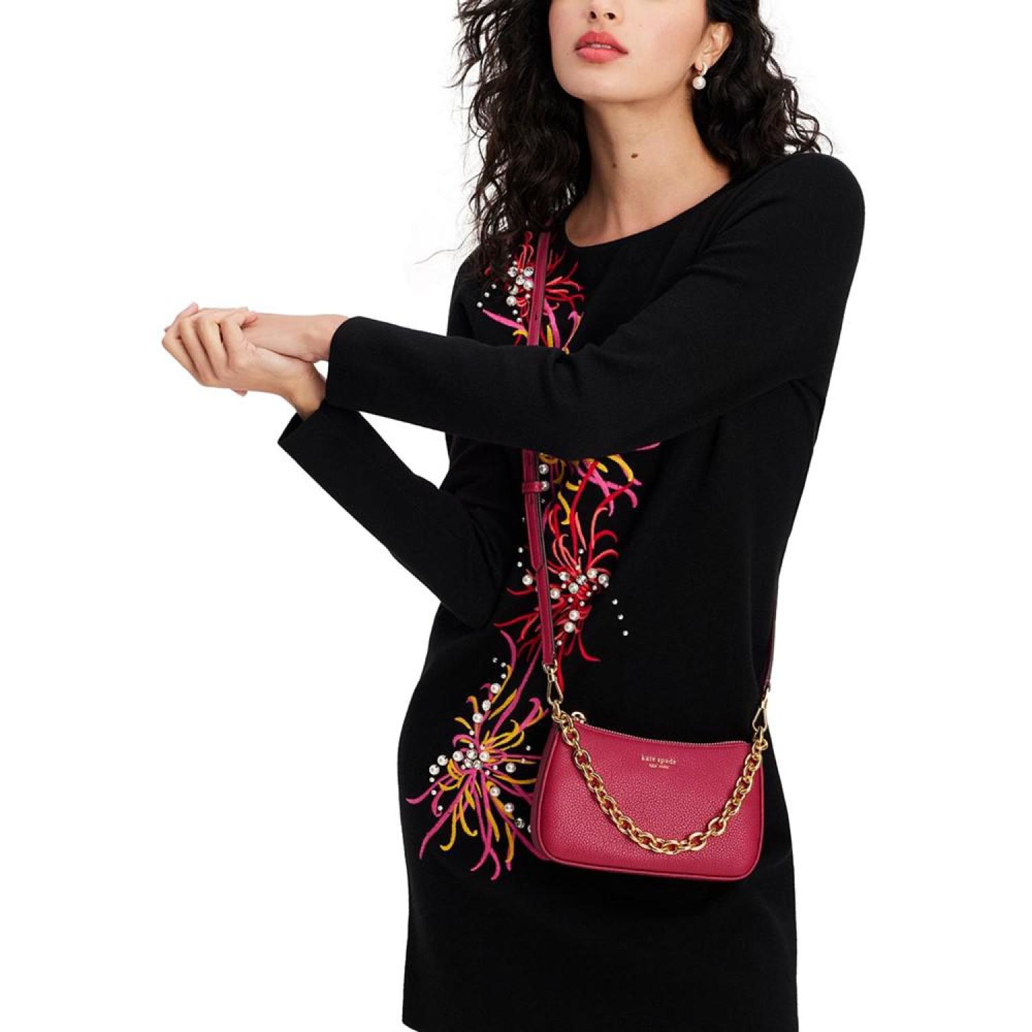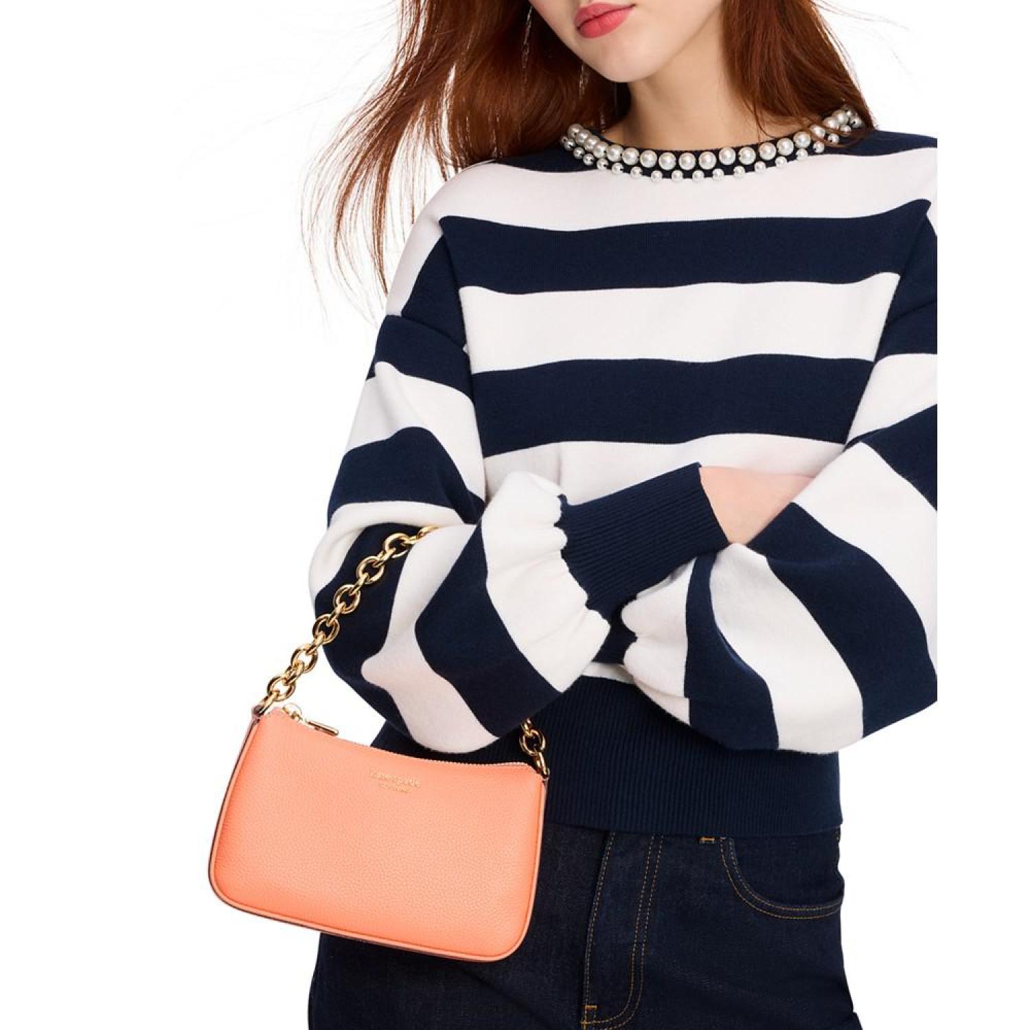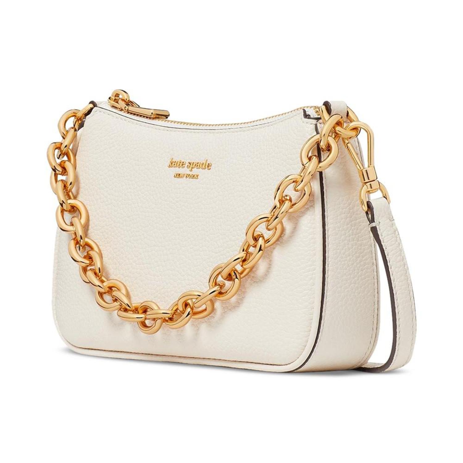 • Carry your daily essentials in chic style. Sleek and compact, kate spade new york's leather crossbody can be worn via the long strap or carried in hand with a gleaming chain-link strap.