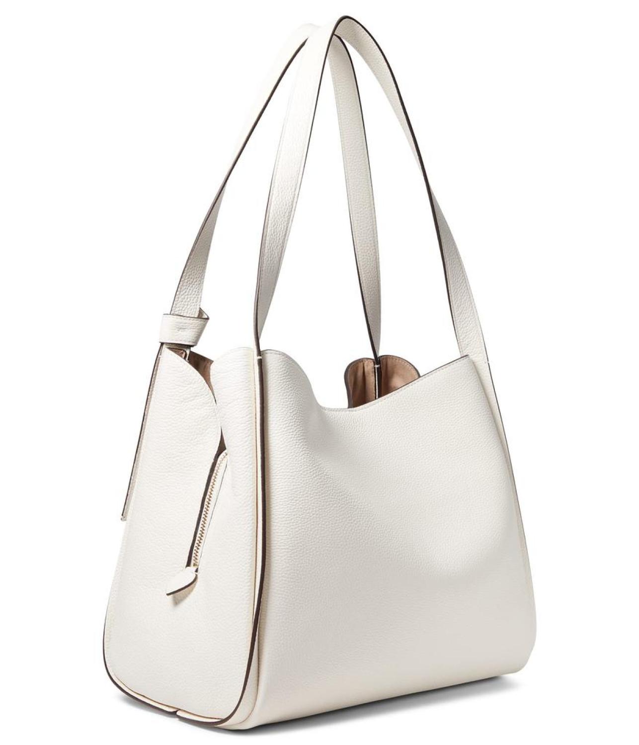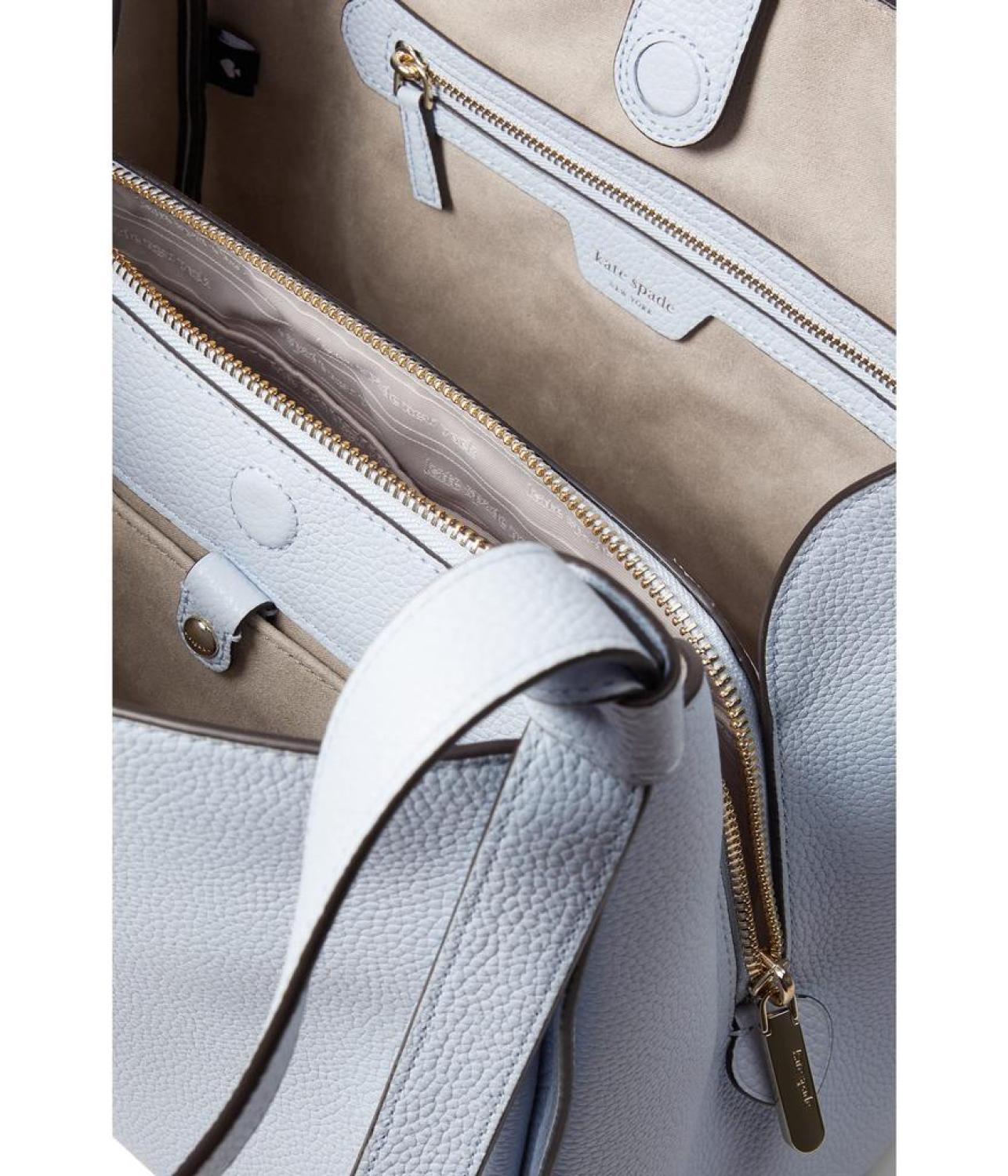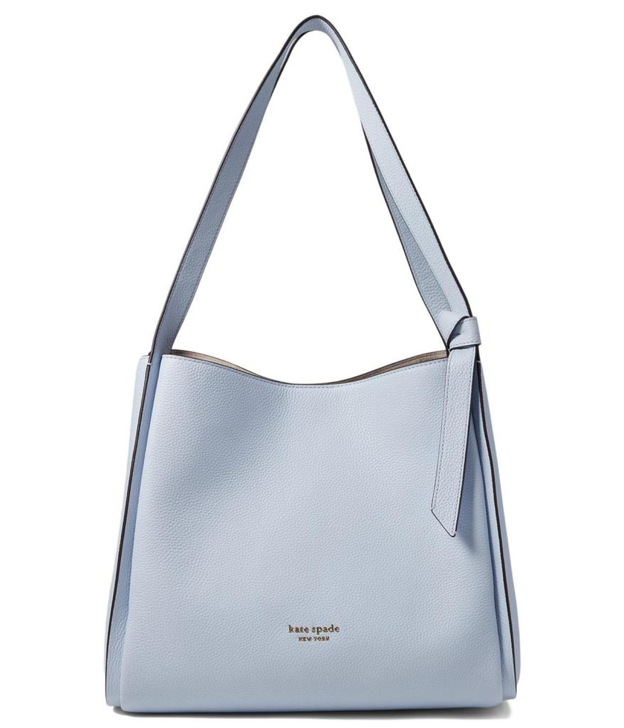 Click here for a video on how to properly measure your laptop! When the occasion calls for bringing it all, reach for the spacious Kate Spade New York® Knott Large Shoulder bag. Accommodates up to a 13" laptop or similarly sized device. Soft pebbled leather and faux micro suede lining. Dual shoulder straps and magnetic snap closure. Features interior zipper pocket, central zip compartment, and snap-tab slip pocket. Offers spacious divided compartments for organizing many essentials. Relaxed and slouchy structure. Cinch knotted side harkens back to brand's original satchel. Imported. Please note, the hardware color and interior lining may differ from the color shown in the photo. Measurements: Bottom Width: 12 in Depth: 7 in Height: 10 3/4 in Strap Length: 23 1/2 in Strap Drop: 11 in Weight: 1 lb 9 oz