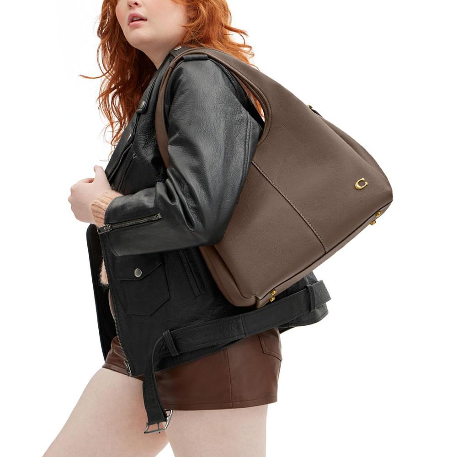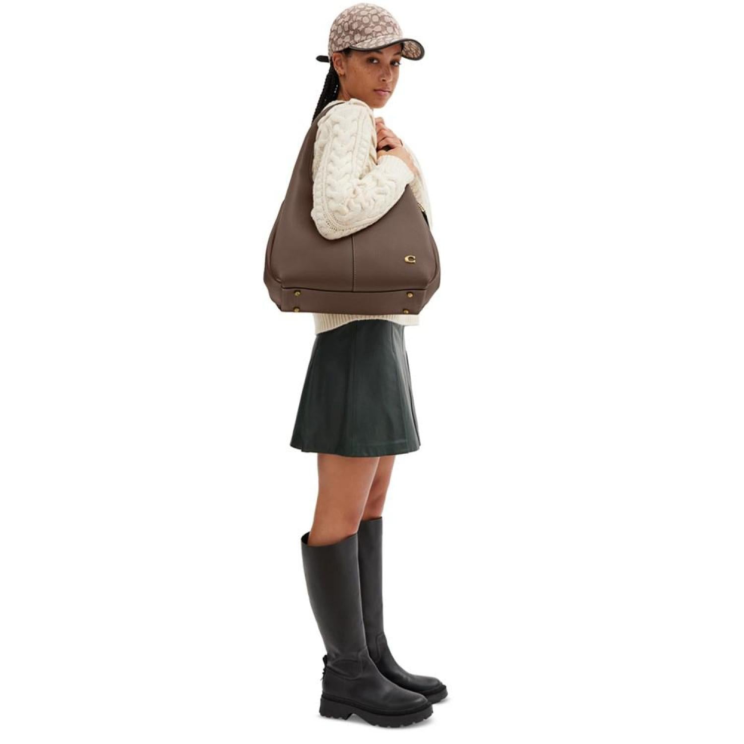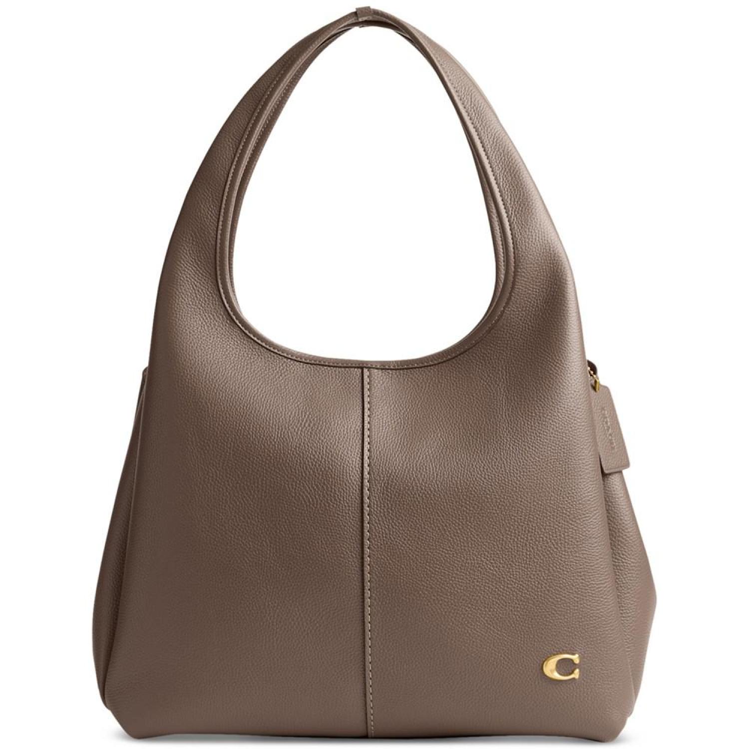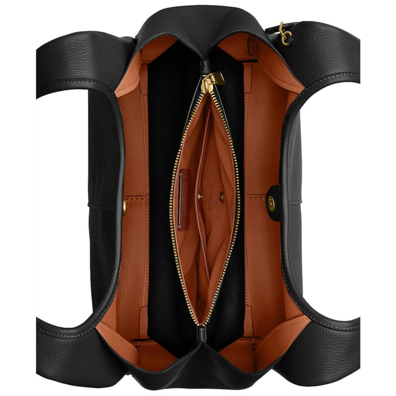 Refined with ample space, this shoulder bag by COACH elevates everyday style. Medium sized bag; 13-1/4"W x 20-1/4"H x 7-3/4"D (width is measured across the bottom of handbag); 3.08 lbs. approx. weight Silhouette is based off 5'9" model 10"L handles Snap closure Brass-tone hardware Interior center zip compartment & slip pocket Leather Spot clean Imported