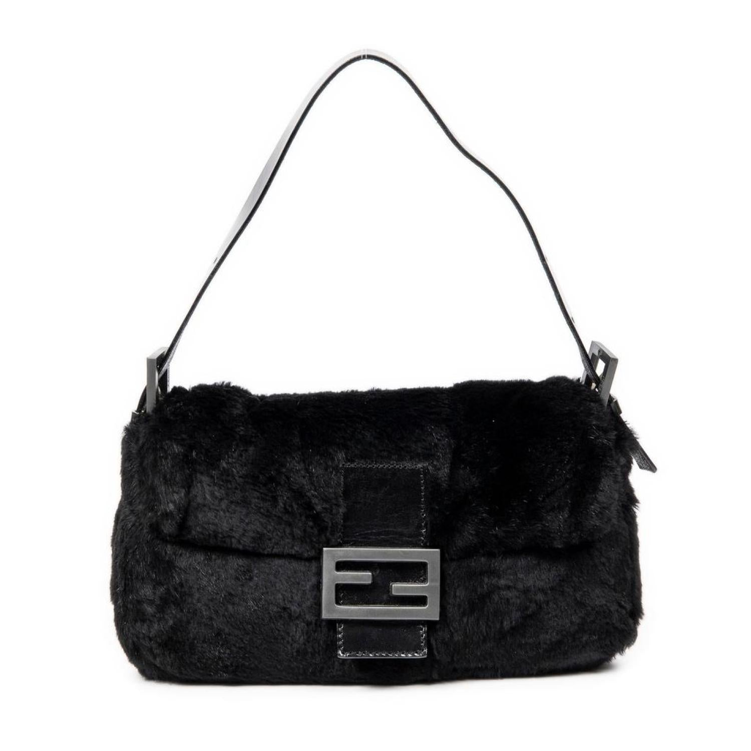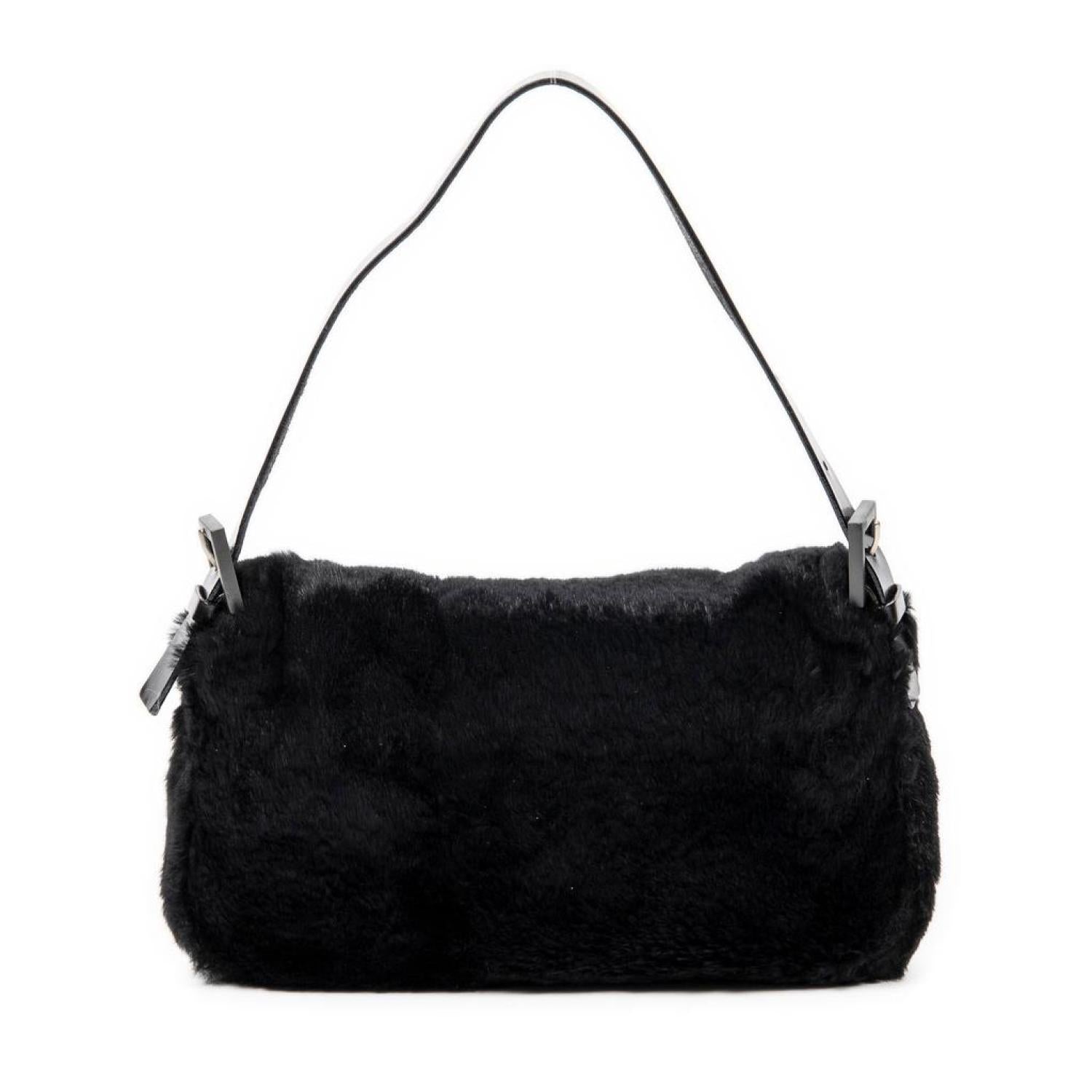 Fendi Shoulder Bag in Black Rabbit Fur and Silver hardware. Dimensions - 25*12*5cm. Serial number - 2356.26324.99. Inclusions - Dustbag.