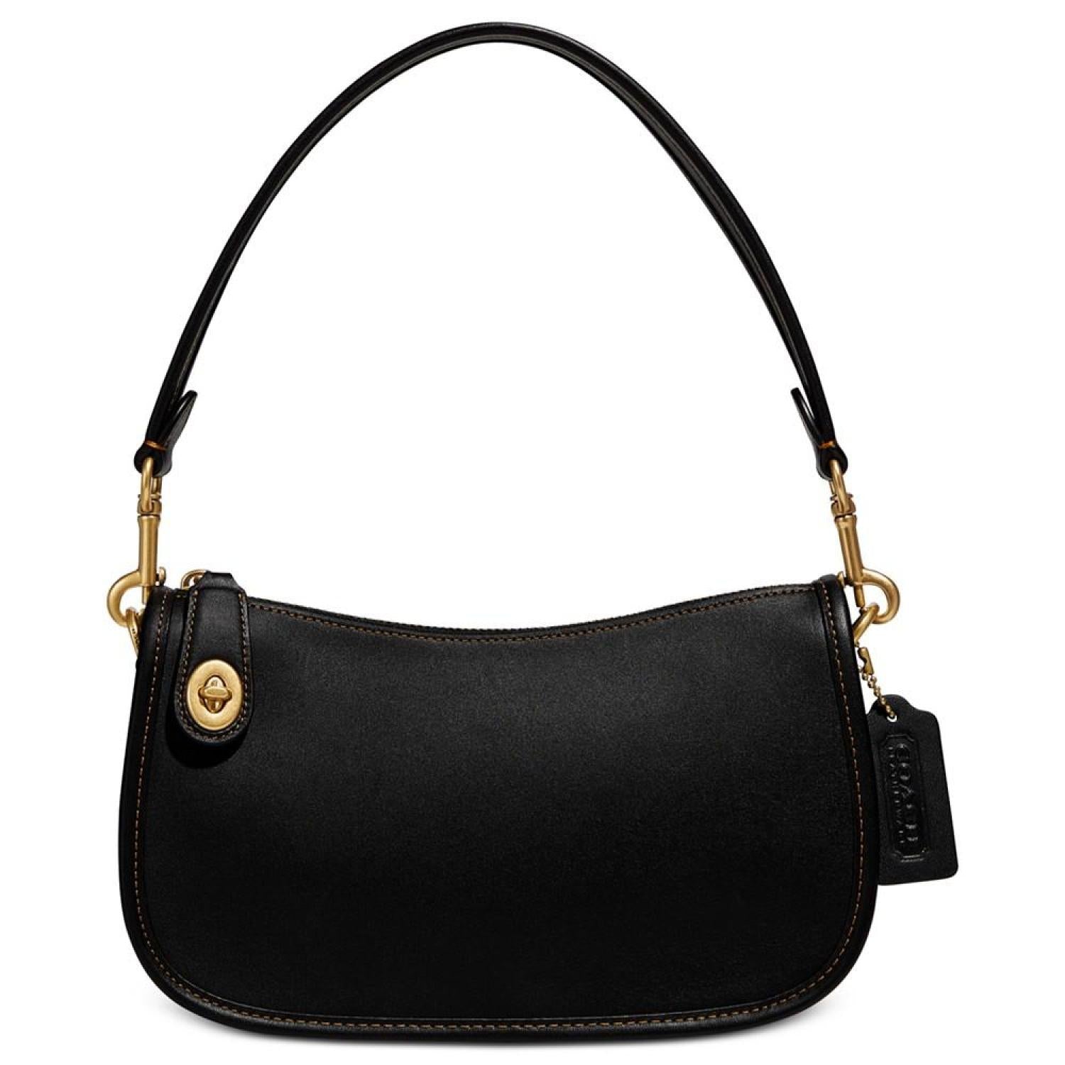 The Swinger Bag is part of The Coach Originals, a collection of archival-inspired bags that celebrates Coach's legacy and authentic New York heritage. This streamlined glovetanned leather style is based on a 1980s Coach design reimagined for today. Featuring an iconic turnlock closure, this zip-top short-strap shoulder bag sits just beneath the underarm for hands-free convenience and includes a detachable strap to wear as a crossbody. Some styles are just too good to leave in the archives. Glovetanned leather, fabric lining Zip top closure Brass tone hardware Detachable short strap with 8" drop Detachable long strap with 21 1/2" drop for shoulder or crossbody wear 9.25" (L) x 5.5" (H) x 2.75" (W) Imported