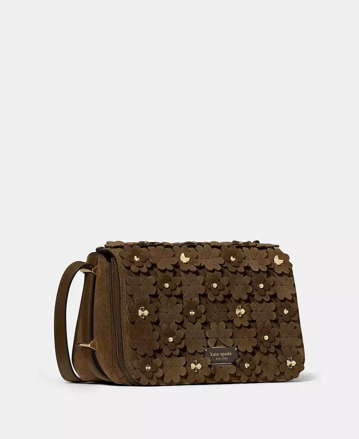 • Kate spade new york liv floral embellished suede crossbody in burnt sage