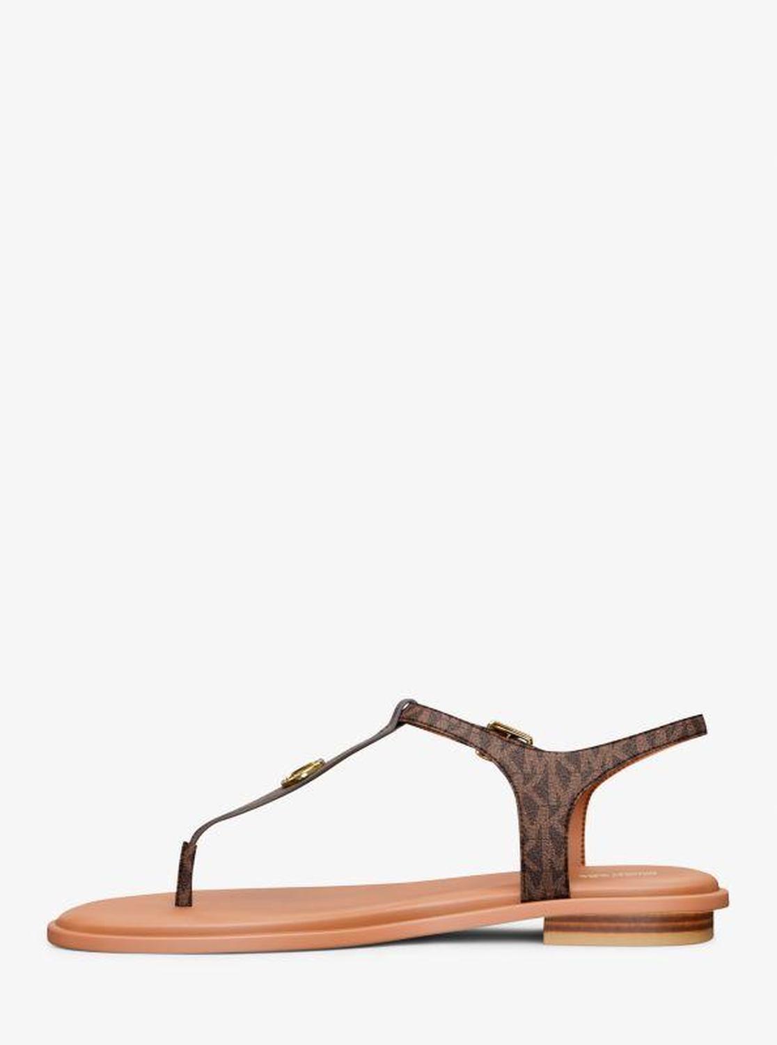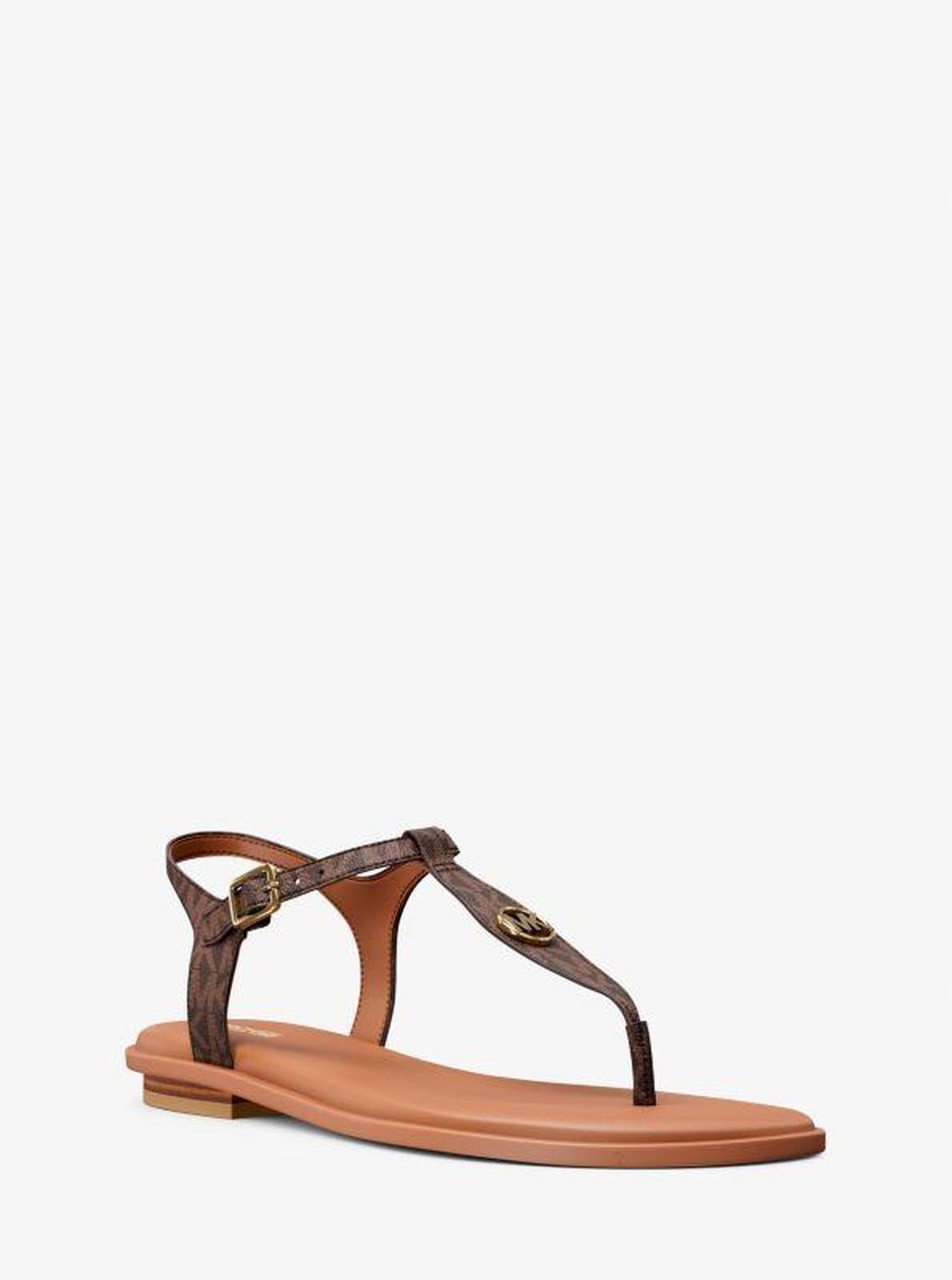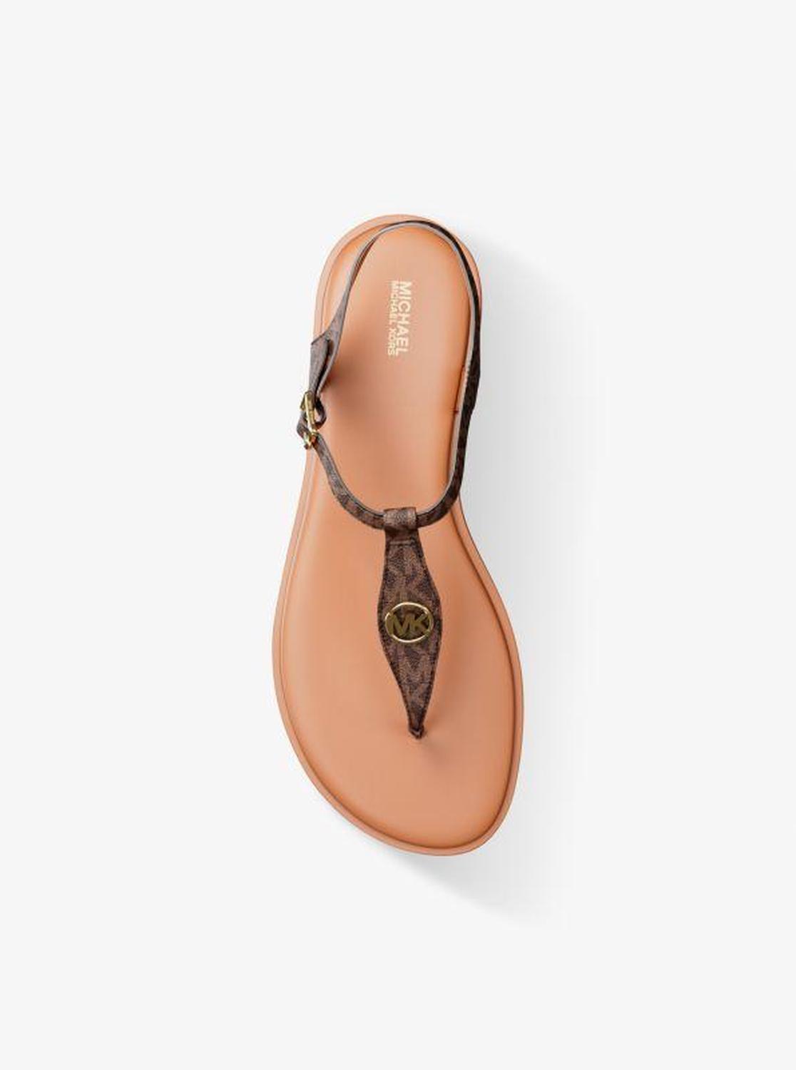 Michael Kors—defining modern glamour since 1981. • Sandal • Logo-print canvas • Lining: polyurethane blend • Sole: textile • Open toe • Buckle fastening • Imported • Sandal • Logo-print canvas • Lining: polyurethane blend • Sole: textile • Open toe • Buckle fastening • Imported