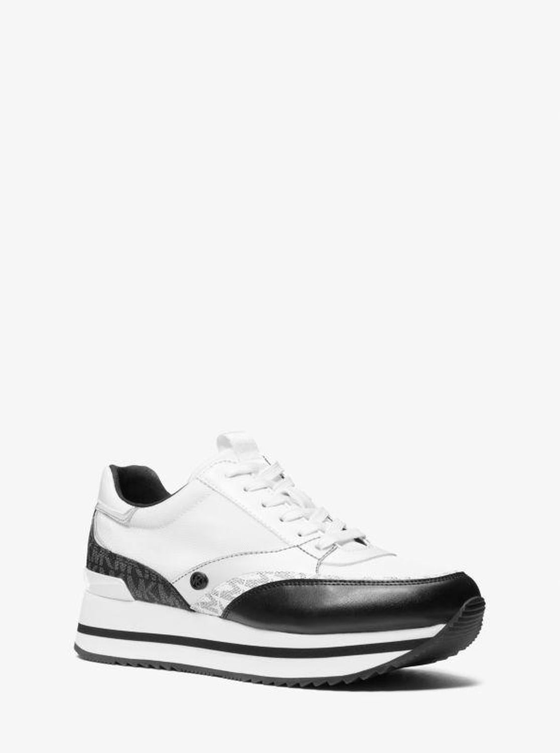 • Our Mariah trainers are reminiscent of classic gym sneakers, but with a glamorous update. Set on thick rubber platform soles, this low-top version is crafted from two-tones with Signature logo-print trim. Wear yours with a sporty mini dress and so much more.