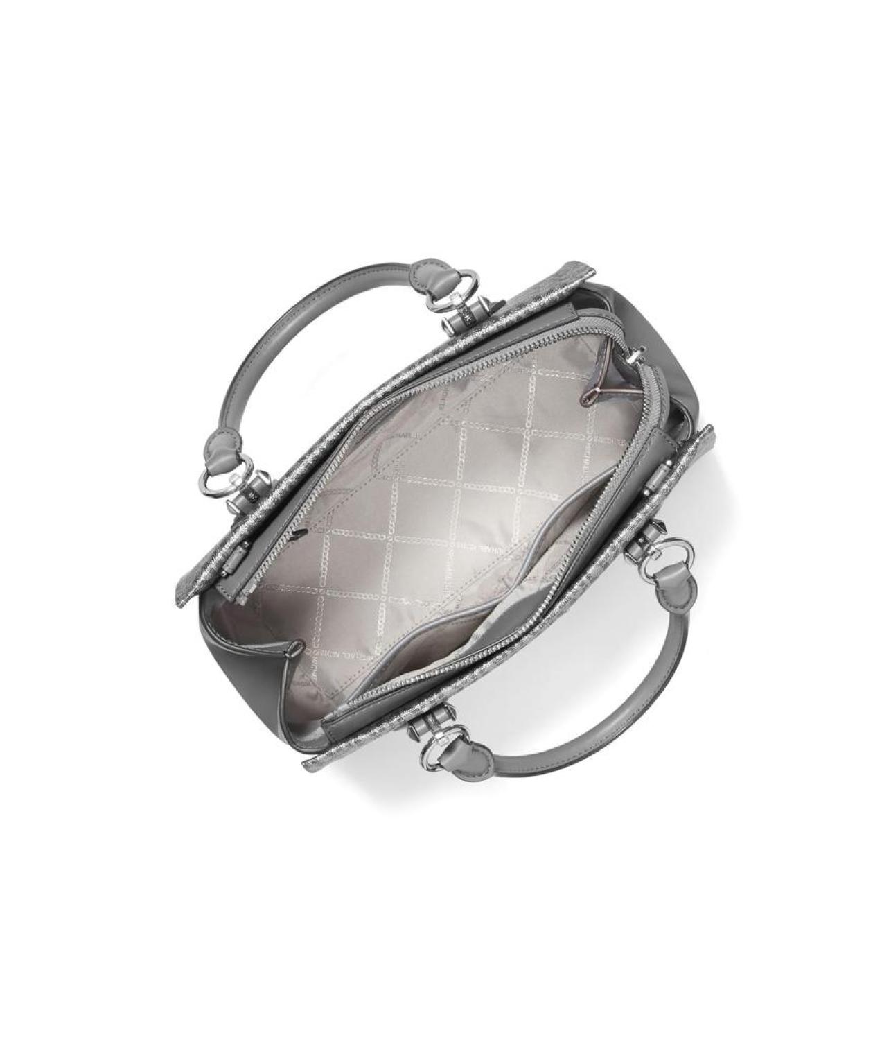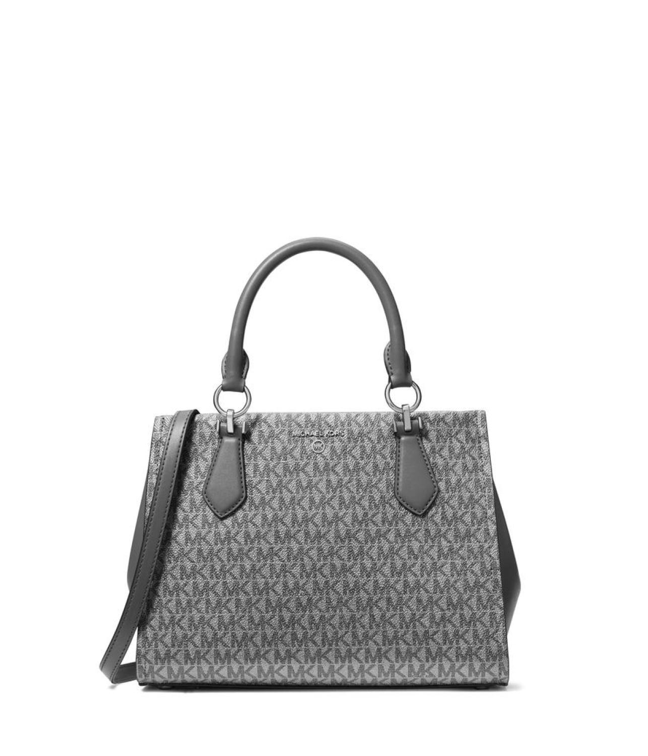 • Step into the world of refined elegance by carrying the MICHAEL Michael Kors® Marilyn Medium Satchel. Its exterior features back and front slip pockets, providing convenient storage for your essentials. The well-designed interior includes a back zip pocket and two front slip pockets, ensuring efficient organization of your belongings. The zip fastening offers security, while the brand's initials hardware on the front adds a touch of sophistication and elegance.