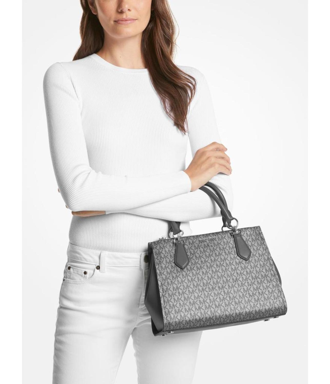 Step into the world of refined elegance by carrying the MICHAEL Michael Kors® Marilyn Medium Satchel. Its exterior features back and front slip pockets, providing convenient storage for your essentials. The well-designed interior includes a back zip pocket and two front slip pockets, ensuring efficient organization of your belongings. The zip fastening offers security, while the brand's initials hardware on the front adds a touch of sophistication and elegance.