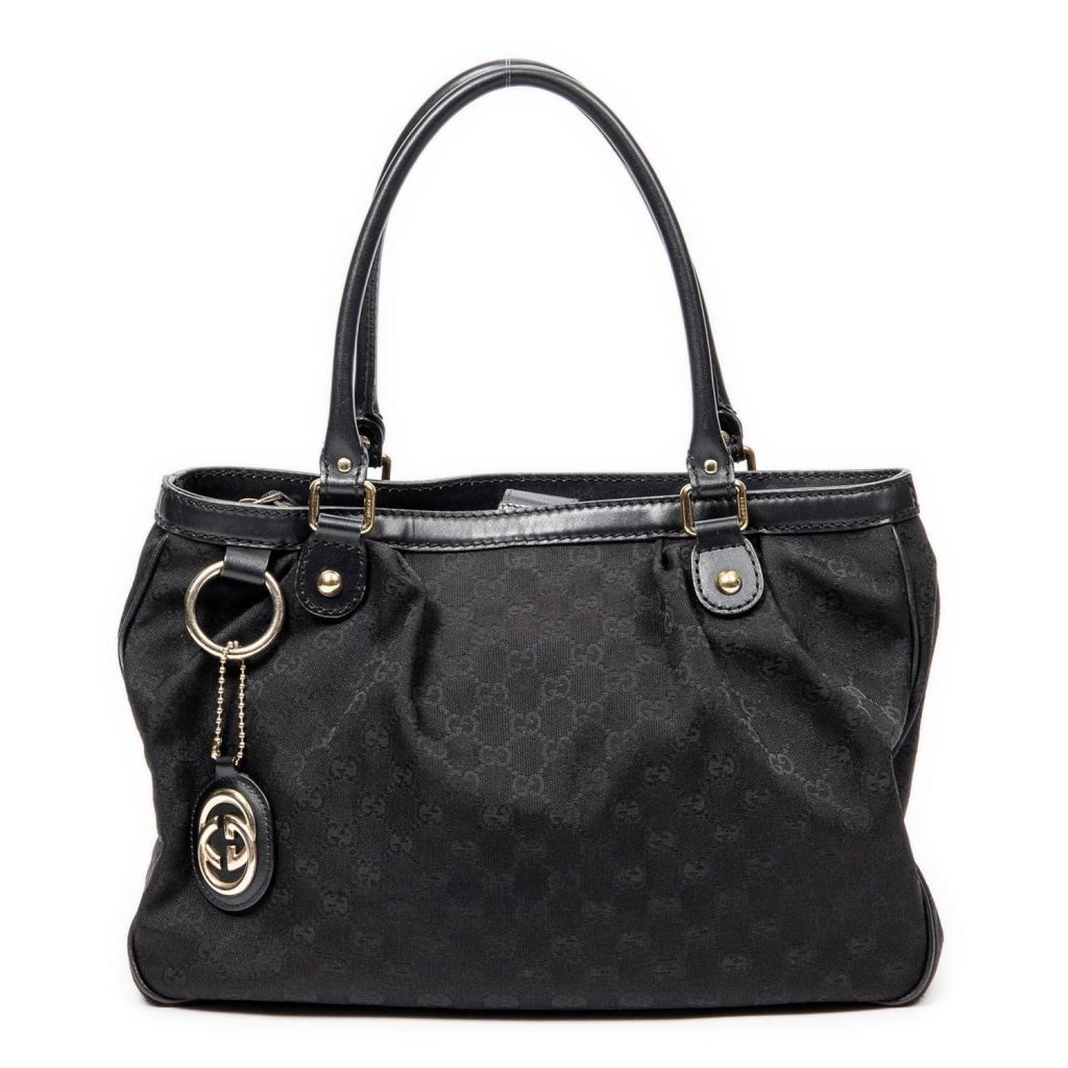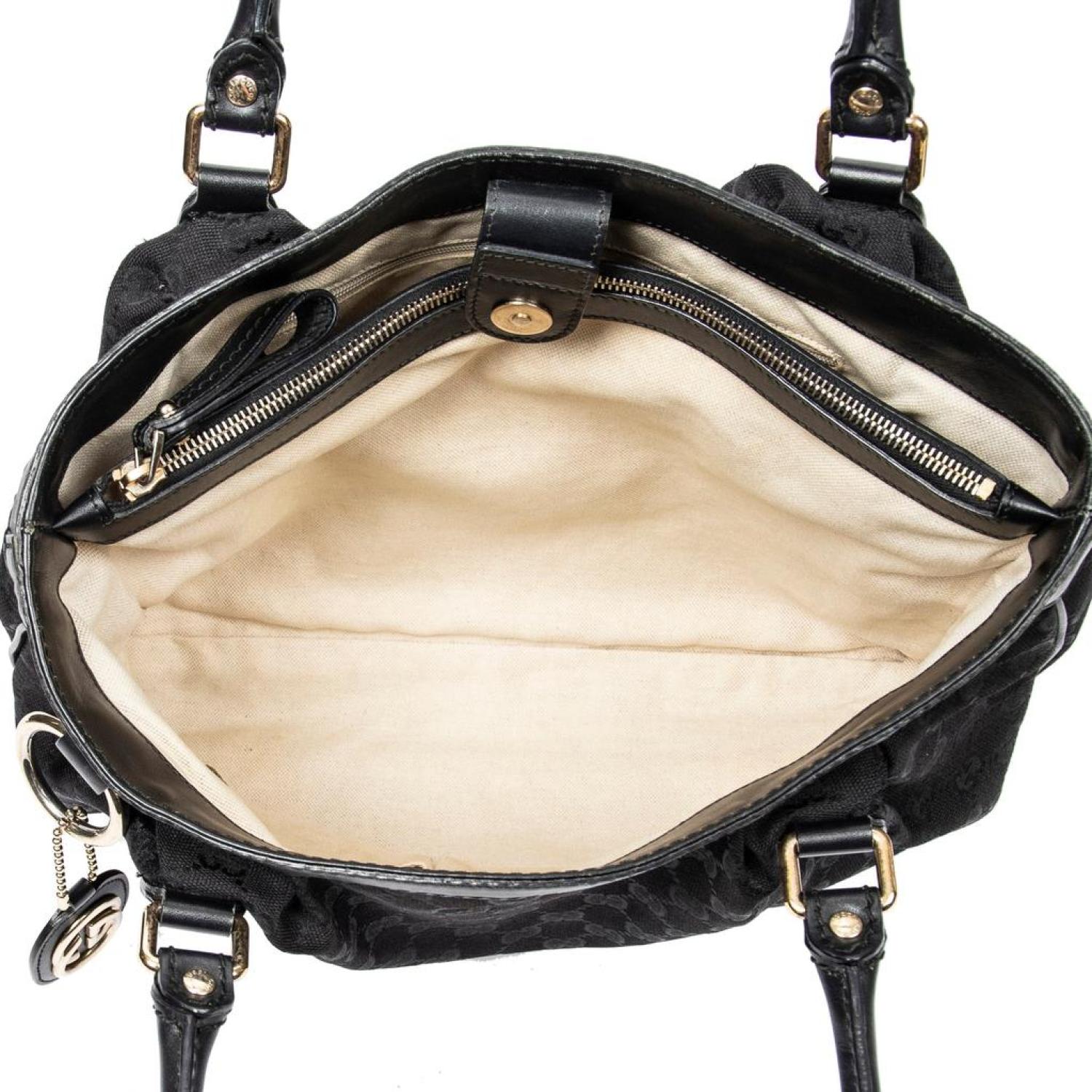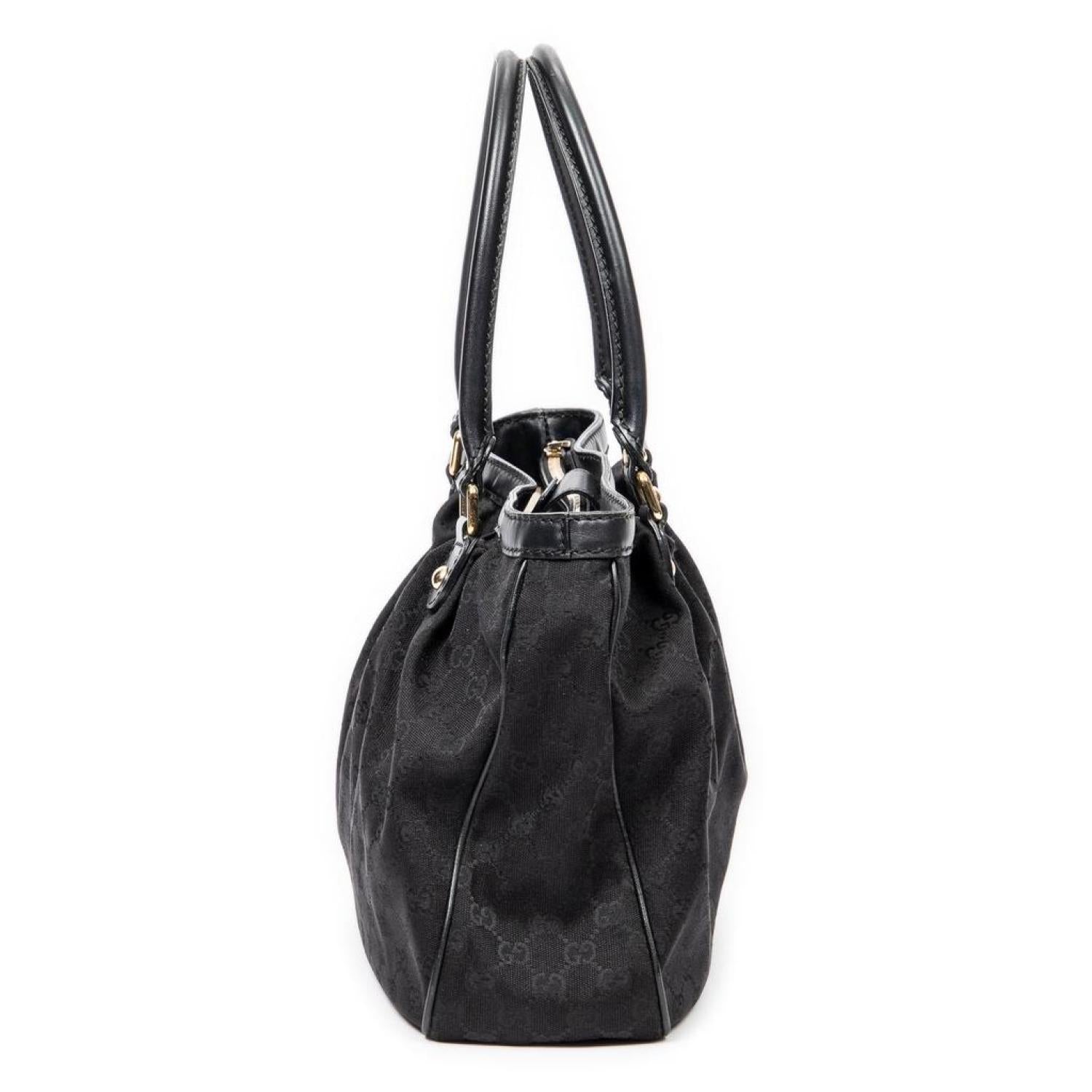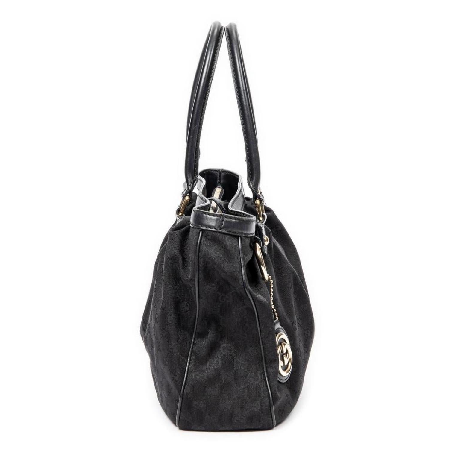 • Gucci Shoulder Bag in Black Monogrammed Canvas and Gold hardware. Dimensions - 37*26,5*11cm. Serial number - 296835-520981. Inclusions - Dustbag, Charm.