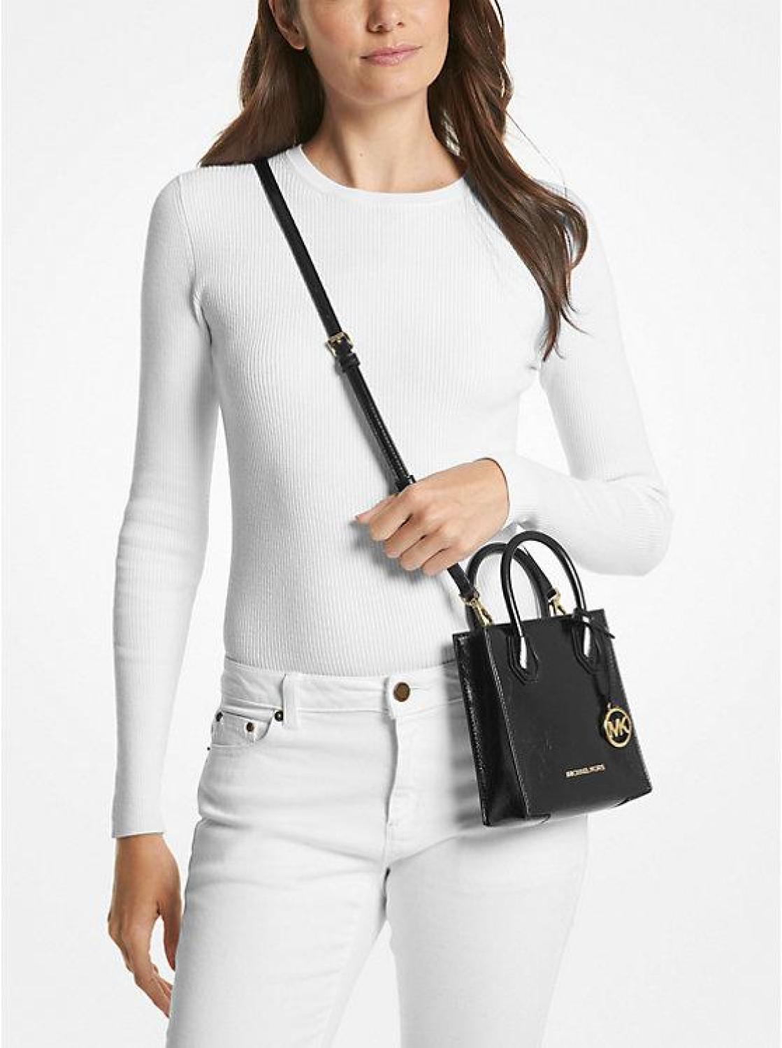 • Our scaled-down Mercer crossbody allows you to travel light without compromising on style. Designed with a high-shine patent finish, this bag features structured top handles and an adjustable shoulder strap for added versatility. Wear it crossbody on casual days, or carry it by the top handles for added polish.