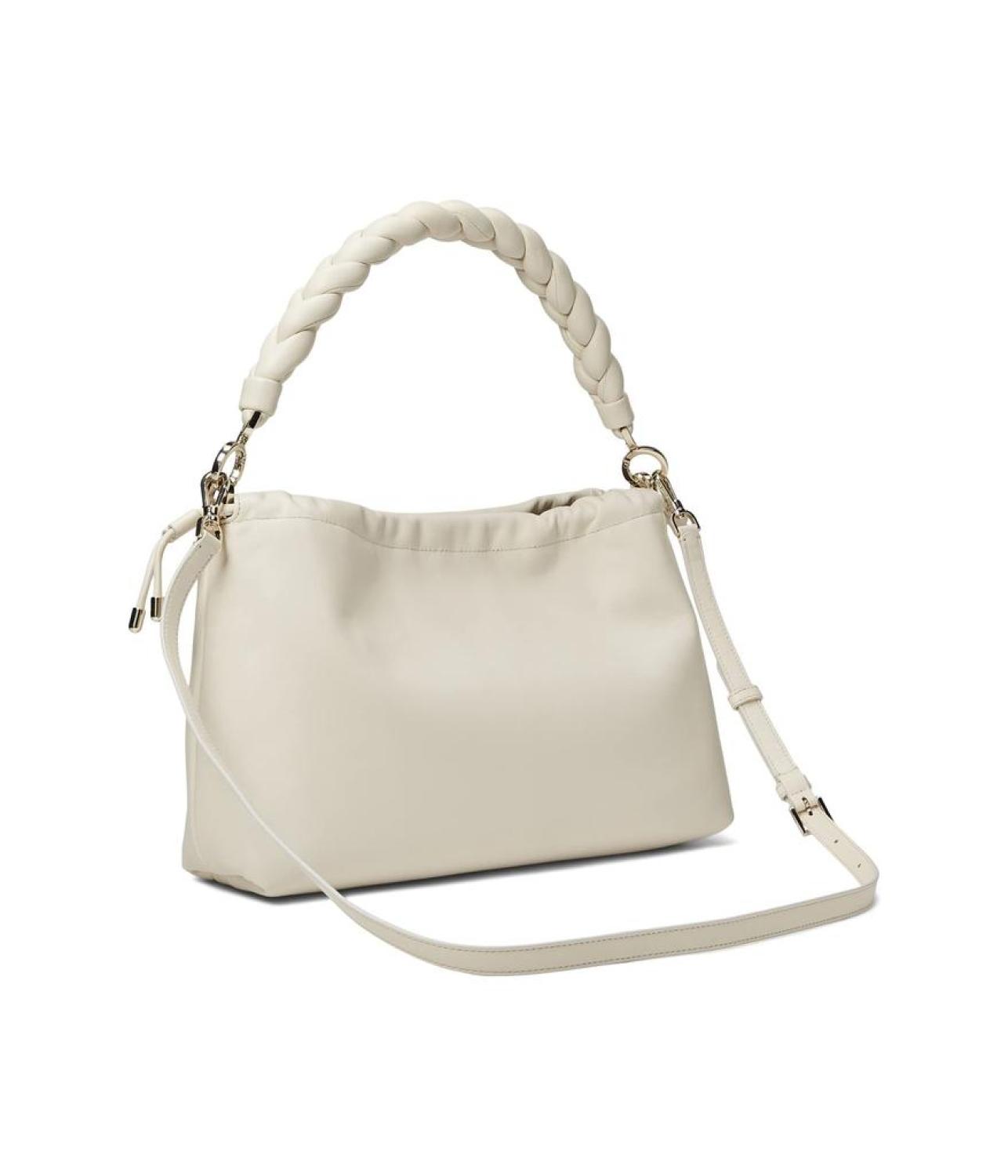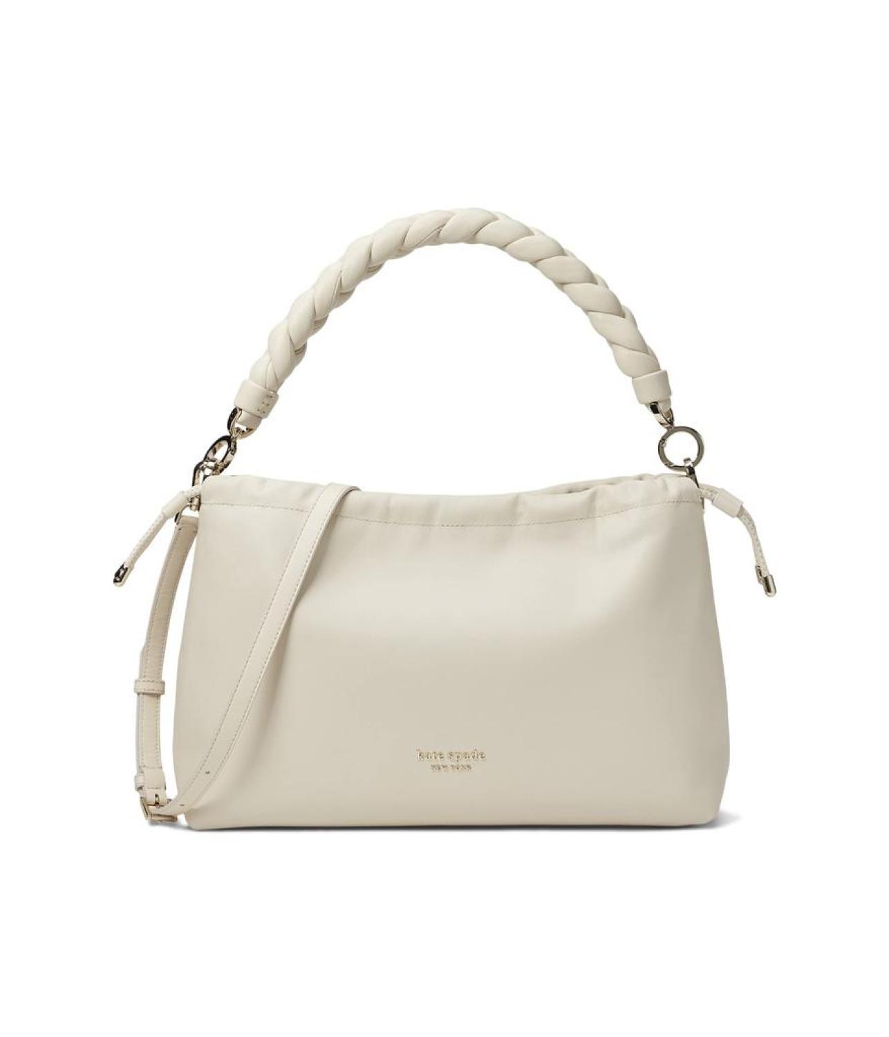 A versatile and classy choice for carrying your everyday essentials, the Kate Spade New York® Meringue Smooth Nappa Leather Large Shoulder Bag features a high-quality and durable construction with a smooth exterior and a roomy interior. Made of leather. Magnetic snap closure. One zippered interior pocket and two slip pockets. One braided top handle. One removable shoulder strap. Textile lining. Imported. Please note, the hardware color and interior lining may differ from the color shown in the photo. Measurements: Bottom Width: 14 in Depth: 4 in Height: 9 in Strap Length: 45 in Strap Drop: 19 in Accessory Strap Length: 20 in Accessory Strap Drop: 7 in Weight: 1 lb 9 oz