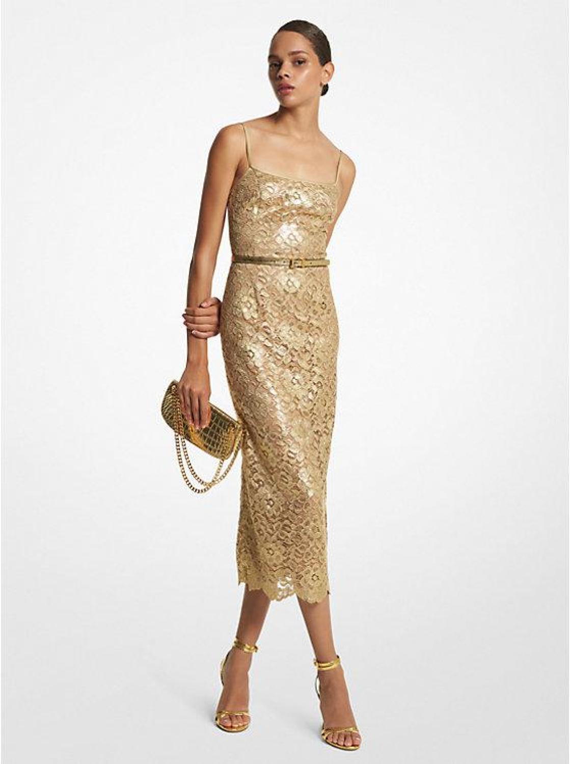 Metallic Floral Lace Slip Dress