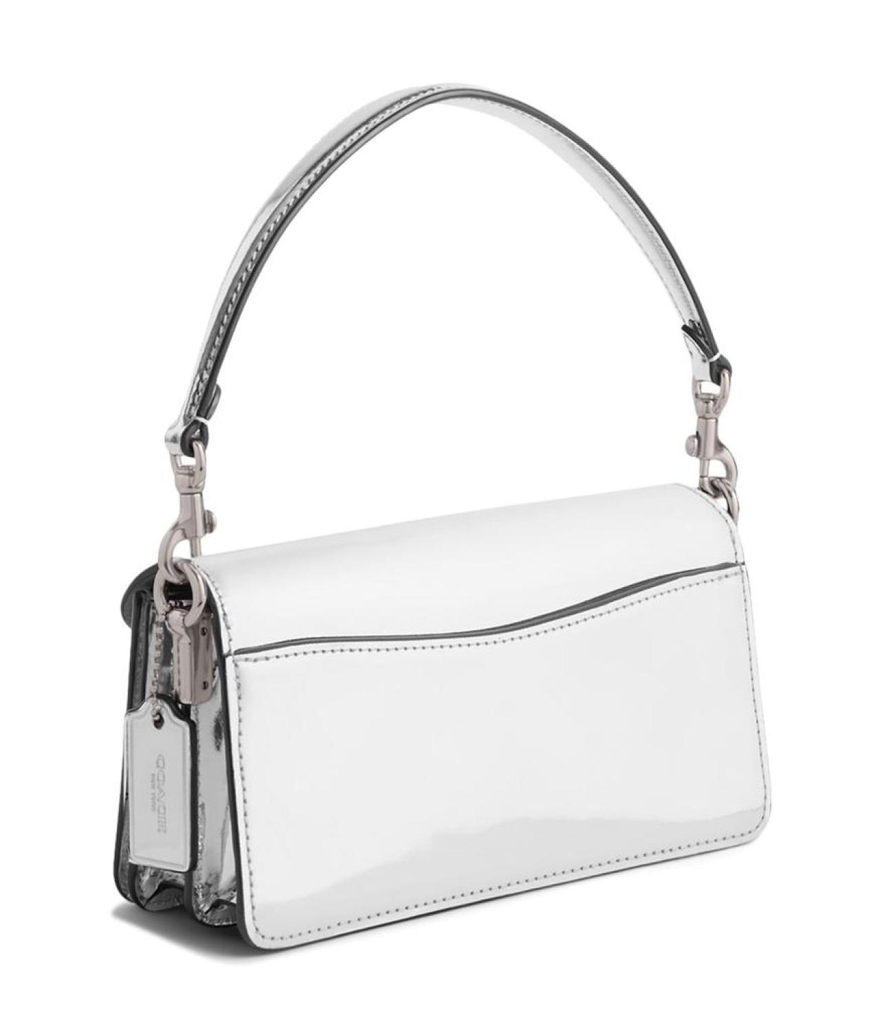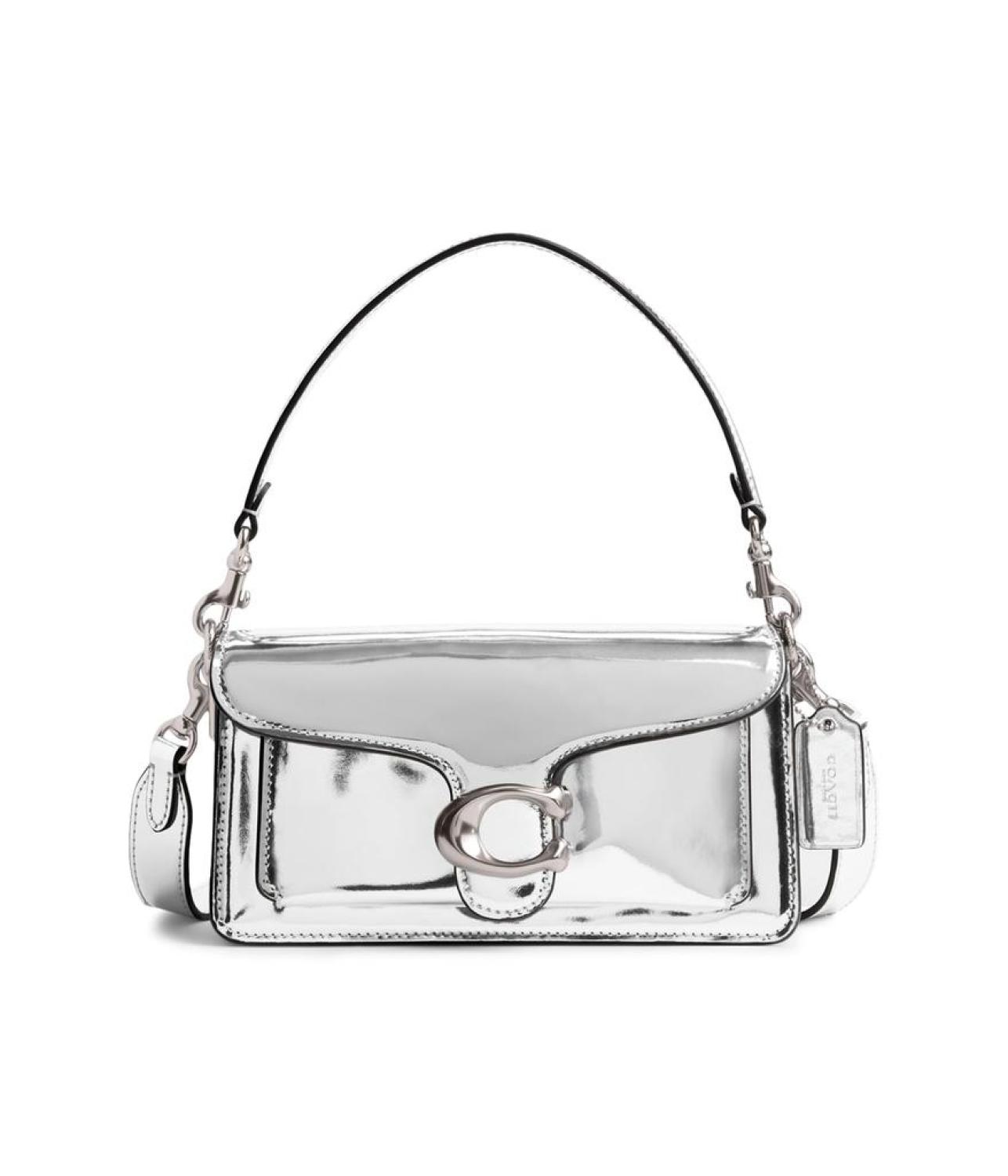 Please Note: COACH™ items cannot be shipped to military addresses (APO or FPO) and addresses in Hawaii, the Virgin Islands, Guam or any other locations outside of the continental US. Steal the spotlight by carrying the stylish COACH™ Metallic Tabby Shoulder Bag 20. The handbag features a detachable grab handle and a detachable strap for shoulder or crossbody wear. Crafted from metallic leather, the bag with snap closure and flap adds effortless style to your look. Zippered inside pocket with multiple slip pockets. Exterior slip pocket. COACH "C" hardware on the center front. Polyester lining. Imported. Measurements: Bottom Width: 2 5/6 in Height: 4 1/3 in