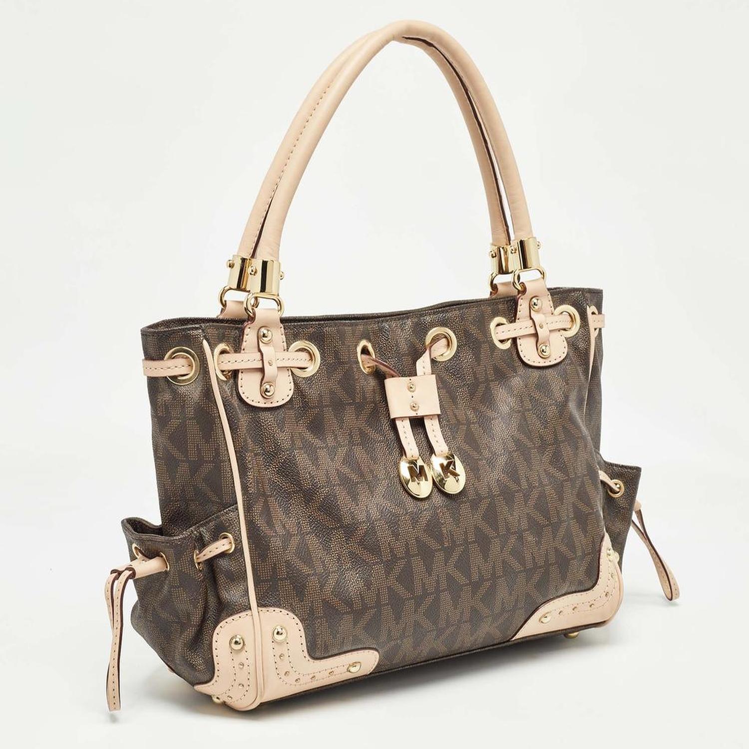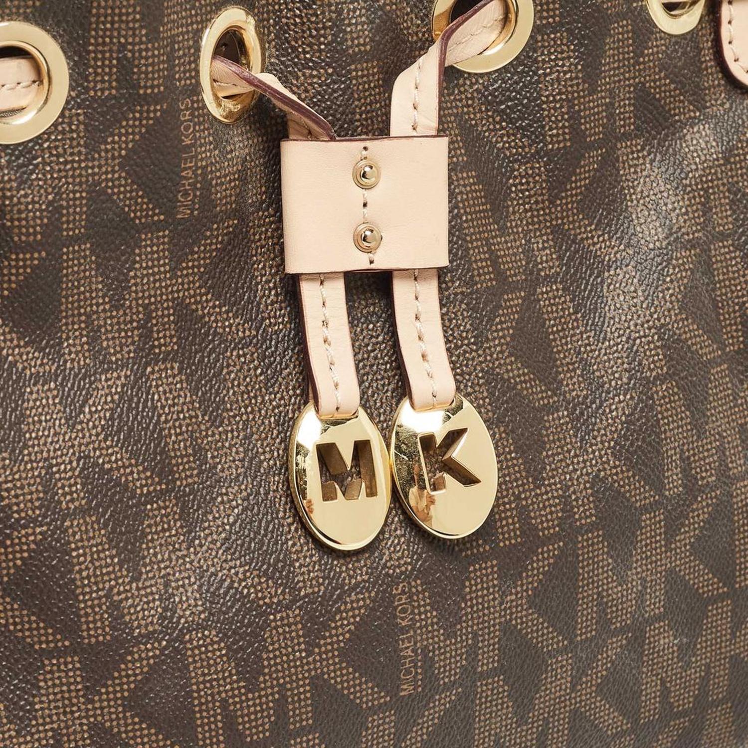 Michael Kors /beige Monogram Coated Canvas And Leather Drawstring Bag