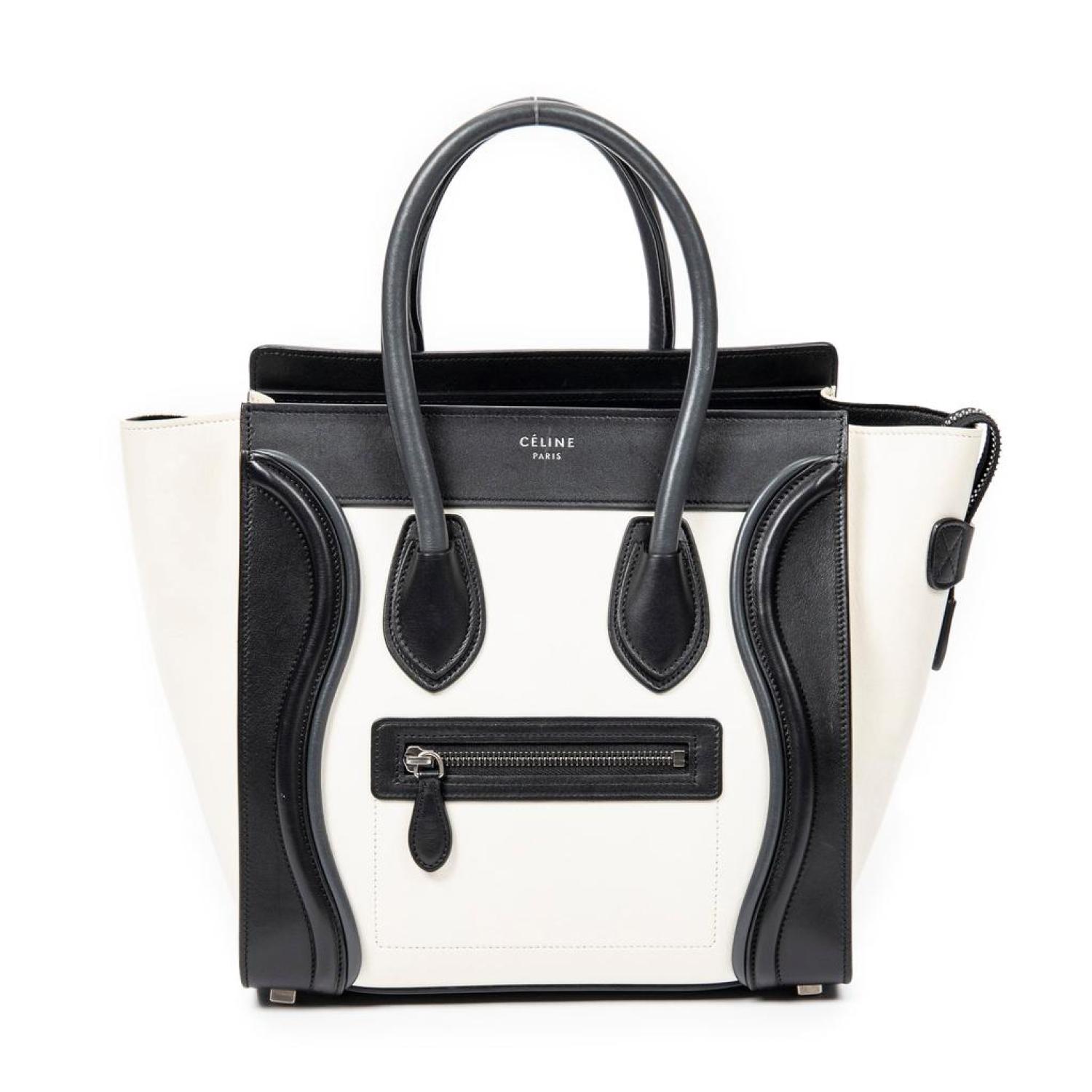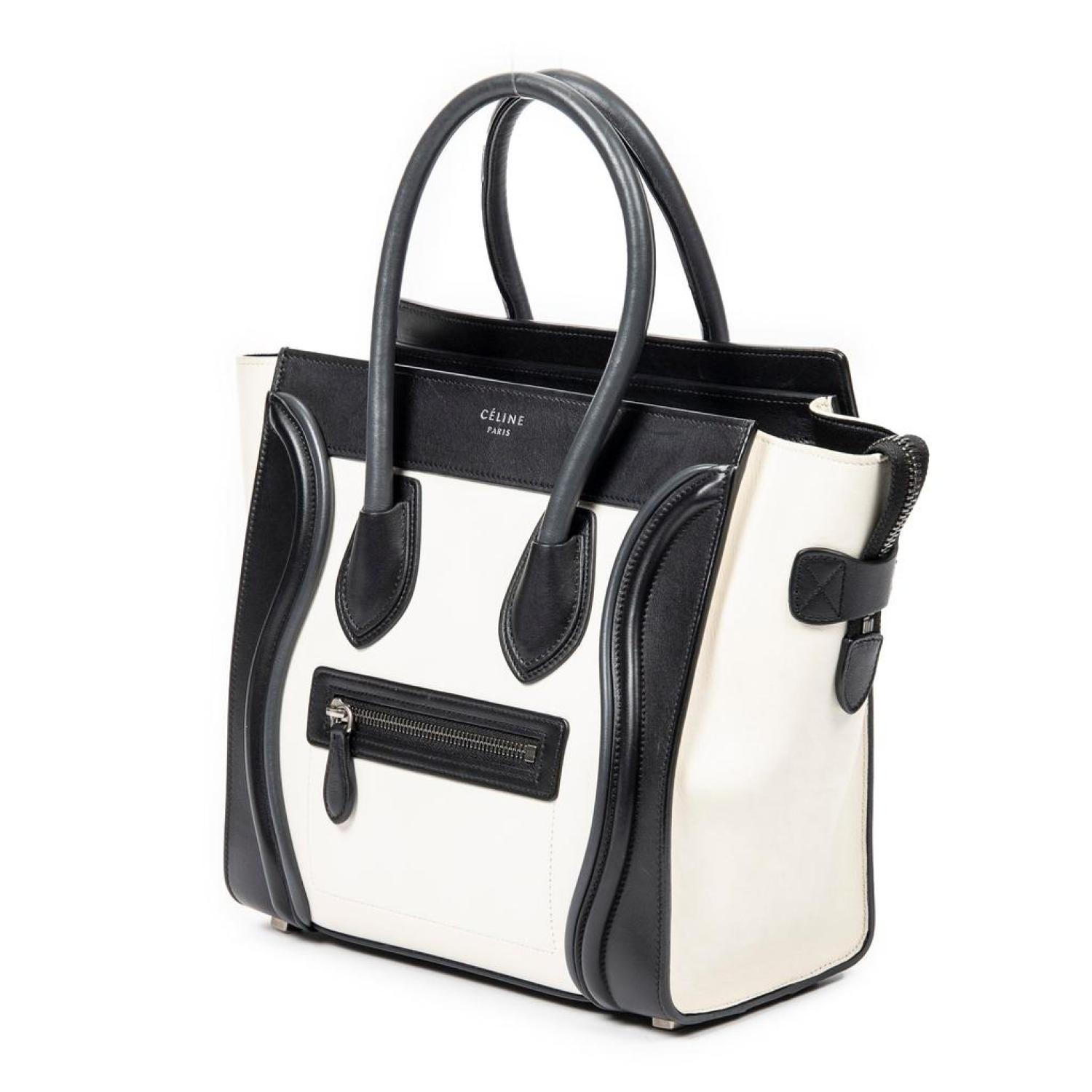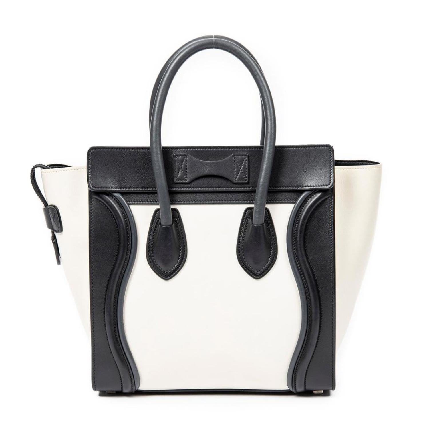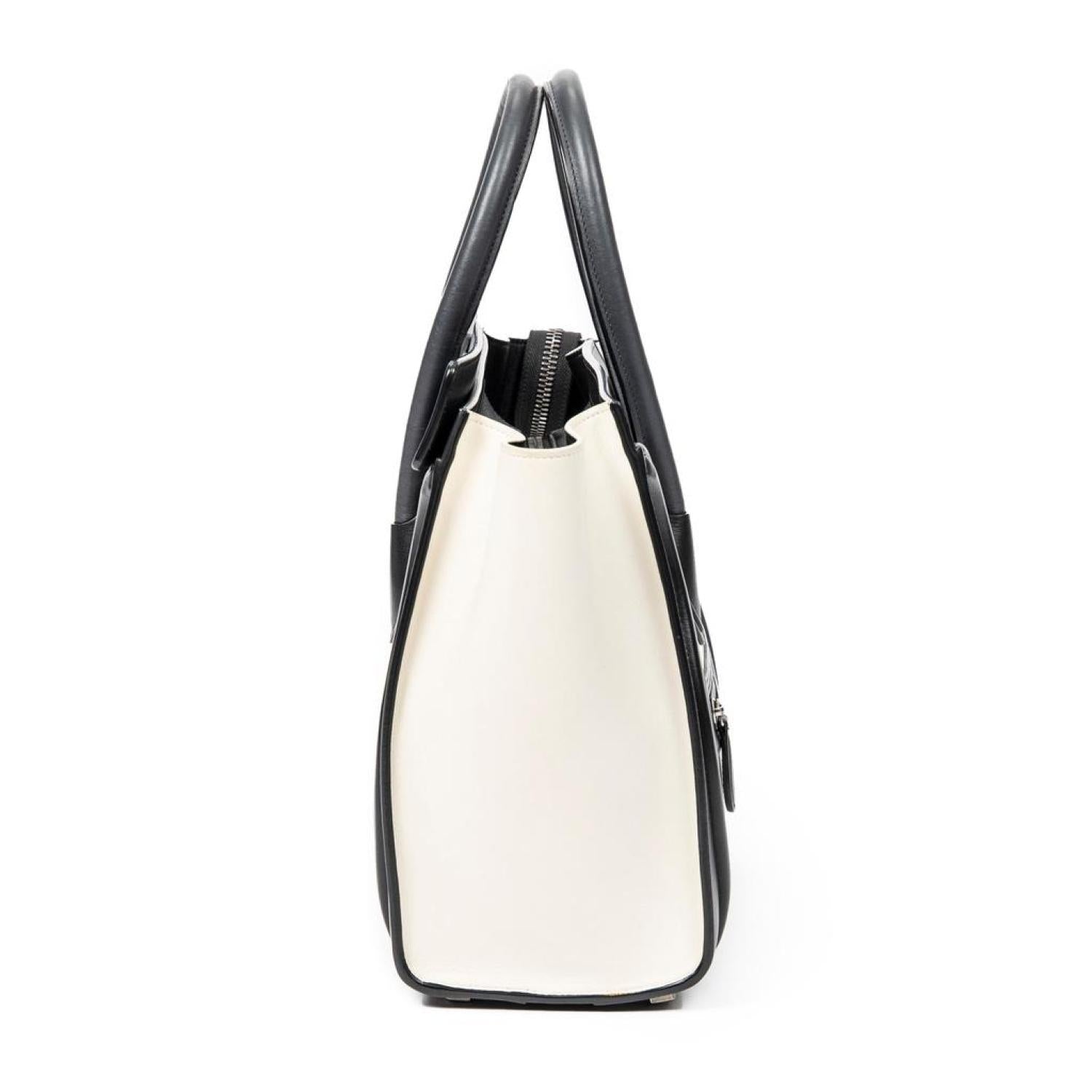 Celine Shoulder Bag in Ivory/Black Calfskin Leather and Silver hardware. Dimensions - 26*26*14cm. Serial number - U-GA-5116. Inclusions - dustbag.
