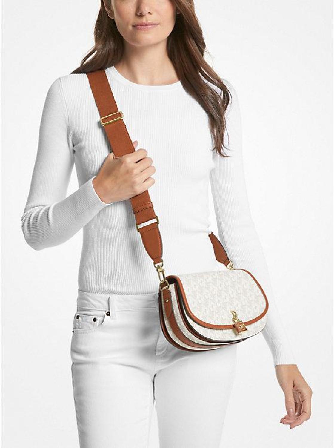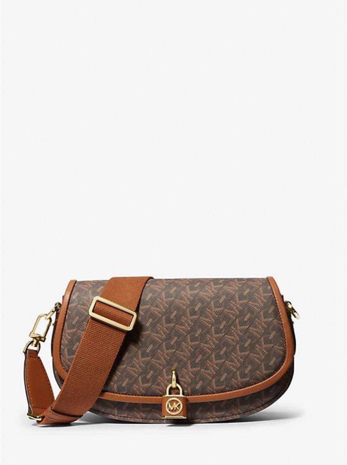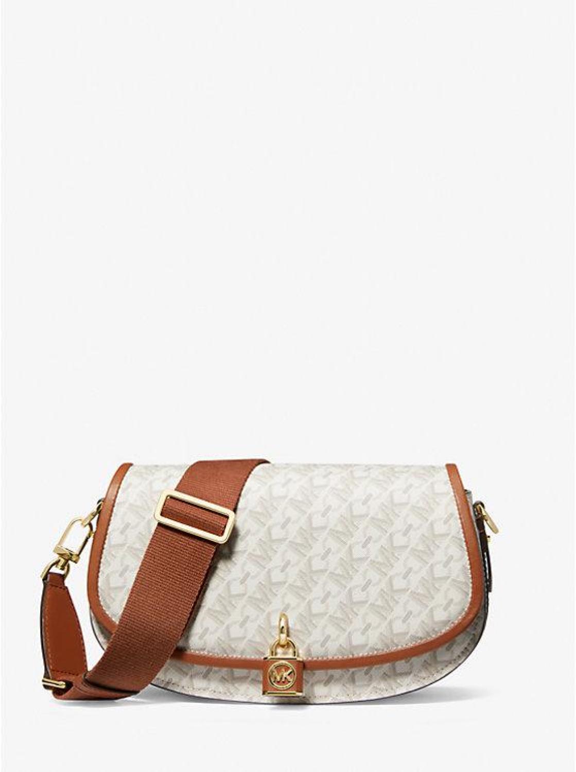 • Fashionable yet functional, our Mila messenger bag is the ultimate travel companion. Splashed with the brand’s new Empire Signature logo print, it has a curved shape finished with a decorative padlock charm and an adjustable webbing strap for wear-everywhere appeal. Inside, there are several slip pockets to keep your belongings safe and organized.