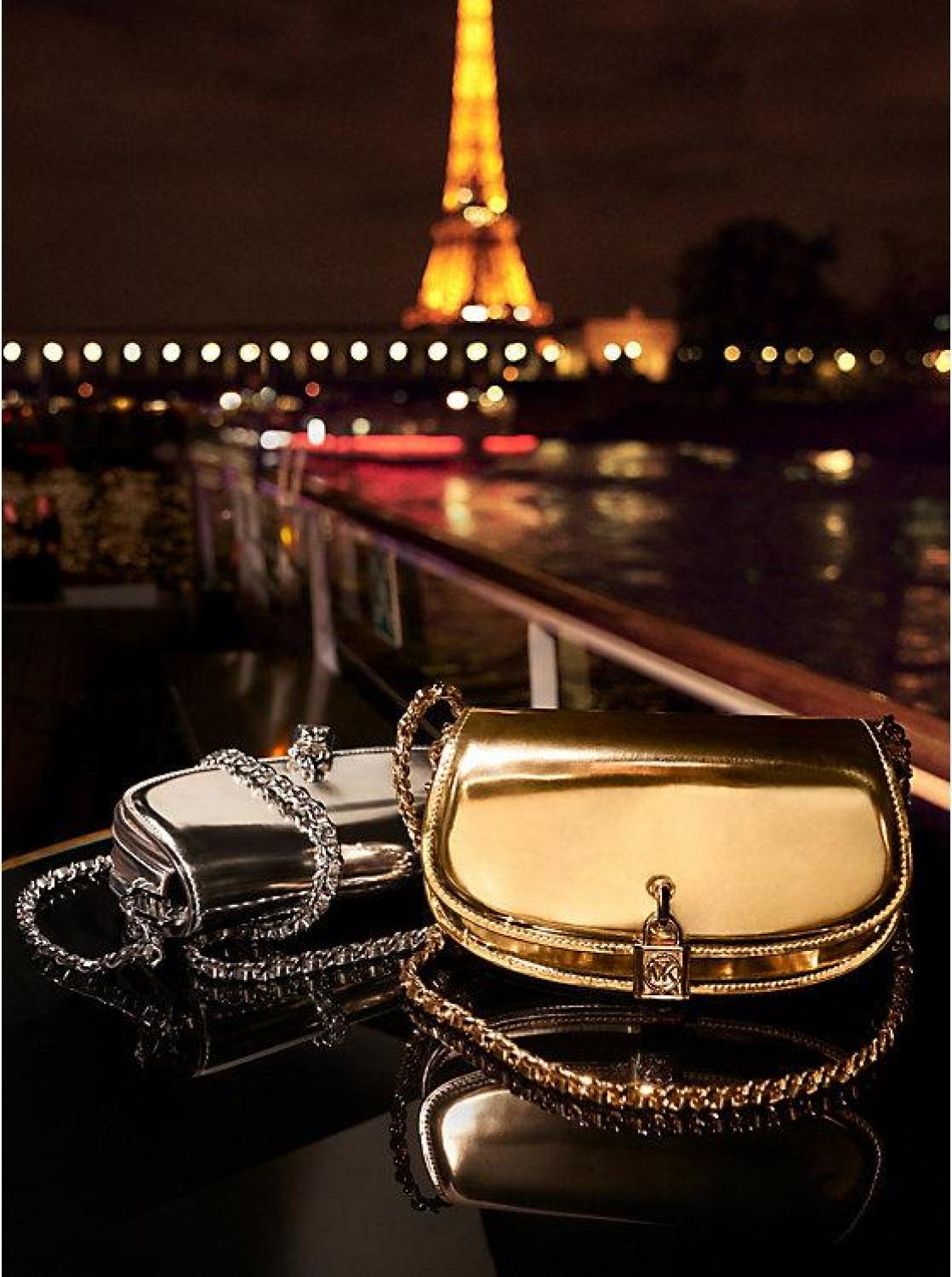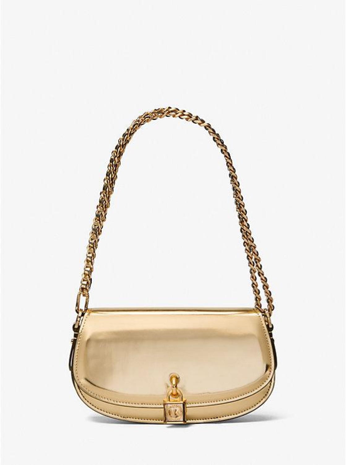 • Never before has a shoulder bag looked so chic. Made from metallic leather with a glossy high-shine finish, the Mila features a curved shape and a signature padlock charm. Sling the braided chain-link strap over your shoulder for on-the-go glamour.