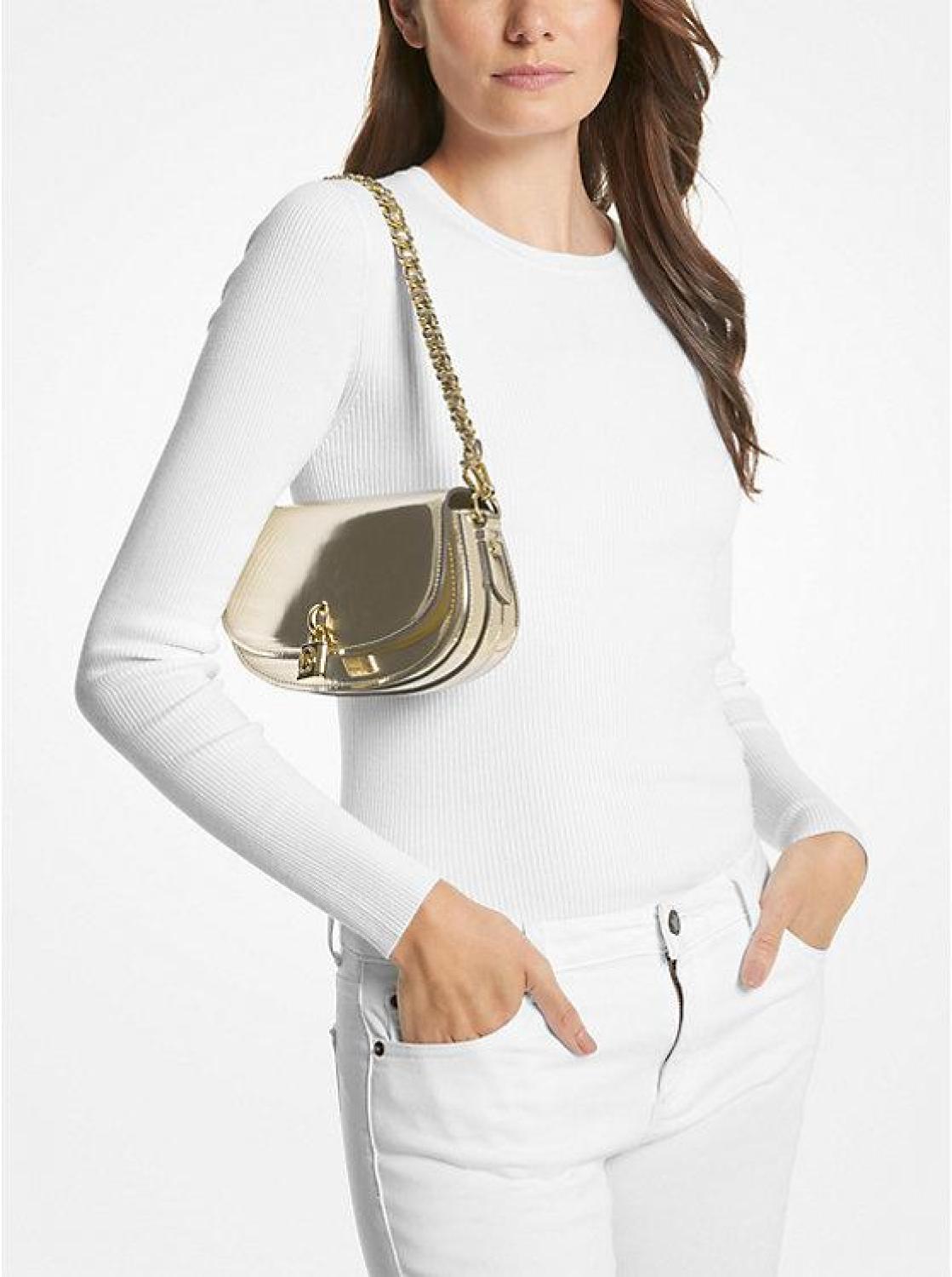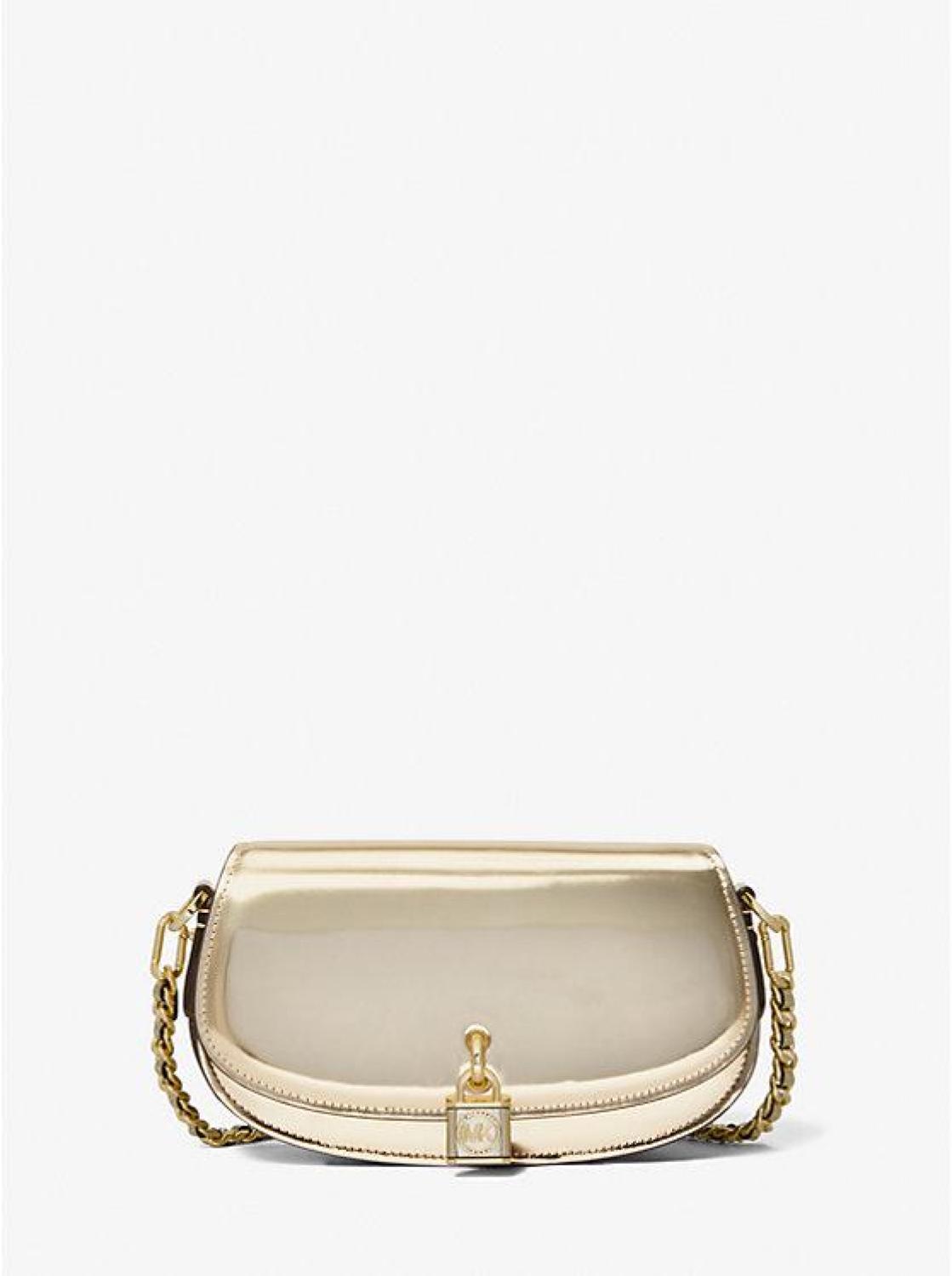 Never before has a shoulder bag looked so chic. Made from metallic leather with a glossy high-shine finish, the Mila features a curved shape and a signature padlock charm. Sling the braided chain-link strap over your shoulder for on-the-go glamour.