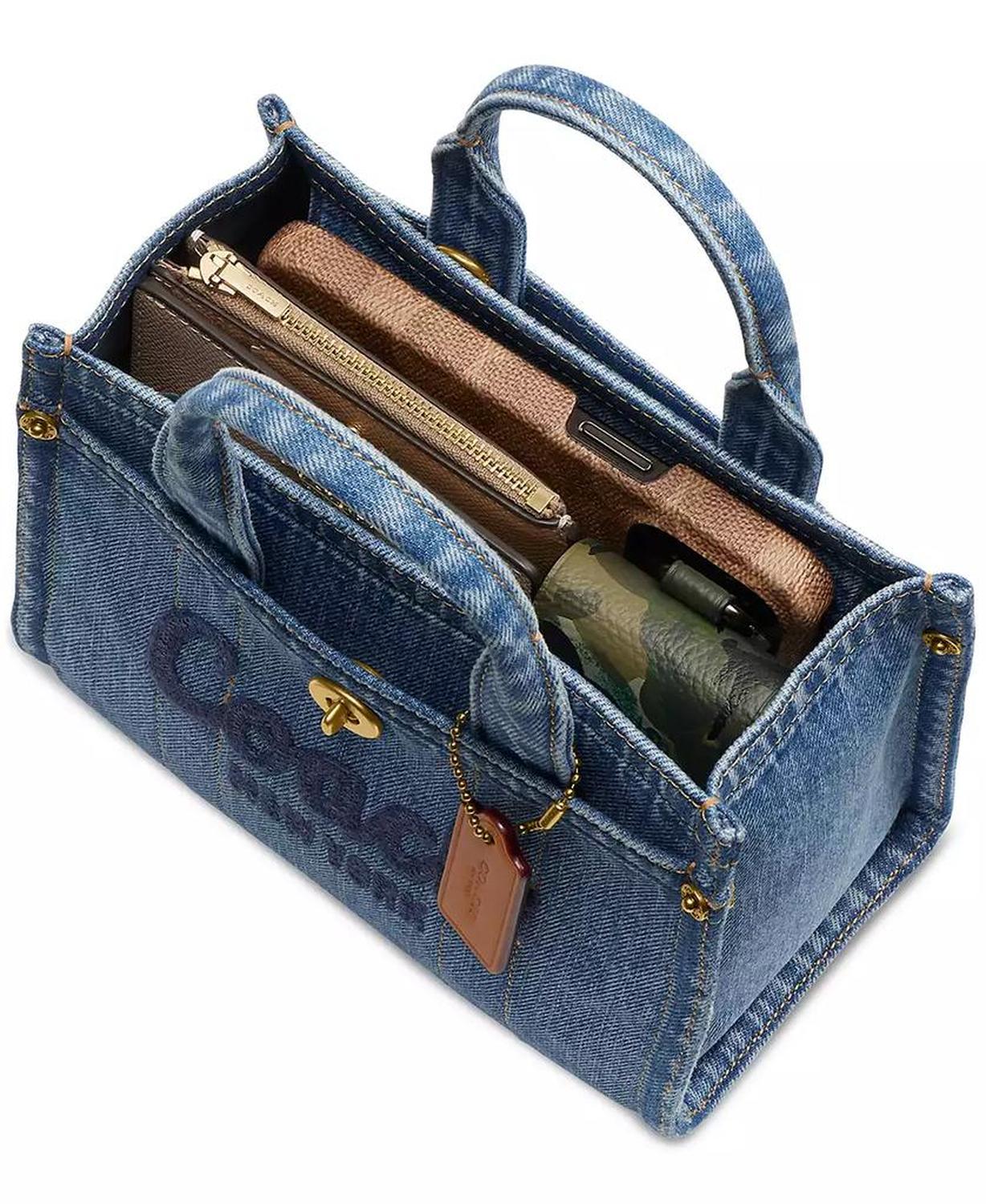 Crafted in denim with an embroidered logo, this mini tote by COACH offers functional details in a compact silhouette.
