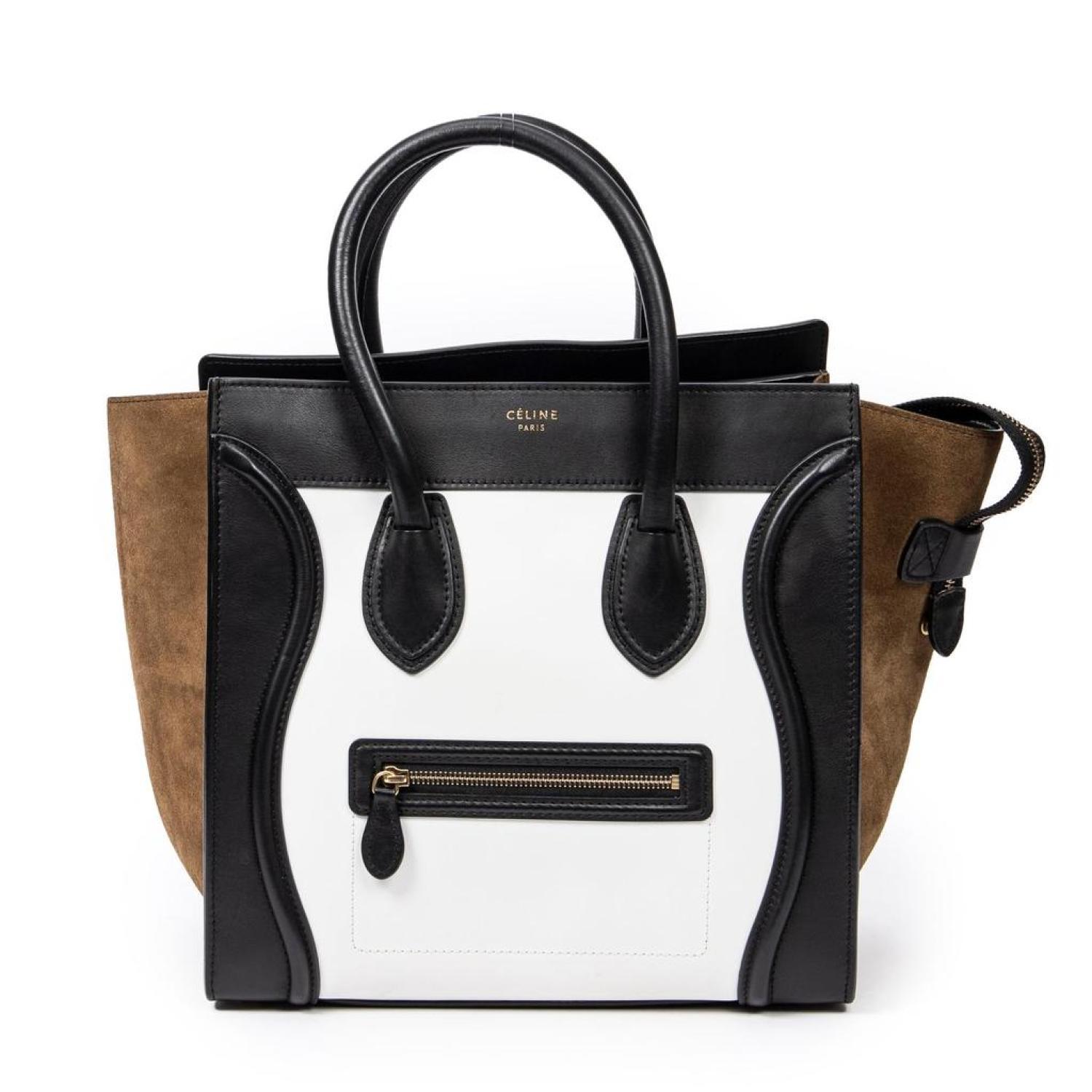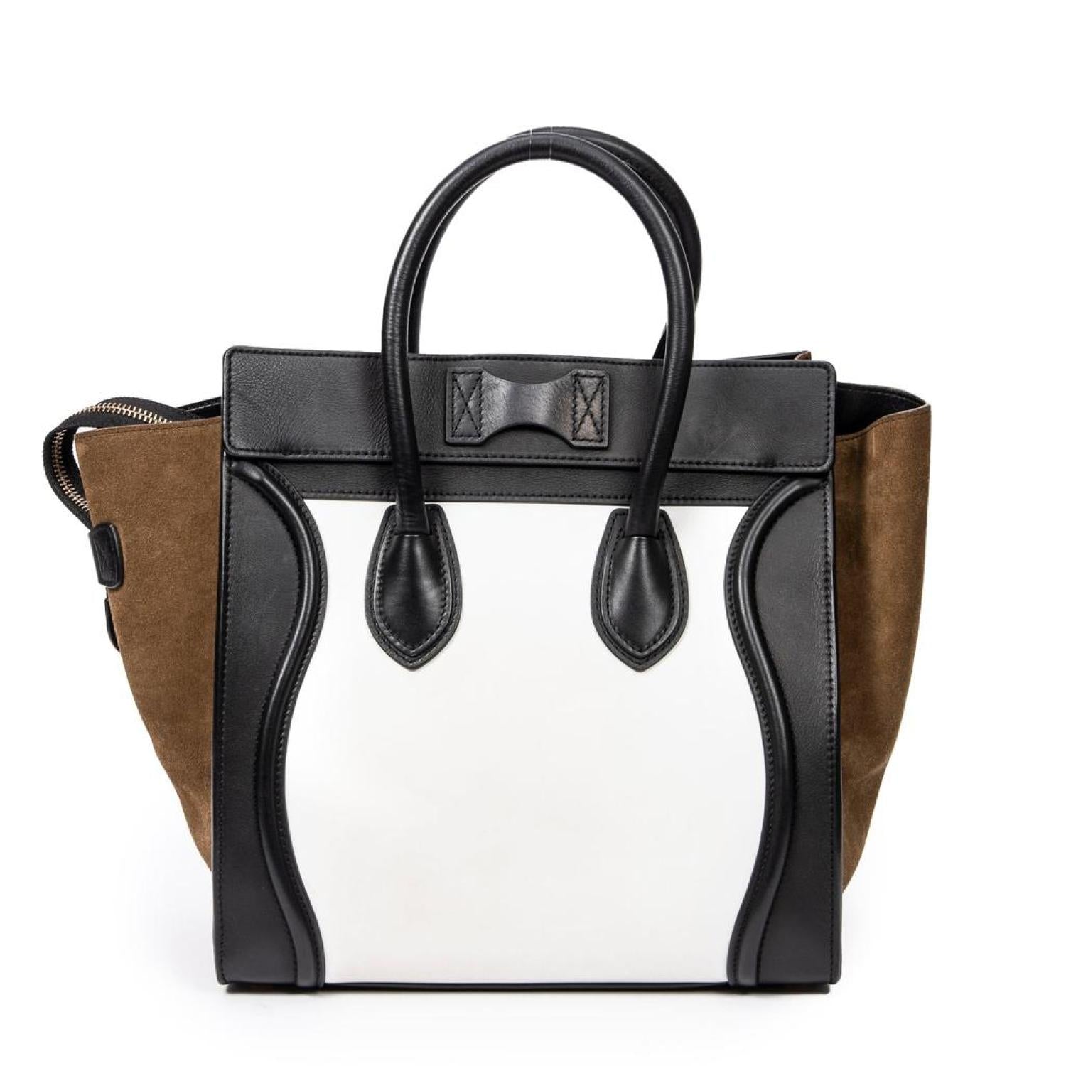 Celine Handbag in Black/White/Khaki Calfskin Leather and Gold hardware. Dimensions - 30*30*17cm. Serial number - S-SA-0182 S-CU-0182. Inclusions - dustbag.