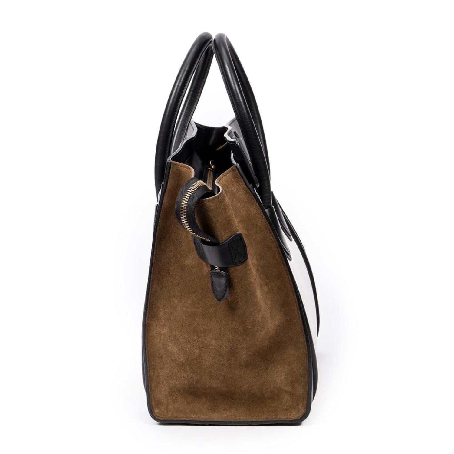 • Celine Handbag in Black/White/Khaki Calfskin Leather and Gold hardware. Dimensions - 30*30*17cm. Serial number - S-SA-0182 S-CU-0182. Inclusions - dustbag.
