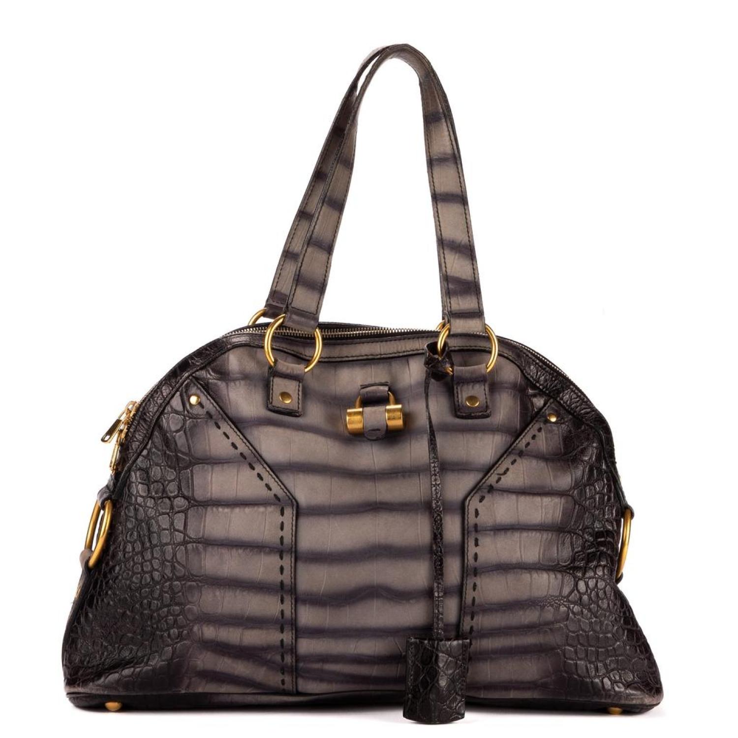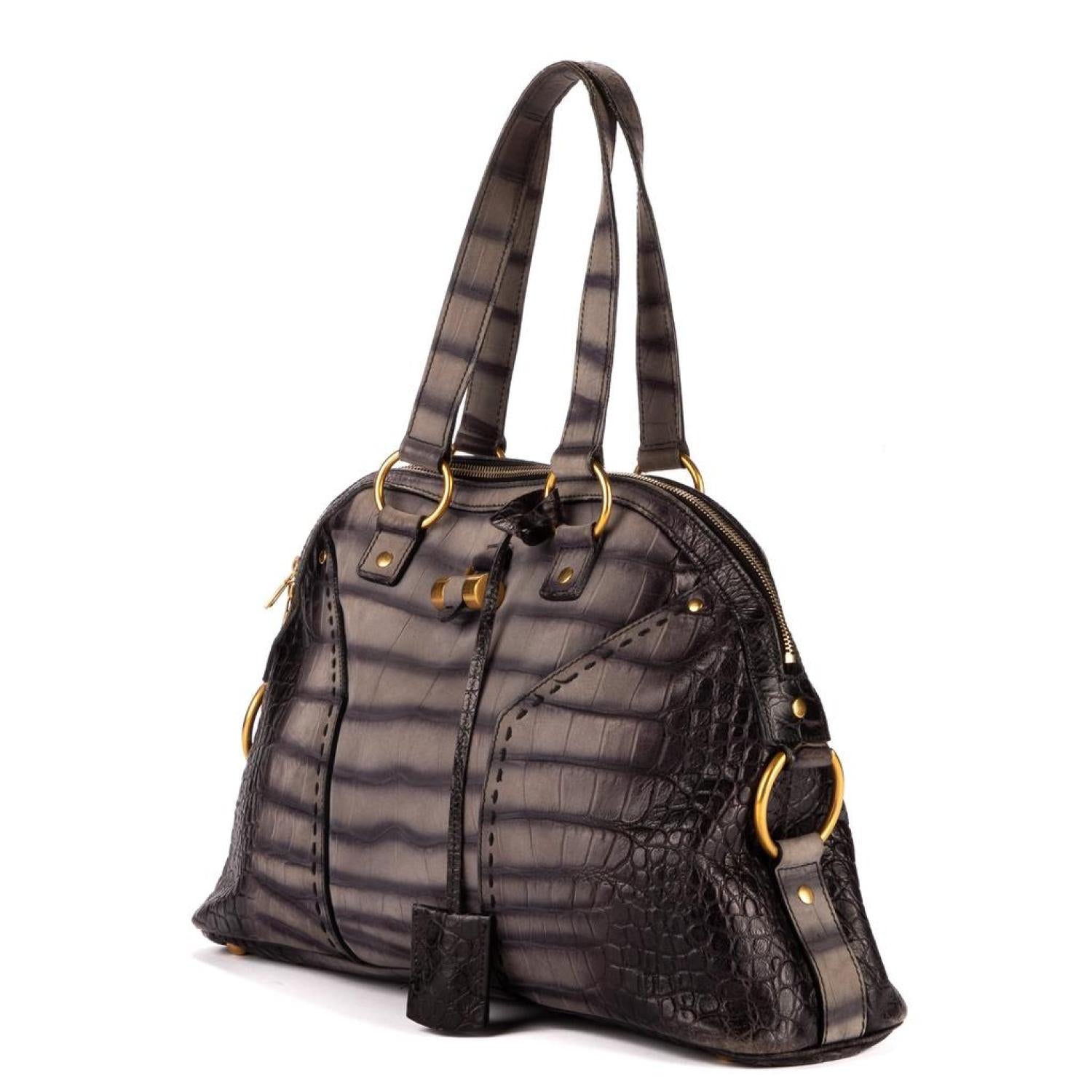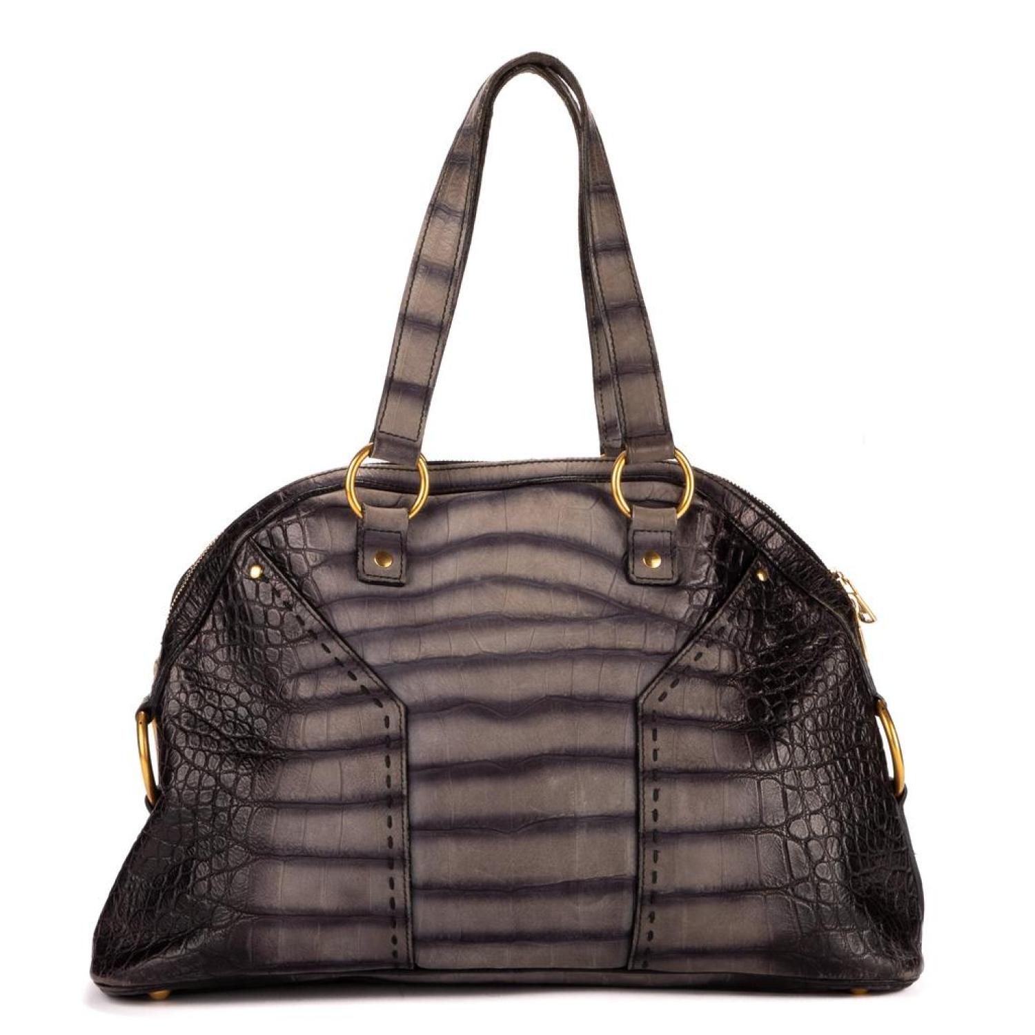 Yves Saint Laurent Shoulder bag in Grey Croco embosed calfskin and Gold hardware. Dimensions - 40*27*12cm. Serial number - 1.56E+11. Inclusions - "Cadenas, key in clochette".