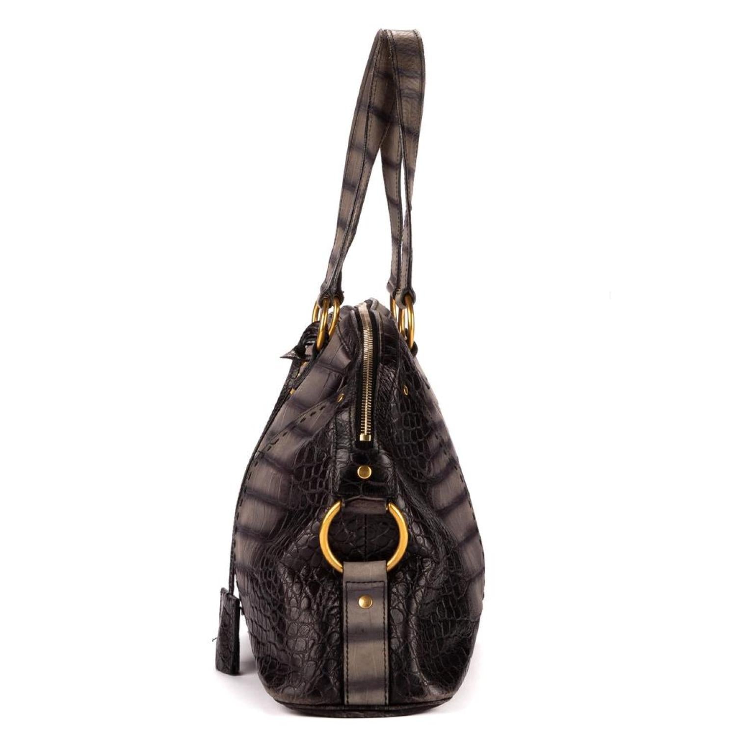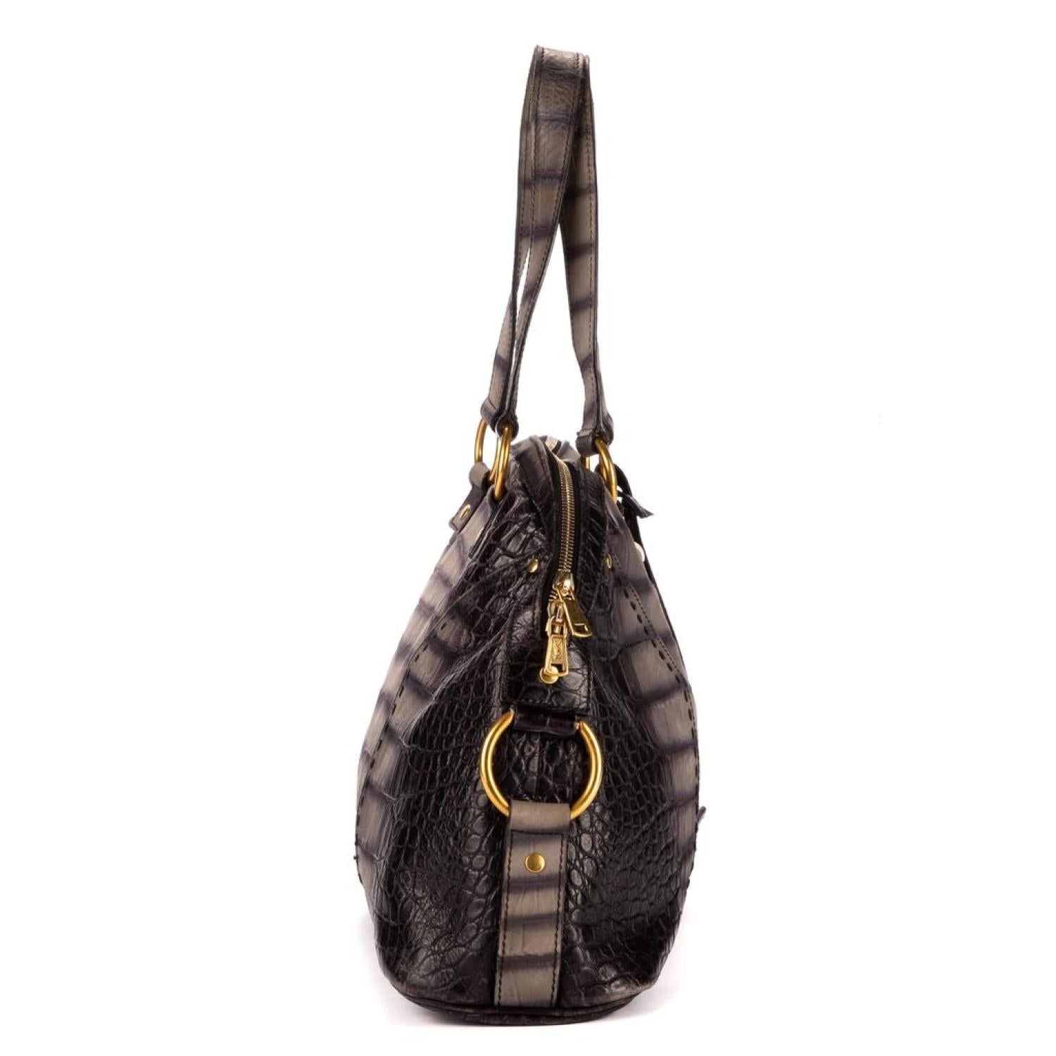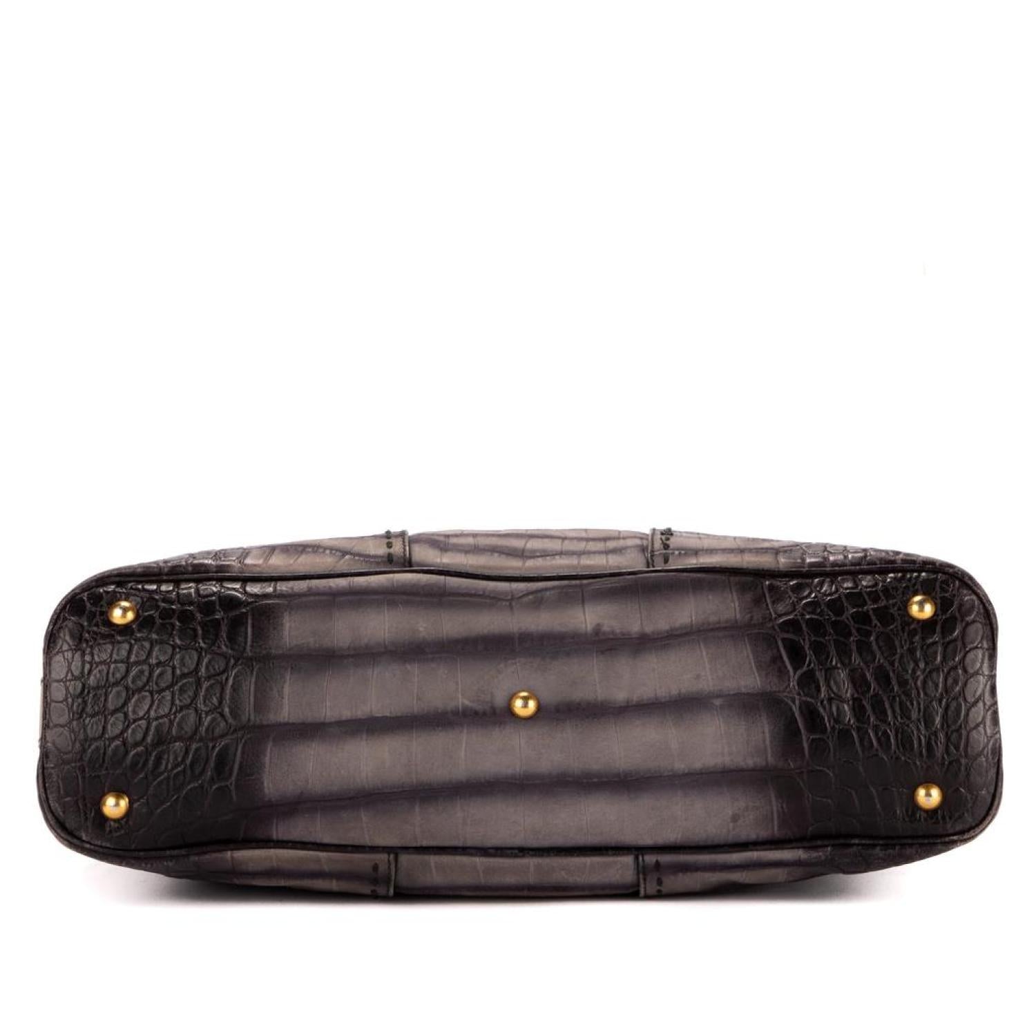 Yves Saint Laurent Shoulder bag in Grey Croco embosed calfskin and Gold hardware. Dimensions - 40*27*12cm. Serial number - 1.56E+11. Inclusions - "Cadenas, key in clochette".