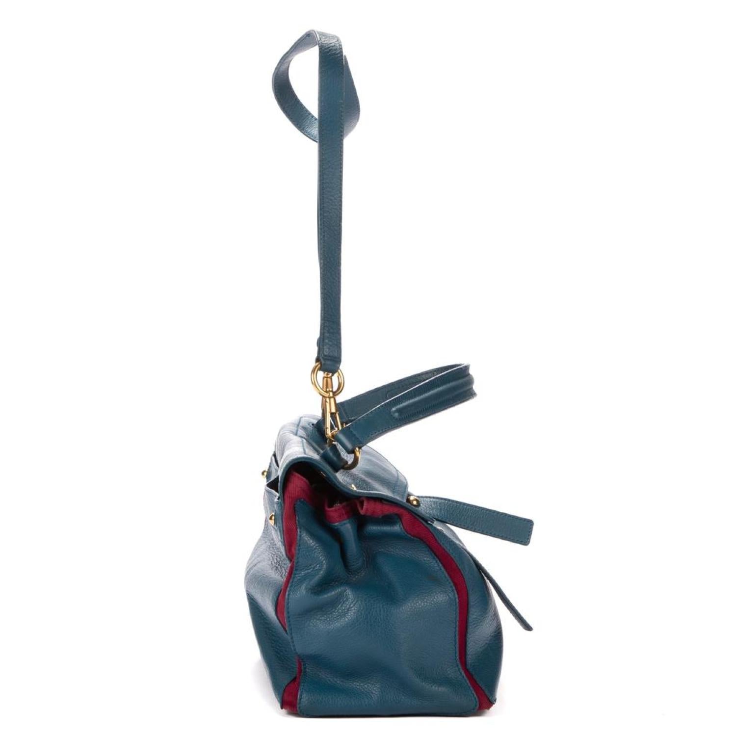 Yves Saint Laurent Handbag in Capri Blue Calfskin leather and Gold hardware. Dimensions - 32*27*15cm. Serial number - 295161.5293. Inclusions - Strap.