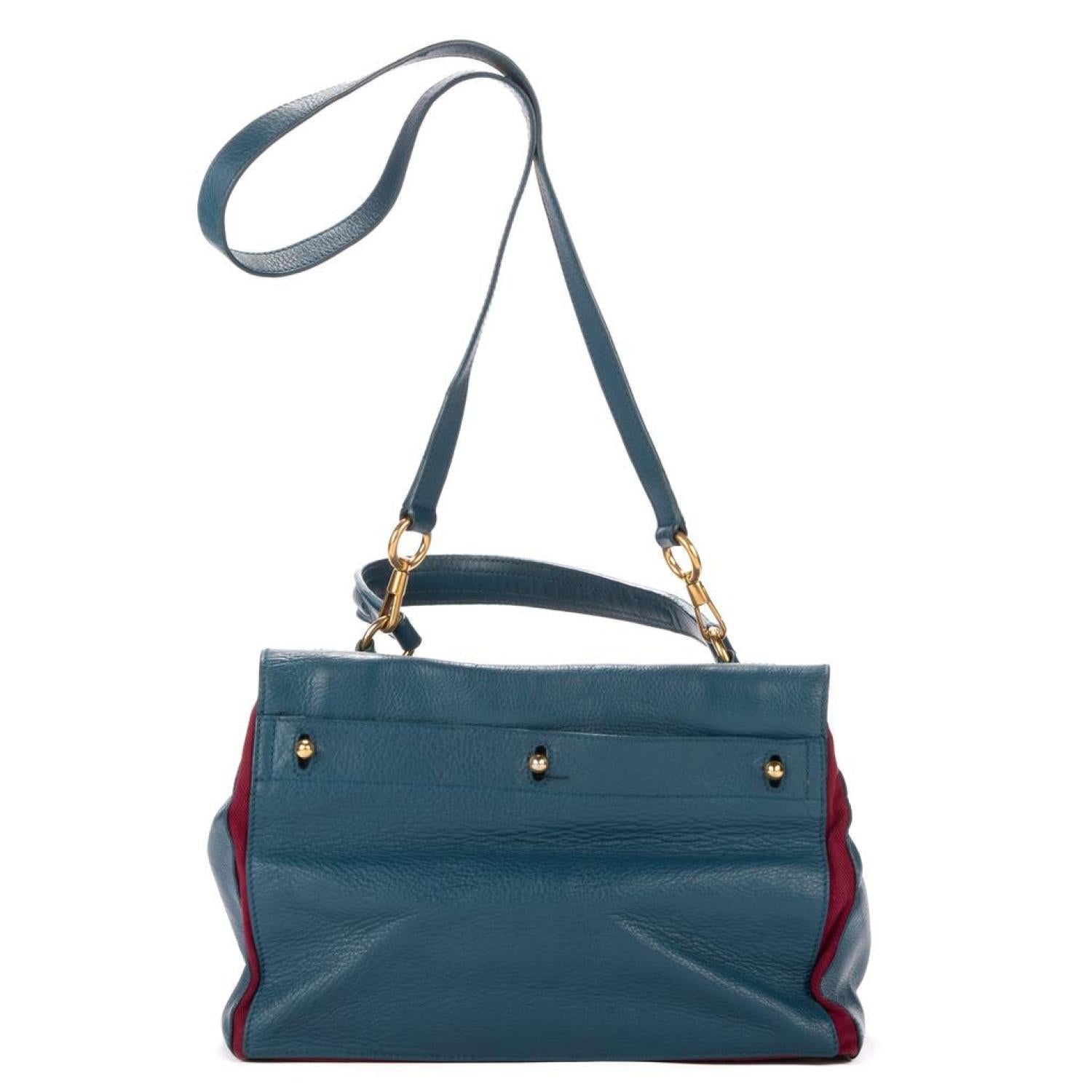 • Yves Saint Laurent Handbag in Capri Blue Calfskin leather and Gold hardware. Dimensions - 32*27*15cm. Serial number - 295161.5293. Inclusions - Strap.