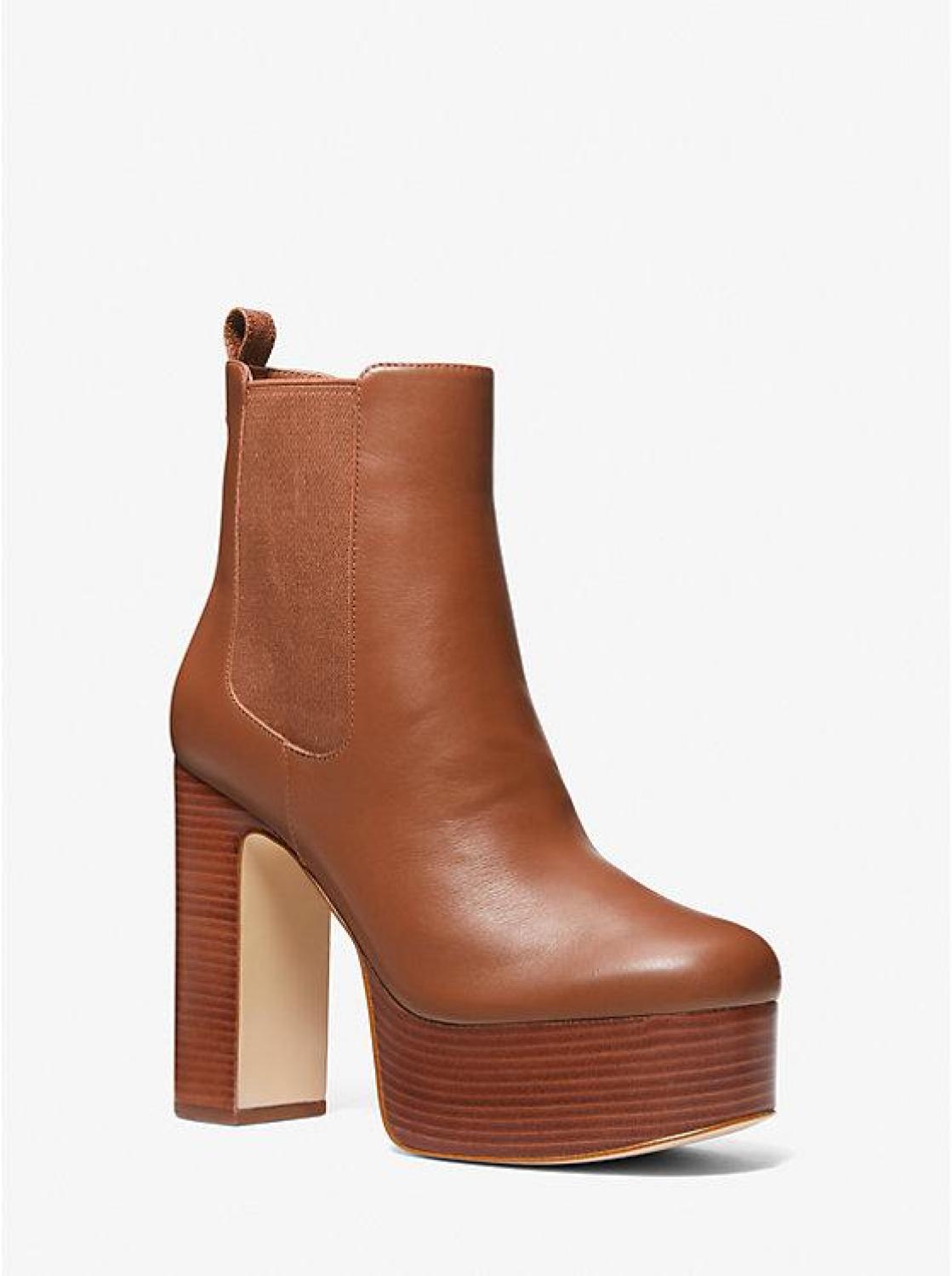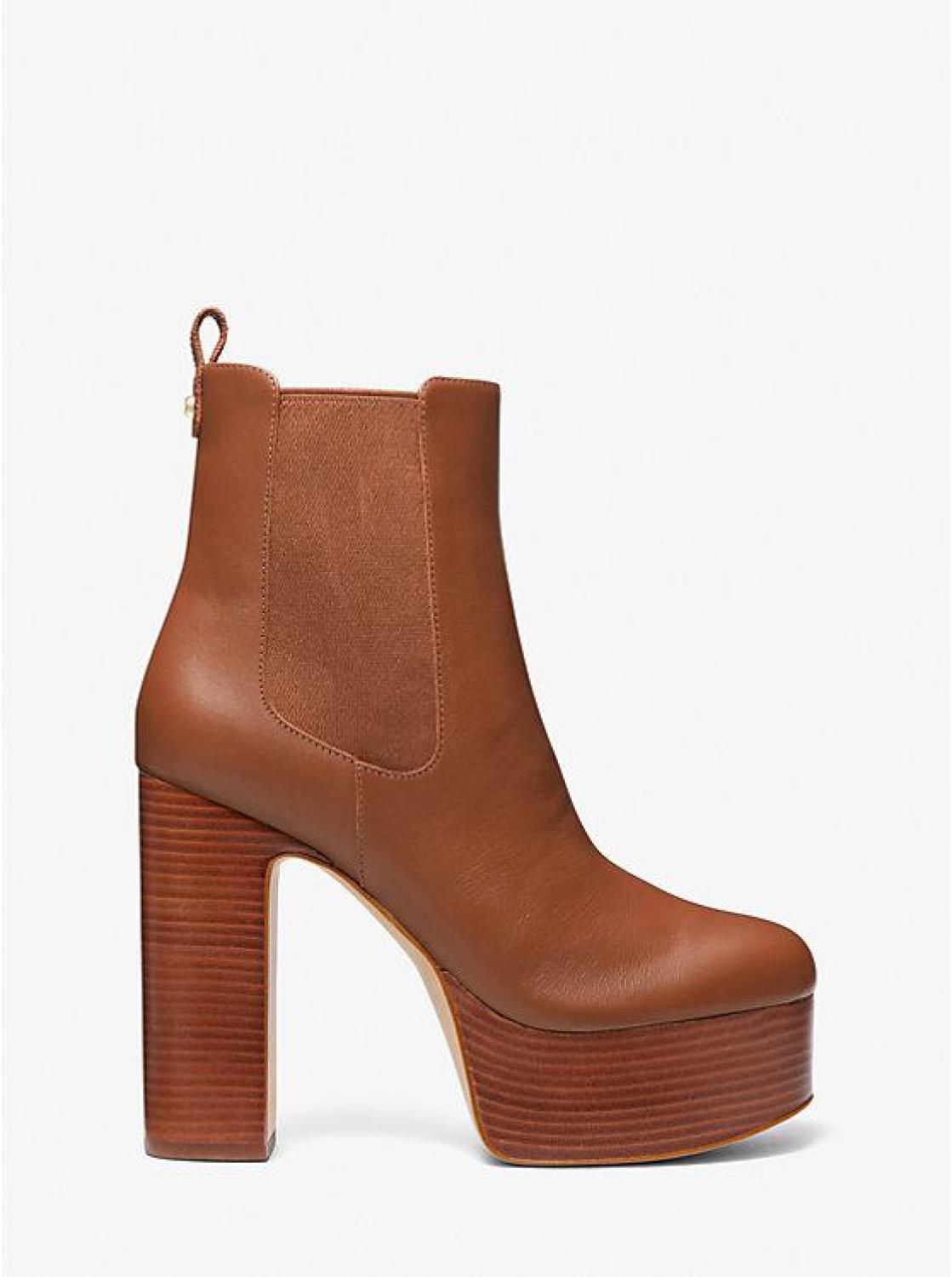 • Set on an ultra-high heel made walkable by a sensible platform, the Natasha boot beautifully combines fashion and function. Designed in rich leather with elastic insets, this pull-on style offers a sleek look. Wear them to ground the season’s billowy dresses or cropped jeans.