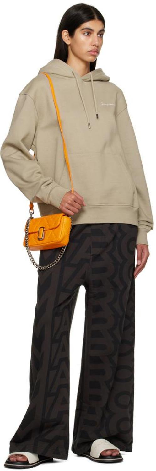 Marc Jacobs Orange Mini 'The J Marc' Bag Padded grained lambskin shoulder bag in orange. Topstitching throughout. · Detachable curb chain carry handle · Detachable and adjustable shoulder strap · Logo hardware at face · Patch pocket at back face · Foldover flap · Zip pocket and three card slots at interior · Faille lining in beige · Logo-engraved antiqued silver-tone hardware · H4.5 x W7.25 x D1.25 in Supplier color: Scorched Lambskin. Made in Philippines. 231190F048067