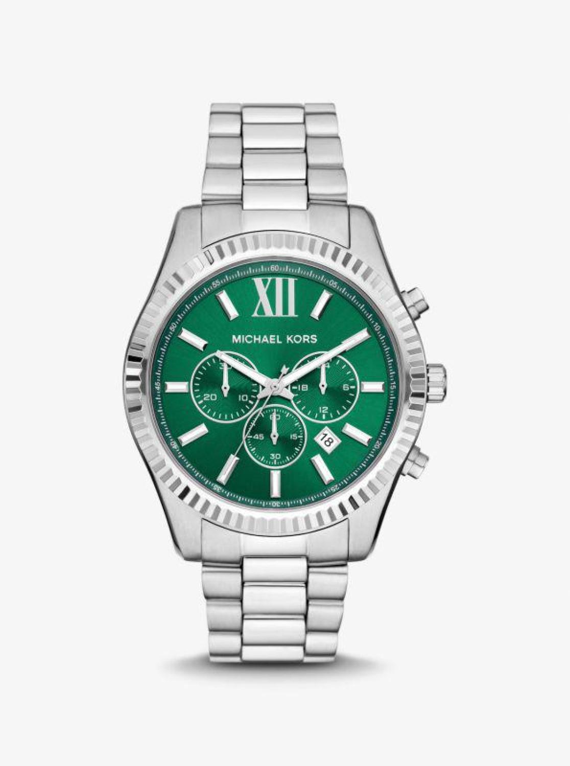 • Designed with the aspirational man in mind, our Lexington watch takes sleek and streamlined to a whole new level. The beveled silver-tone stainless steel bezel and bracelet strap provide tactile texture, while the date function and chronograph dials give it a timeless finish.