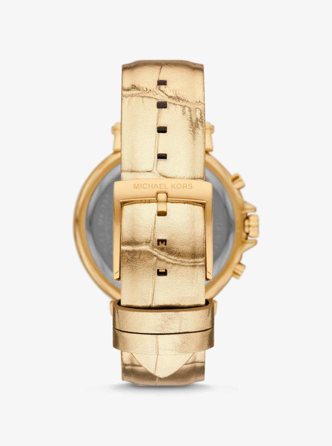 Oversized Maren Gold-Tone and Metallic Crocodile Embossed Leather Watch