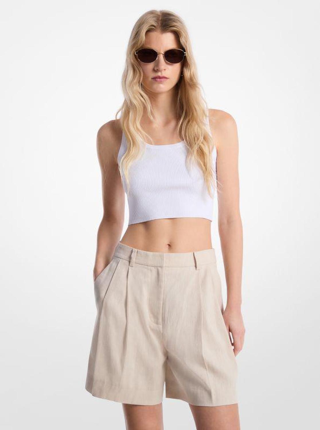 Pleated Linen and Cotton Shorts