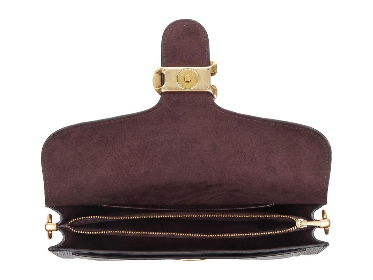 A modern take on an archival 1970s Coach design, the structured Tabby shoulder bag is crafted in polished pebble leather. Finished with the Signature hardware for an iconic touch, the compact 26 features two detachable straps to carry by hand, style as a short shoulder bag or wear crossbody.