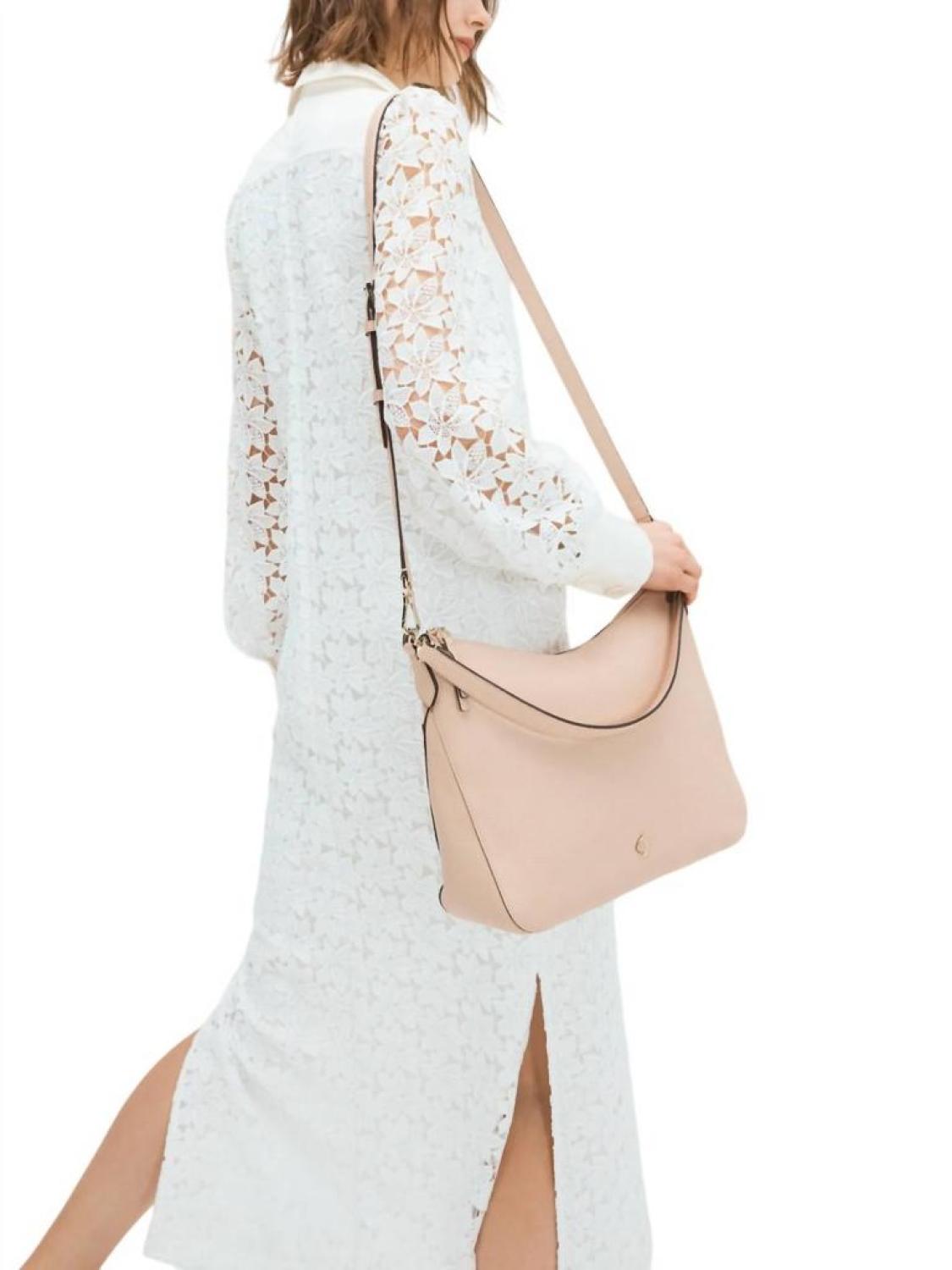 • Spade floral jacquard lining. Enamel spade. Shoulder bag with zipper closure. Interior slide pocket. Interior zipper pocket. Optional (and adjustable) shoulder strap. Dimension - 10"H X 12"W X 4"D