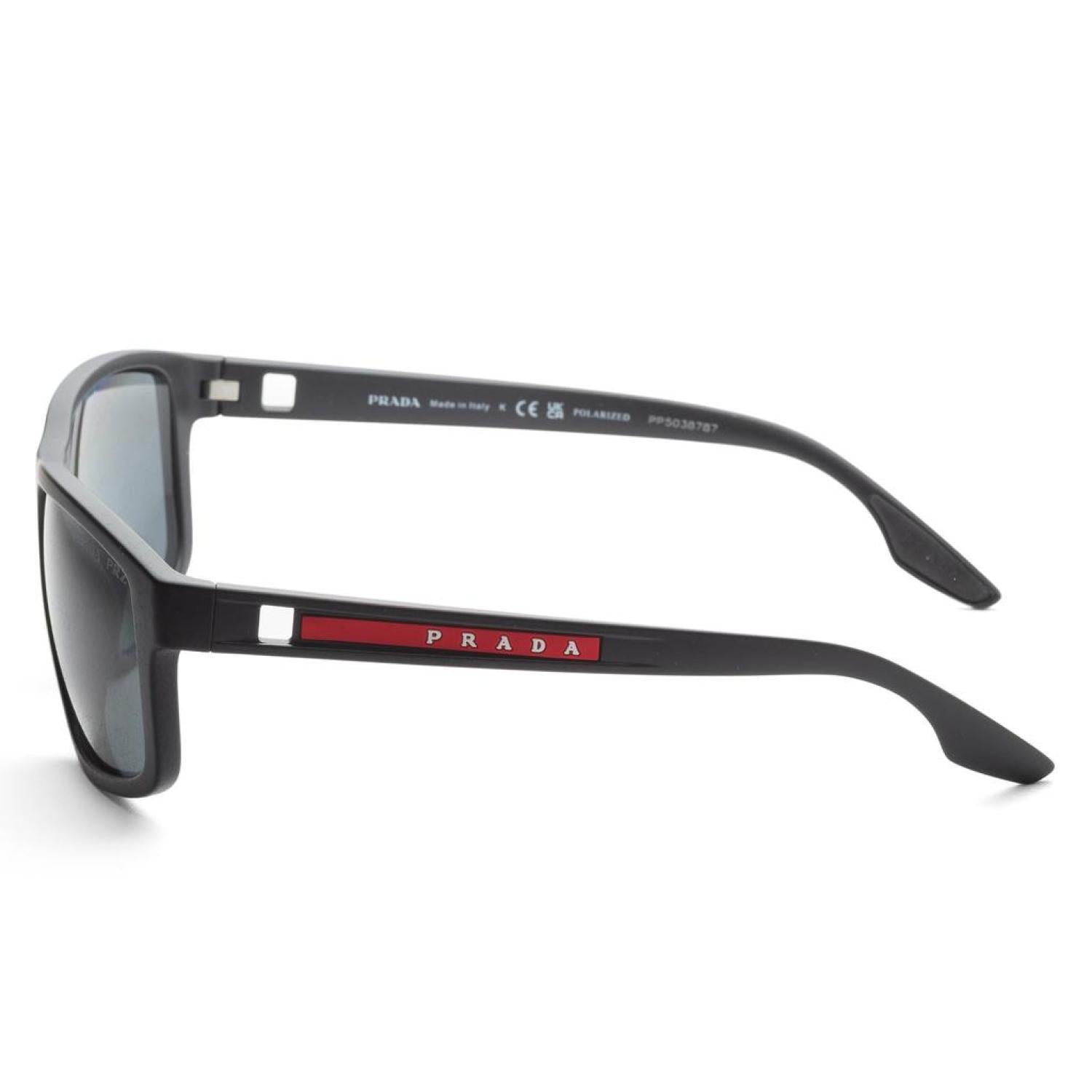 Dimensions - 60 mm x 15 mm x 145 mm. The frame is Plastic and Rectangular shape. The lenses are Polar Dark Grey and the frame is Black Rubber (PS-02XS-DG002G)