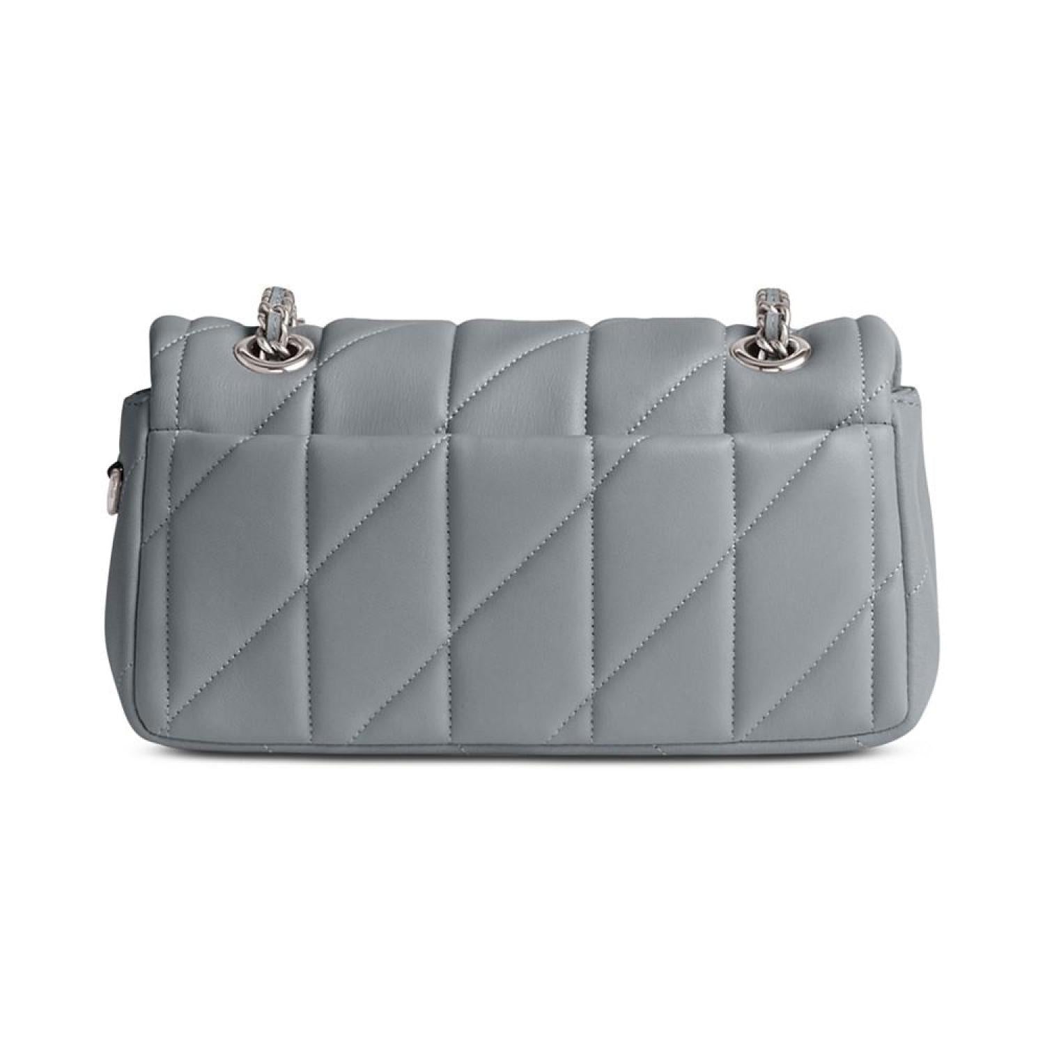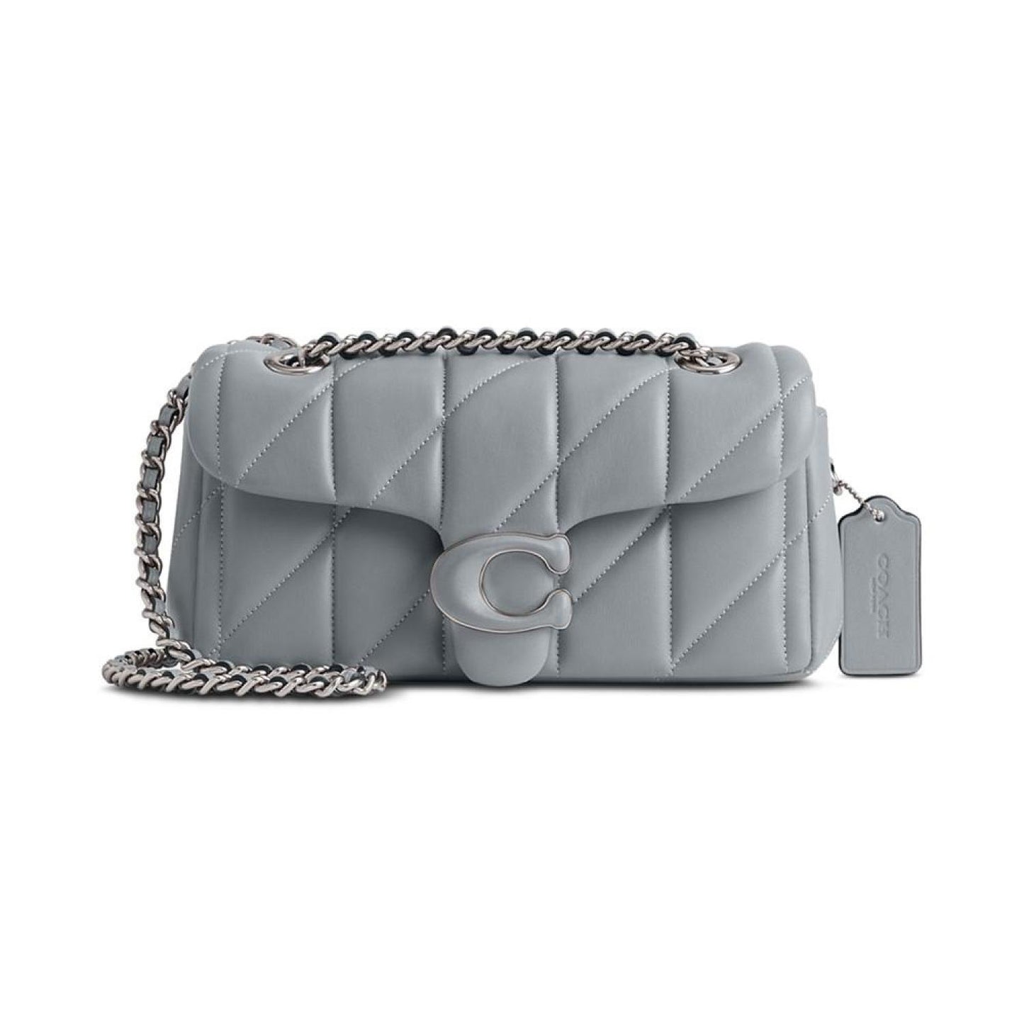 Smooth quilted leather is punctuated with a classic logo closure, iconic of COACH style. The chain strap adds an edge to this gorgeous bag that is a welcome addition to any wardrobe. Mini sized bag; 7-3/4"W x 4-1/4"H x 2-3/4"D (width is measured across the bottom of handbag) Silhouette is based off 5'9" model 21-1/2"L crossbody strap Push-lock closure Silver-tone hardware, luggage tag & exterior back slip pocket Interior snap pocket This item purchased online must be returned to the vendor by mail only. This item cannot be returned to Macy's stores. Leather Spot clean Imported