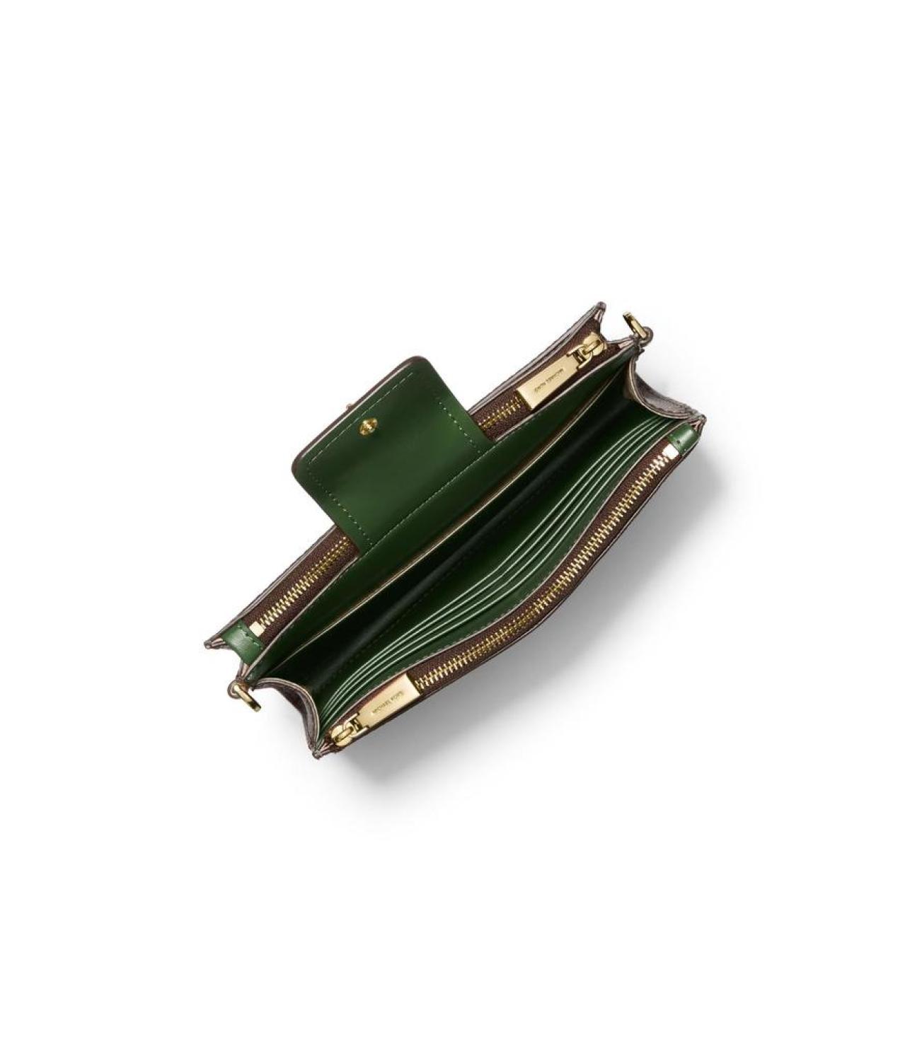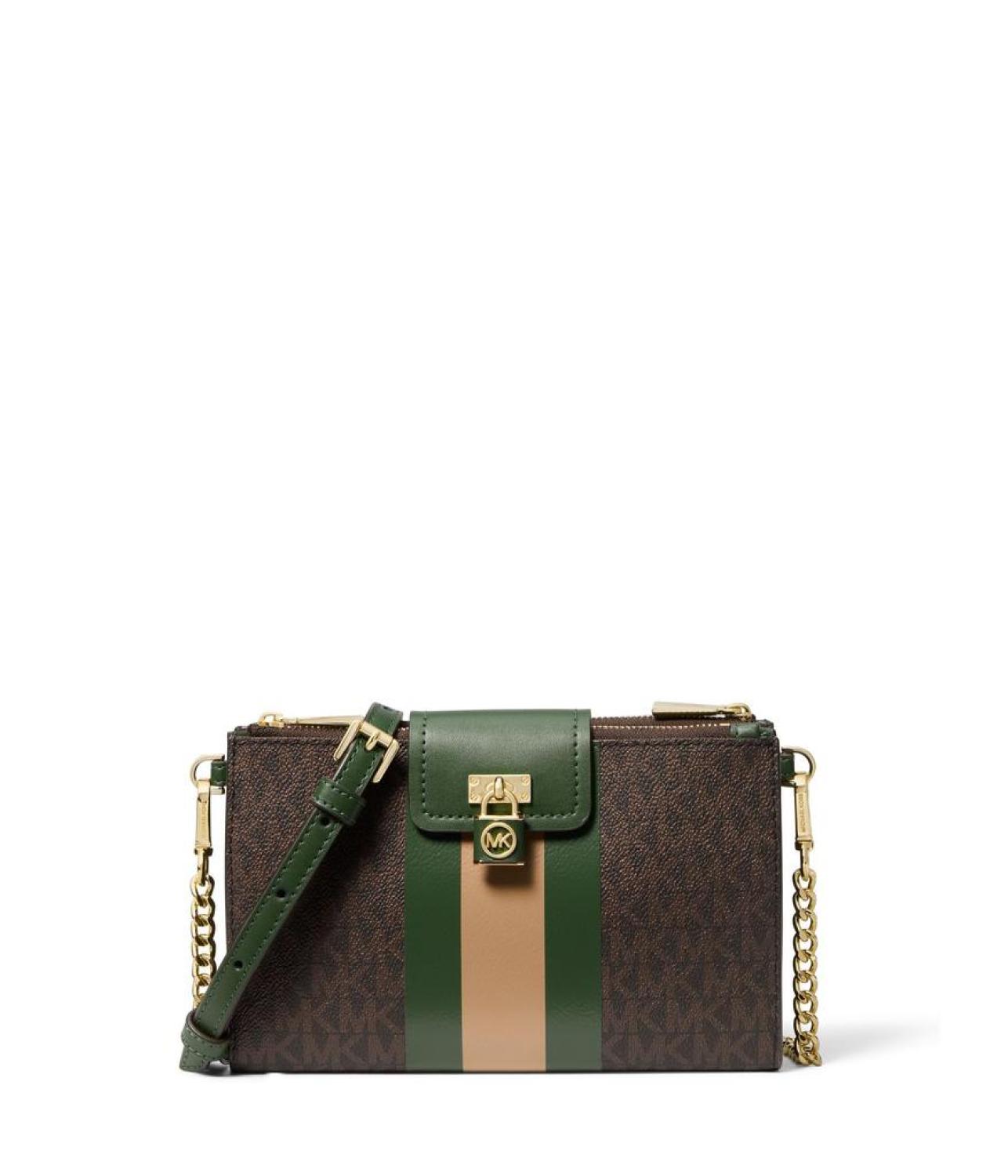 • Bring an iconic touch to your look while carrying your belongings in a safe and organized manner in the MICHAEL Michael Kors® Ruby Small Double Zip Crossbody Bag.