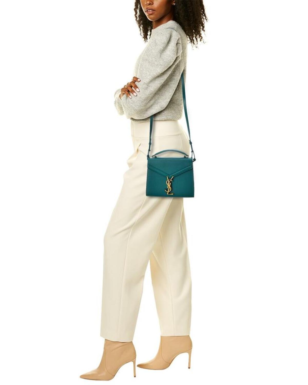 • Introducing the Saint Laurent Cassandra Mini Leather Shoulder Bag, a stunning addition to your collection. Crafted with meticulous attention to detail, this handbag embodies the iconic, modern glamour associated with the brand.Made in Italy, this mini Cassandra shoulder bag showcases a vibrant green leather exterior, exuding luxury and sophistication. The gold-tone hardware further elevates its elegance, making it a true fashion statement.The interior of the bag features a supple leather lining, ensuring durability and a touch of luxury. Multiple pockets are incorporated, providing convenient storage for your essentials. Stay organized and effortlessly stylish with this thoughtfully designed interior.Measuring at 7.8 inches wide, 6 inches high, and 4 inches deep, this mini shoulder bag offers a compact size while still accommodating your daily essentials. The top handle has a drop of 3 inches, allowing for easy handheld carrying. Alternatively, the adjustable shoulder strap with a drop of 23 inches offers versatility and ensures a comfortable fit.The fold-over flap adds a touch of sophistication, while the turnlock closure provides secure fastening. Please note that all measurements were taken by hand, and slight variations may occur, adding a unique touch to each bag.Rest assured, this product is 100% genuine. While we sometimes acquire merchandise from trusted independent suppliers, we guarantee the authenticity of every product sold on our site. Elevate your style with the Saint Laurent Cassandra Mini Leather Shoulder Bag. Shop now and embrace the luxurious and chic world of Saint Laurent.