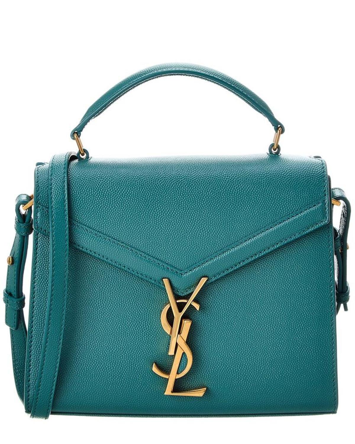 Introducing the Saint Laurent Cassandra Mini Leather Shoulder Bag, a stunning addition to your collection. Crafted with meticulous attention to detail, this handbag embodies the iconic, modern glamour associated with the brand.Made in Italy, this mini Cassandra shoulder bag showcases a vibrant green leather exterior, exuding luxury and sophistication. The gold-tone hardware further elevates its elegance, making it a true fashion statement.The interior of the bag features a supple leather lining, ensuring durability and a touch of luxury. Multiple pockets are incorporated, providing convenient storage for your essentials. Stay organized and effortlessly stylish with this thoughtfully designed interior.Measuring at 7.8 inches wide, 6 inches high, and 4 inches deep, this mini shoulder bag offers a compact size while still accommodating your daily essentials. The top handle has a drop of 3 inches, allowing for easy handheld carrying. Alternatively, the adjustable shoulder strap with a drop of 23 inches offers versatility and ensures a comfortable fit.The fold-over flap adds a touch of sophistication, while the turnlock closure provides secure fastening. Please note that all measurements were taken by hand, and slight variations may occur, adding a unique touch to each bag.Rest assured, this product is 100% genuine. While we sometimes acquire merchandise from trusted independent suppliers, we guarantee the authenticity of every product sold on our site. Elevate your style with the Saint Laurent Cassandra Mini Leather Shoulder Bag. Shop now and embrace the luxurious and chic world of Saint Laurent.